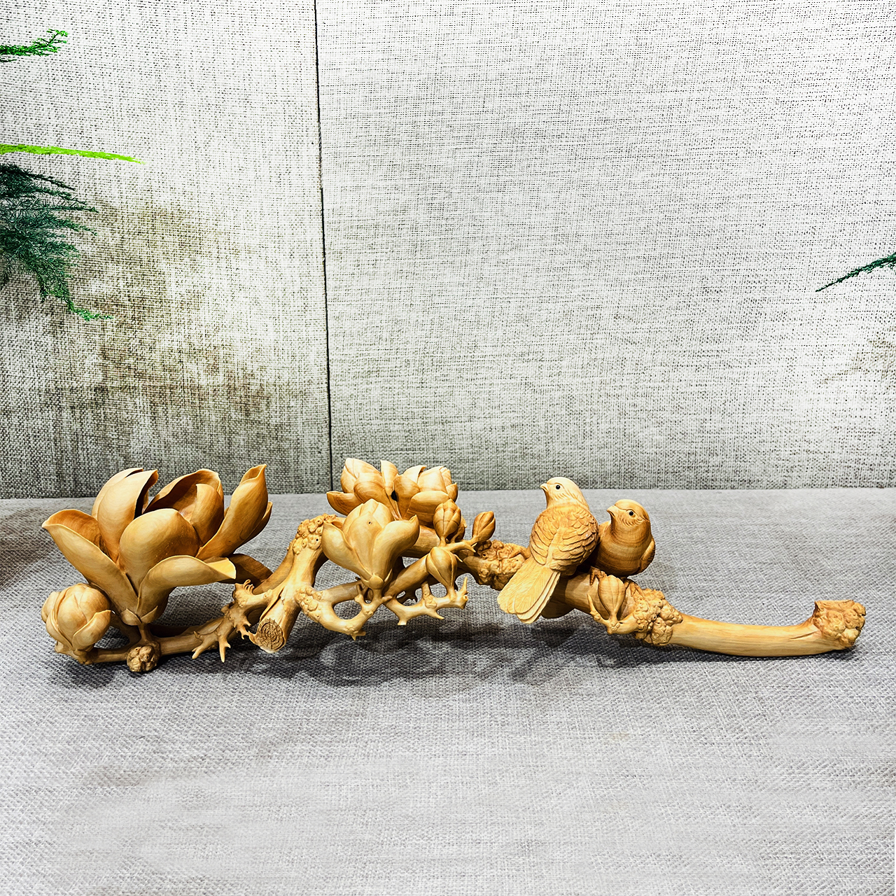 玉兰双鹊°木雕摆件
