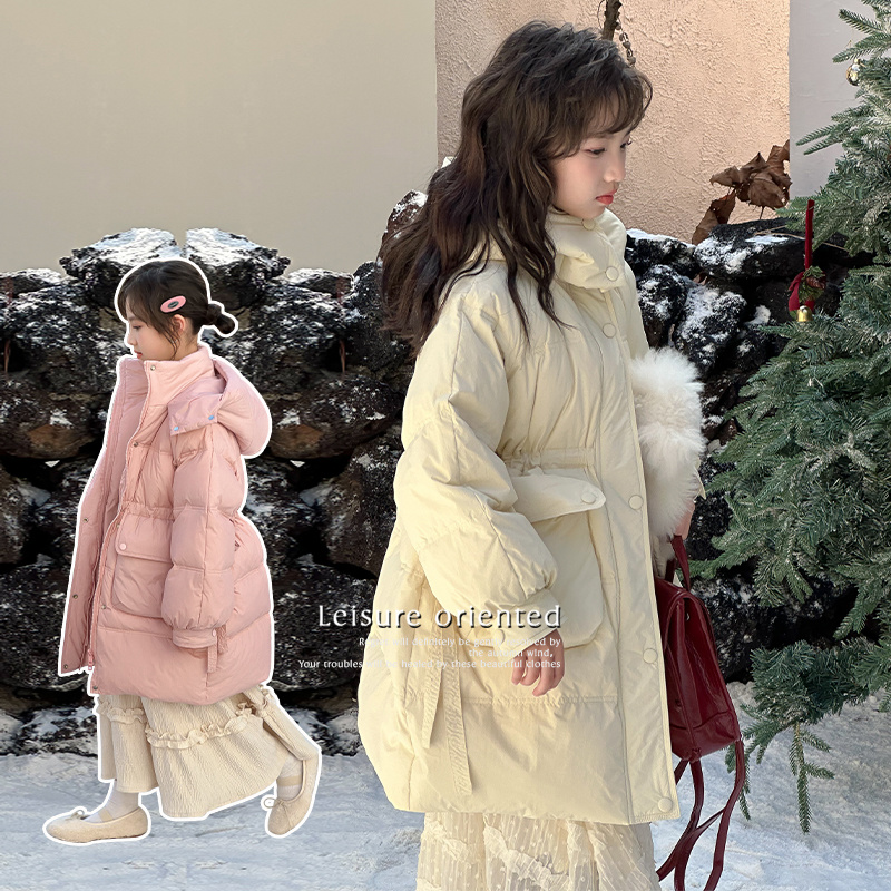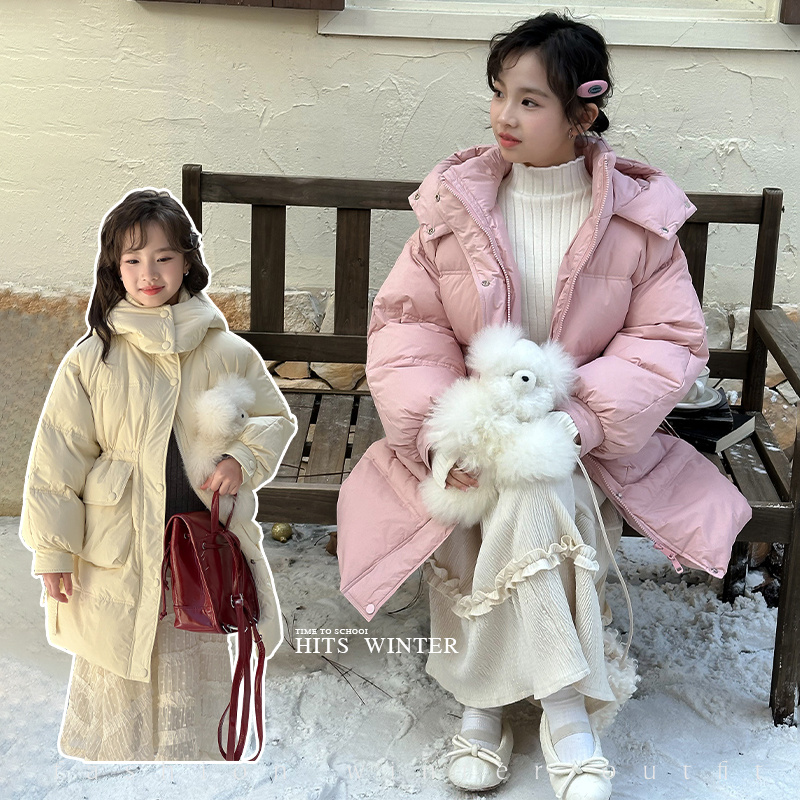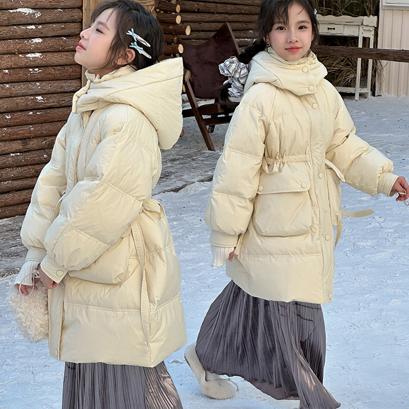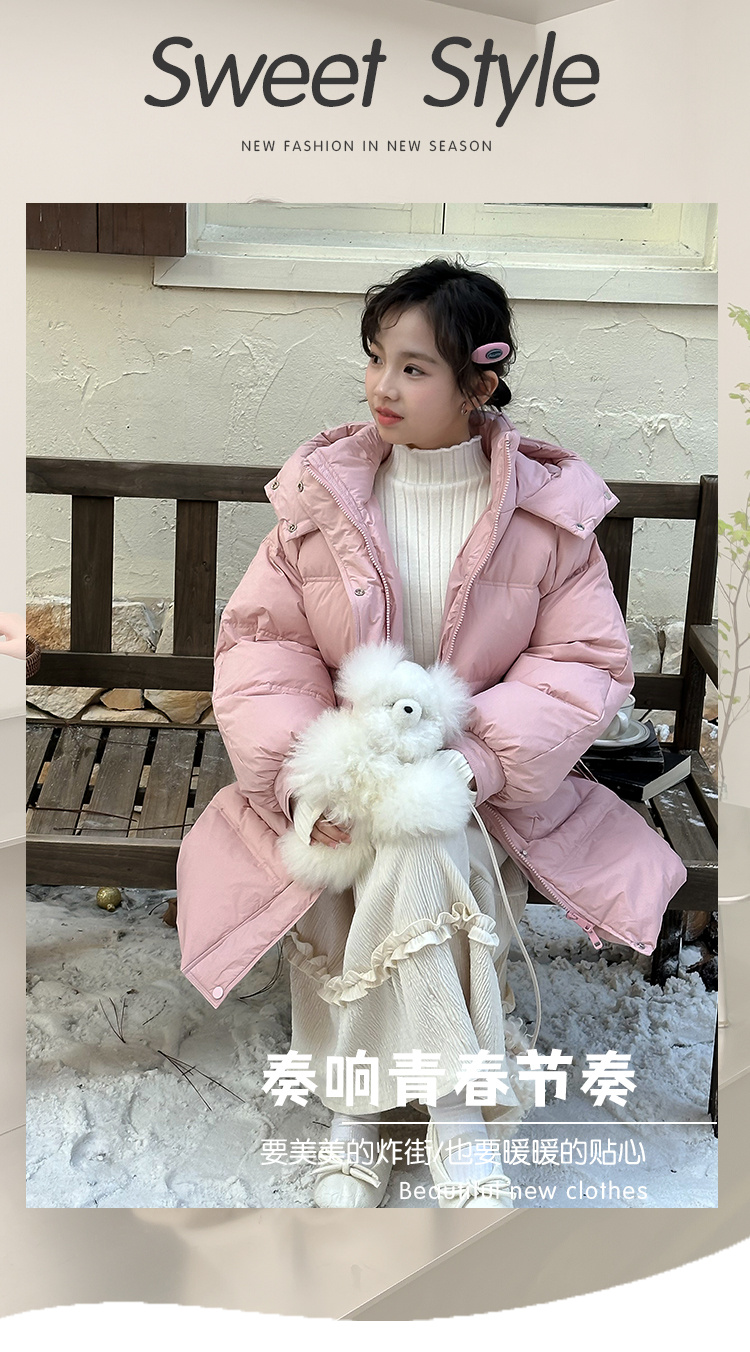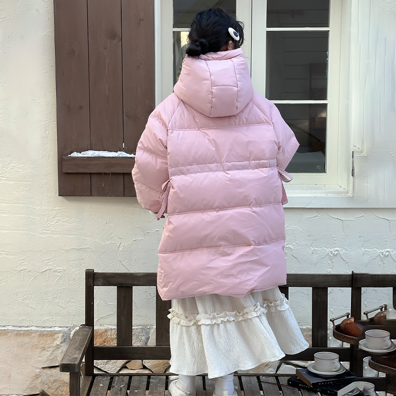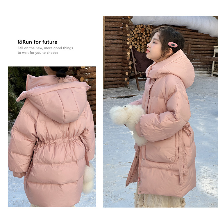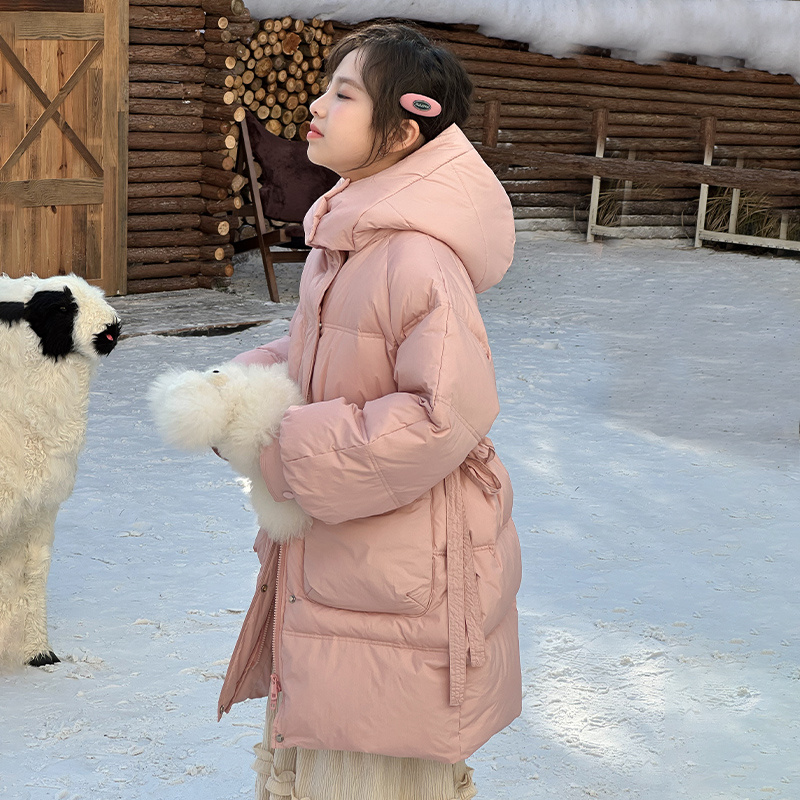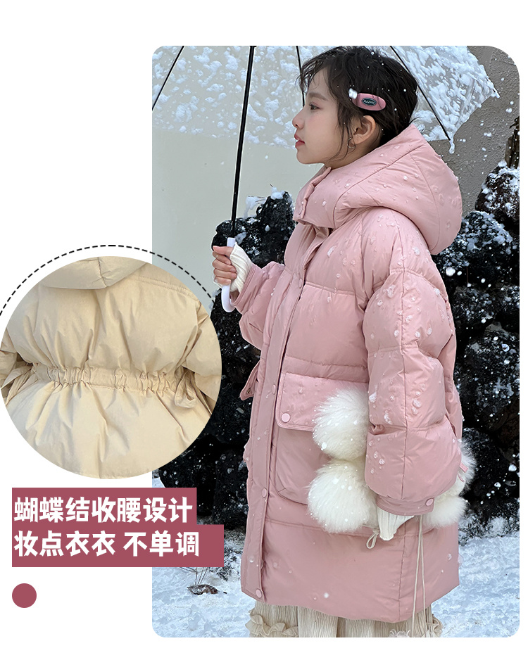 💰169元包邮, 【喜慕7185 】 断码特价, 万年经典款,儿童连帽蝴蝶结抽绳羽绒服 中长款羽绒服