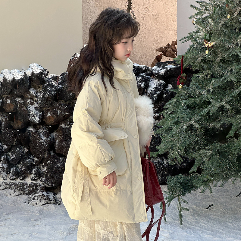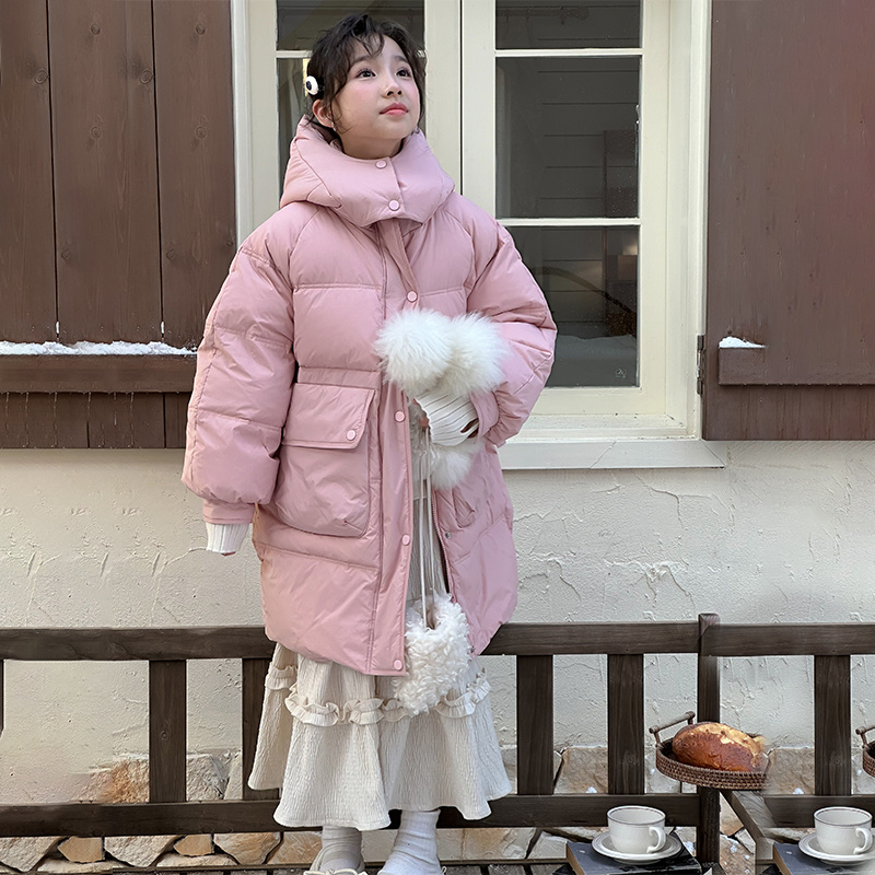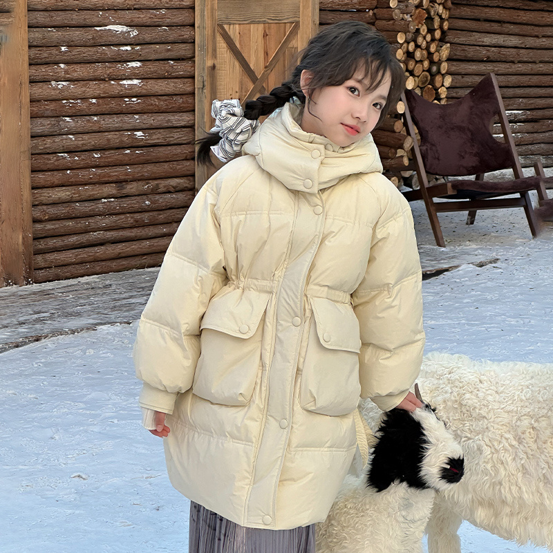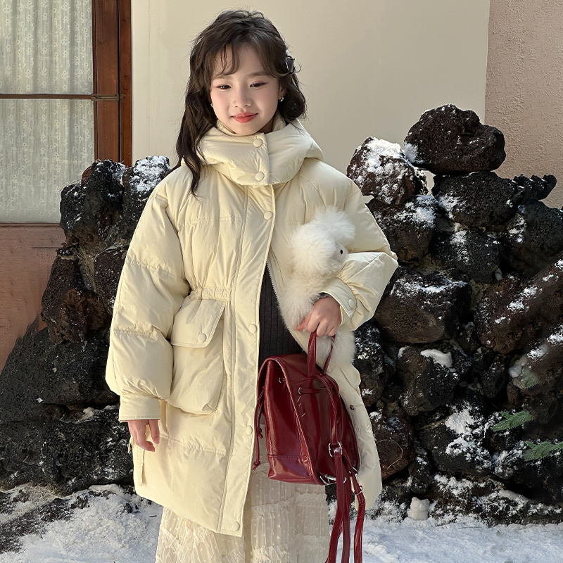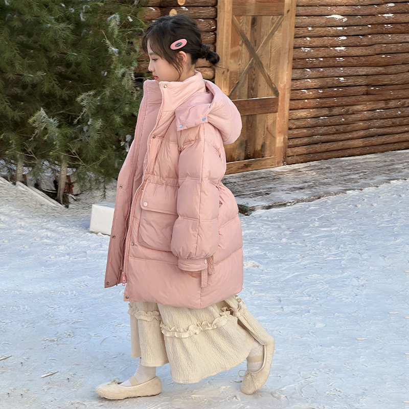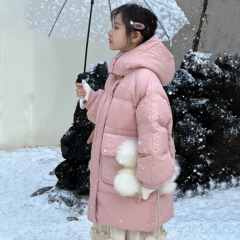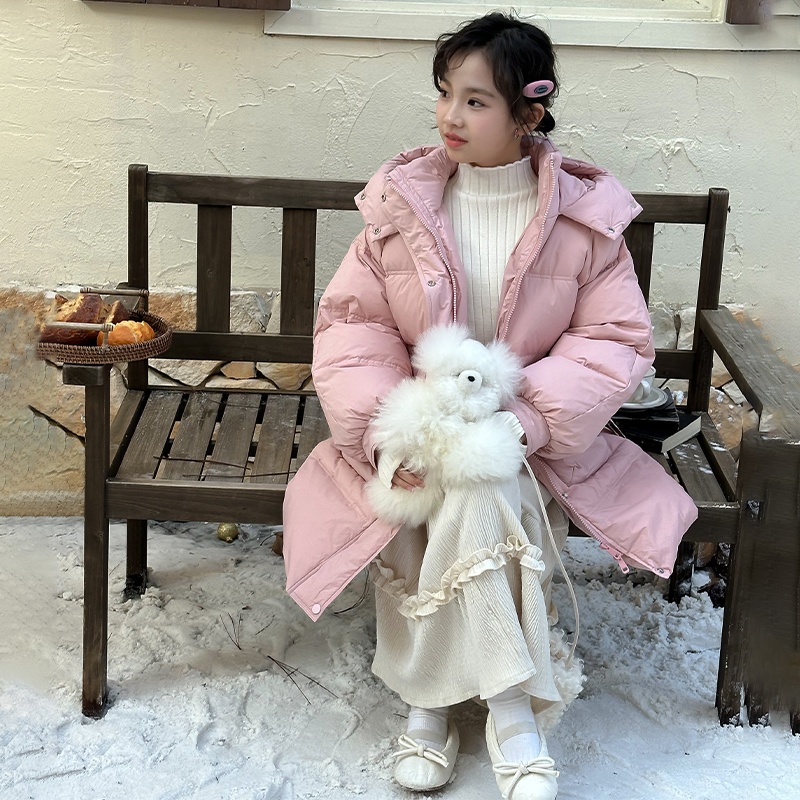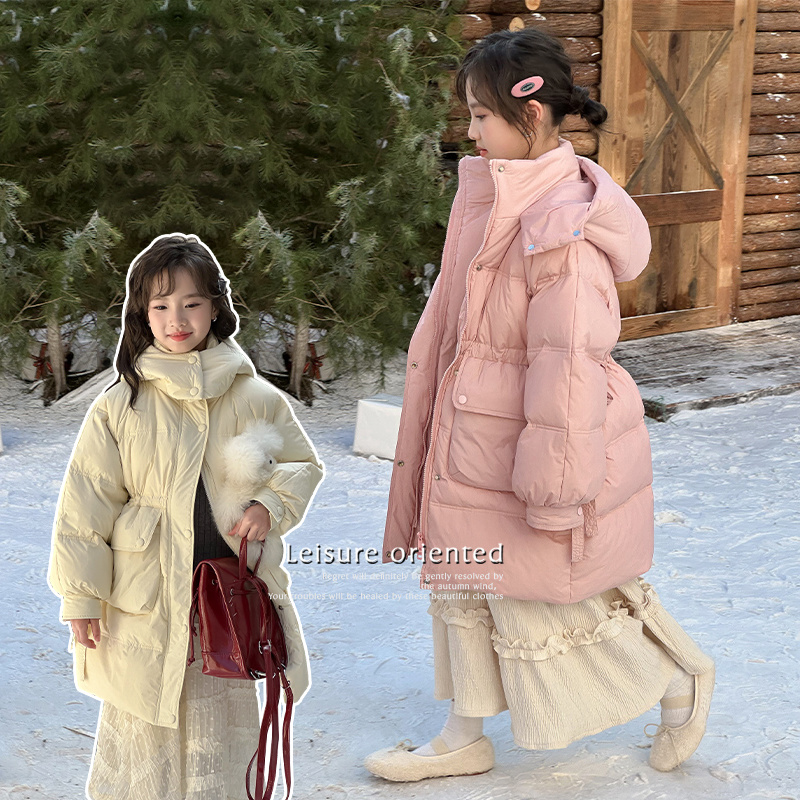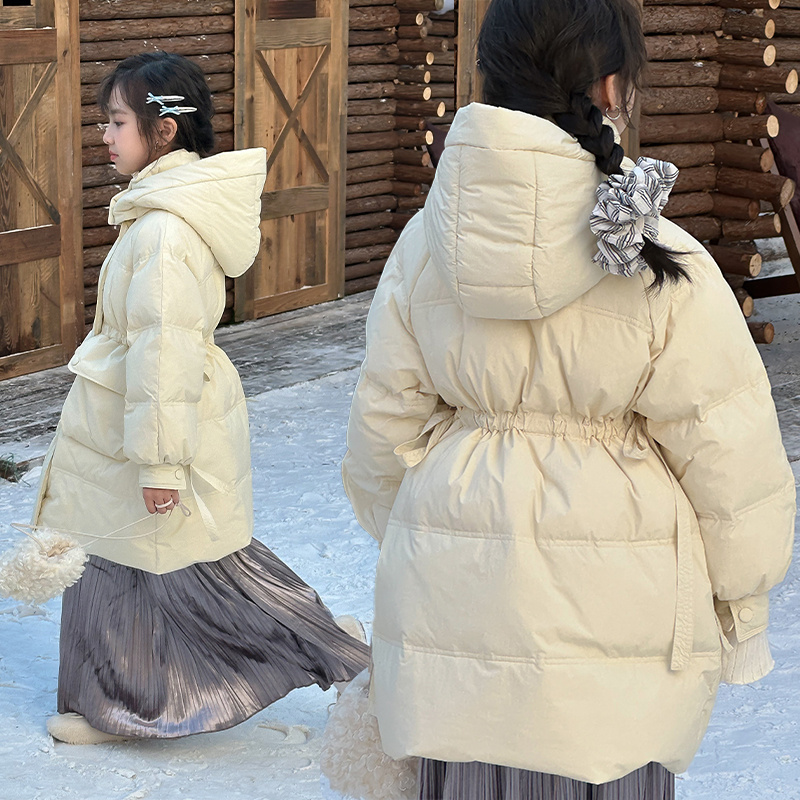 💰169元包邮, 【喜慕7185 】 断码特价, 万年经典款,儿童连帽蝴蝶结抽绳羽绒服 中长款羽绒服