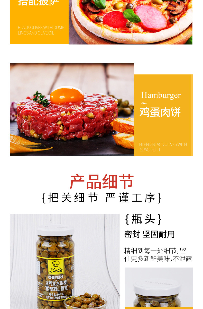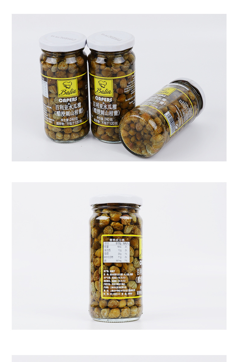 【中欧班列精选】西班牙百利亚无枝水瓜榴 原装进口醋浸刺山柑蕾西餐用酸豆角水瓜柳 240g/瓶