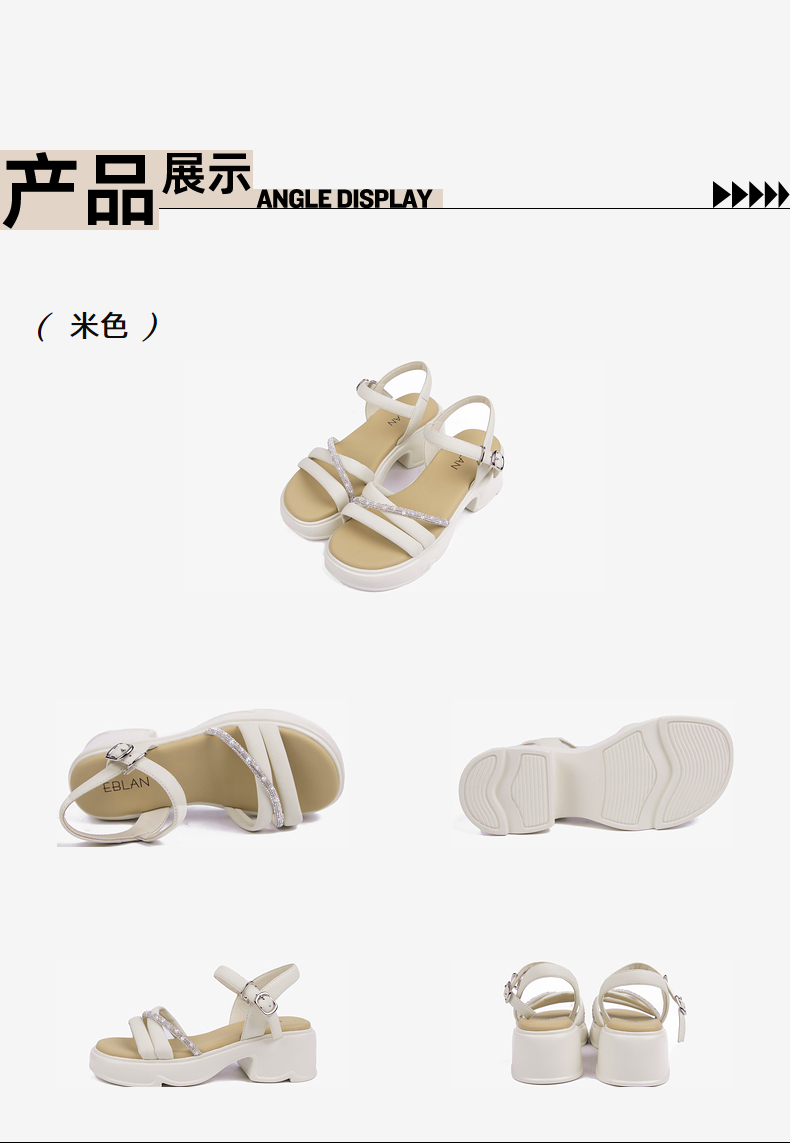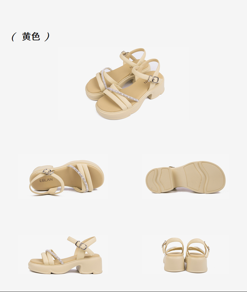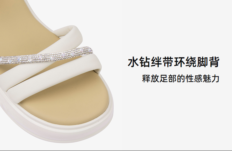 伊伴夏季网面烫钻透气网面低跟穆勒拖凉鞋B25236315