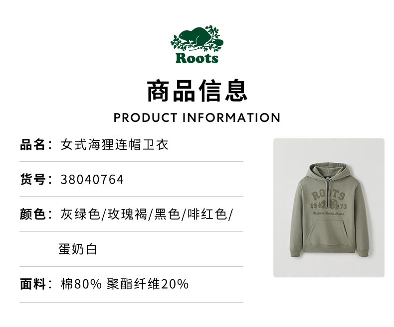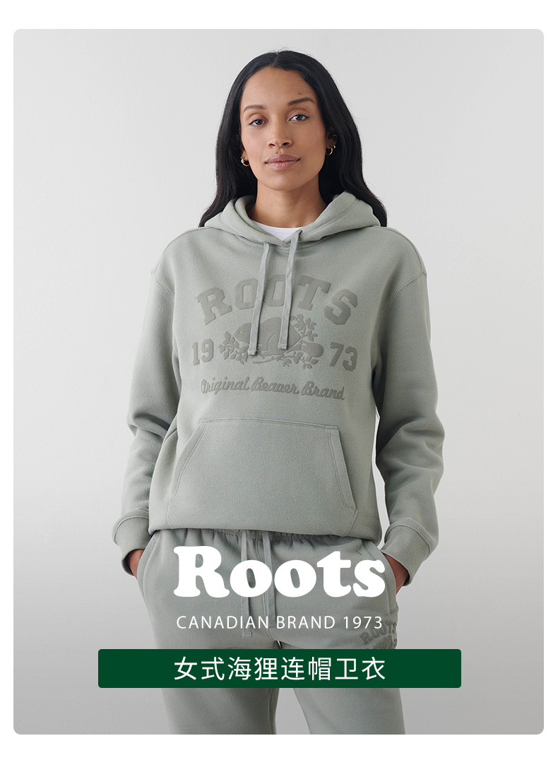 【2件9折】【ROOTS】美式经典女士秋冬款连帽保暖加绒卫衣