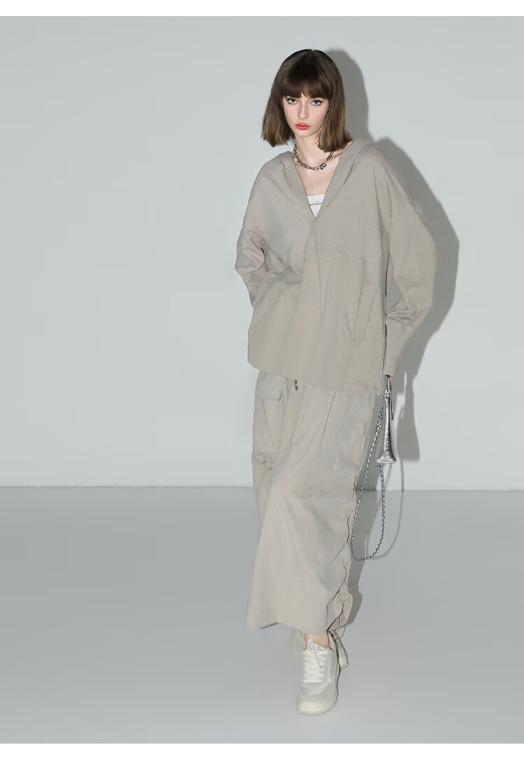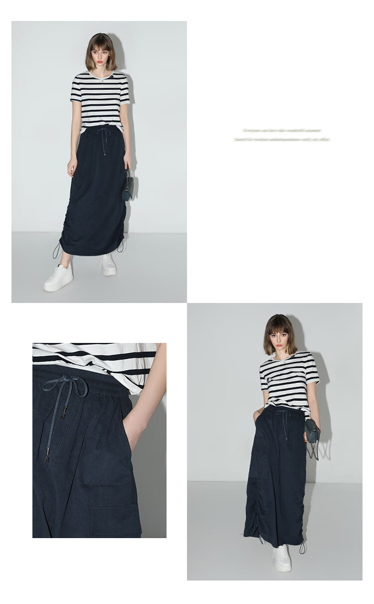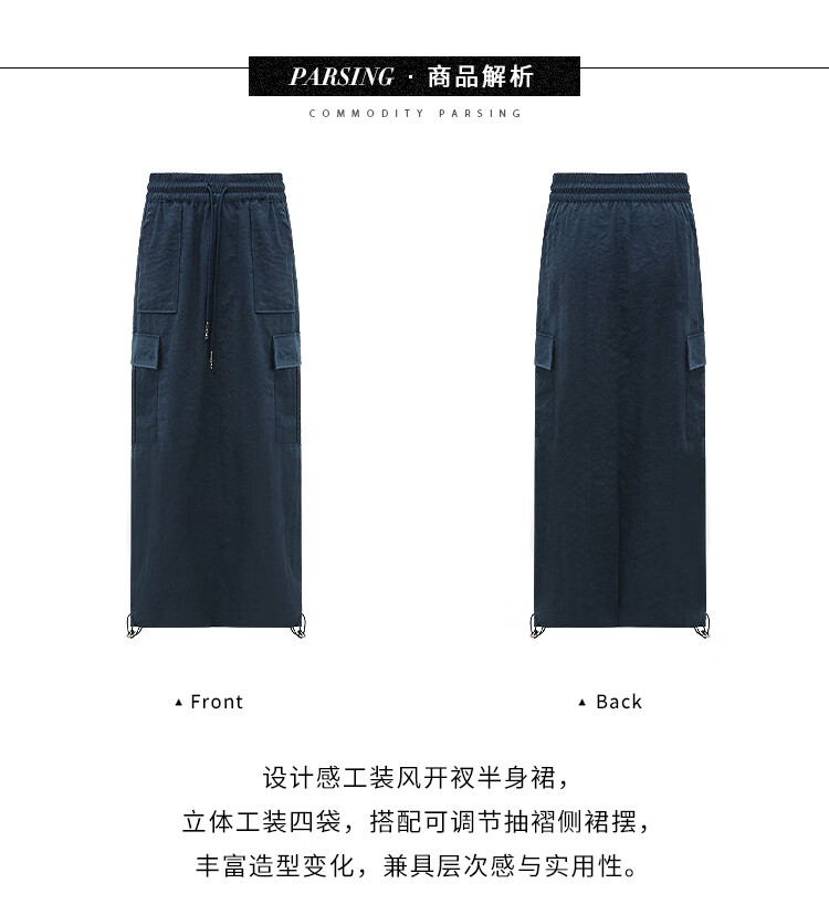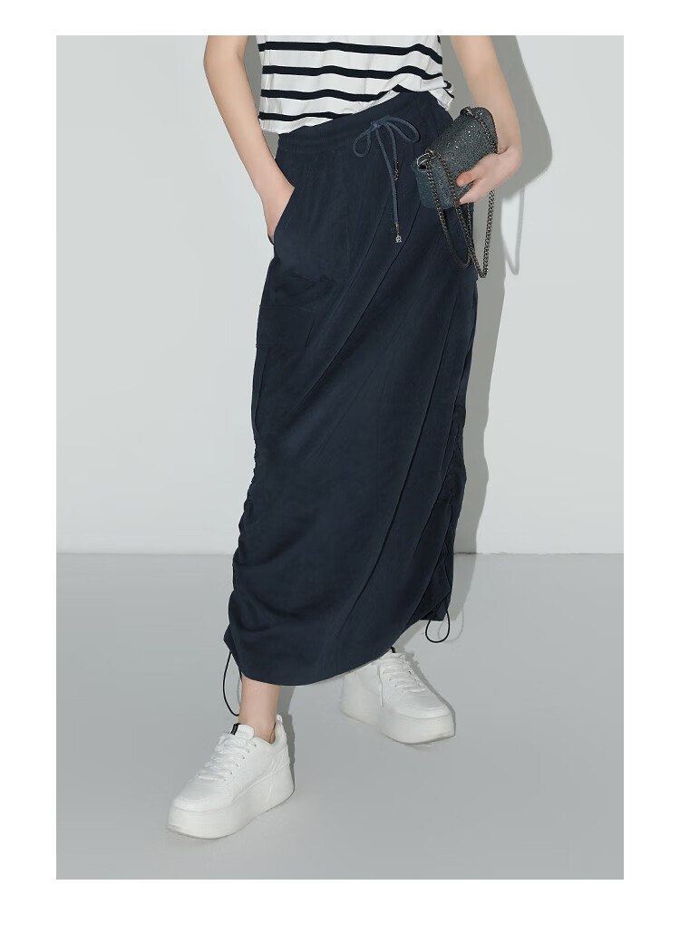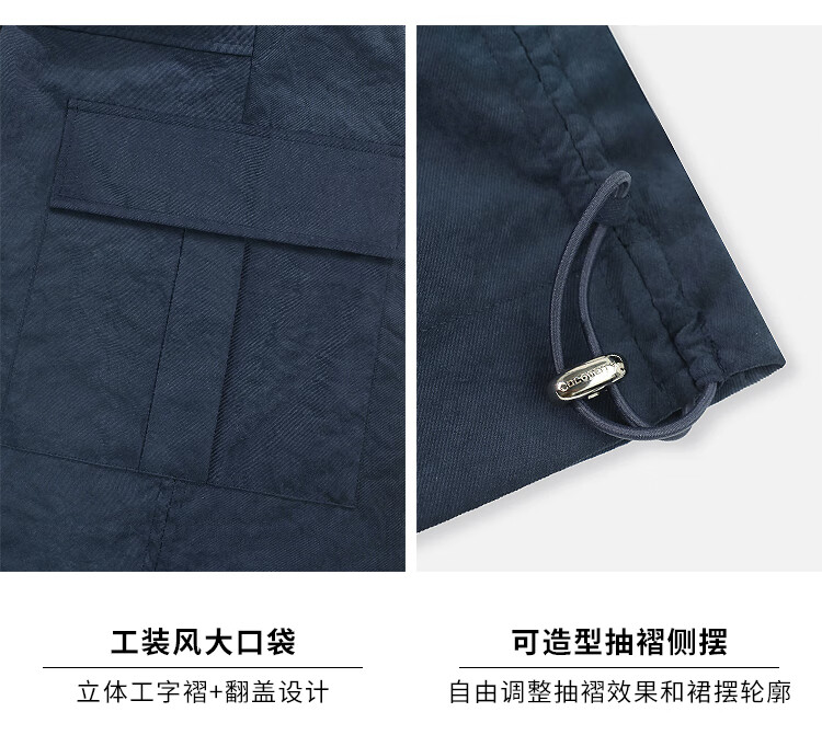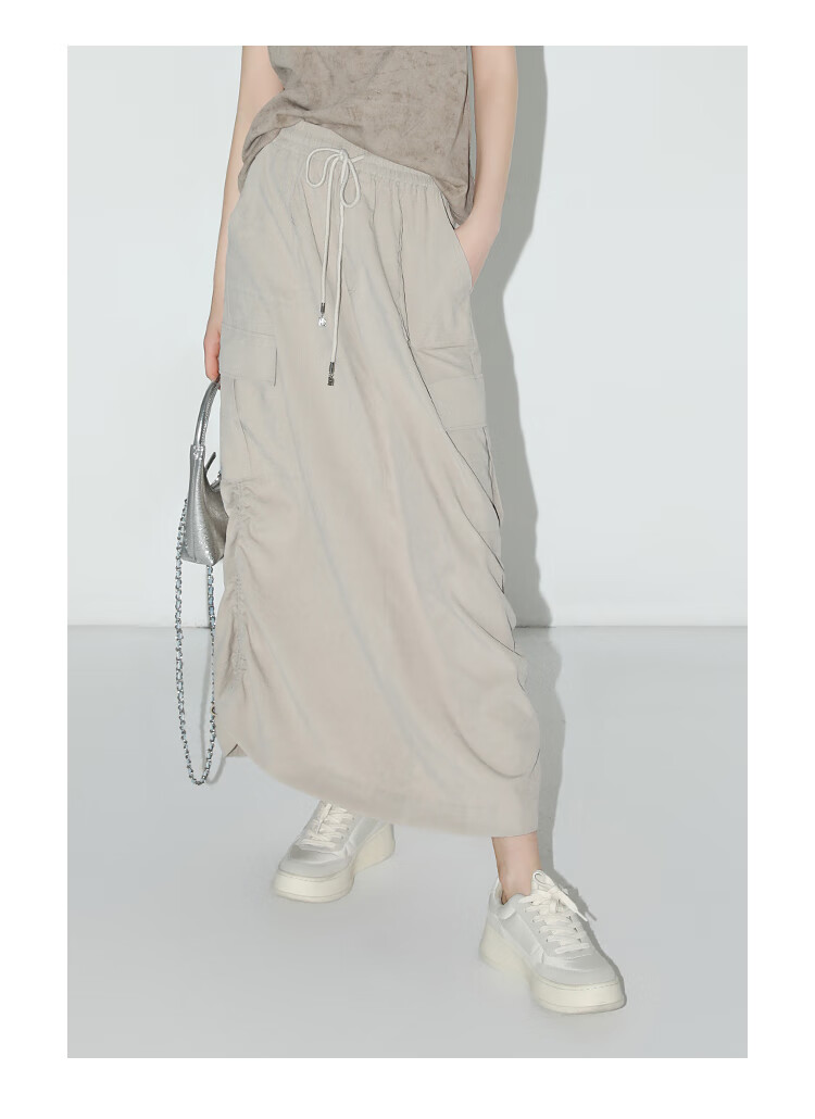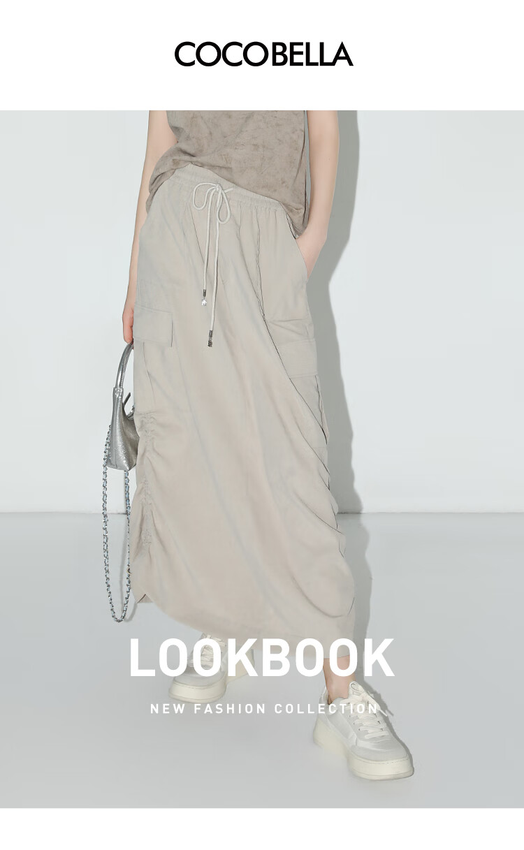 【专属秒杀】COCOBELLA设计感抽绳大口袋工装凤长裙宽松明线半身裙HS3066