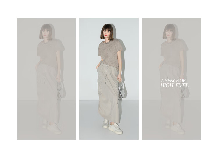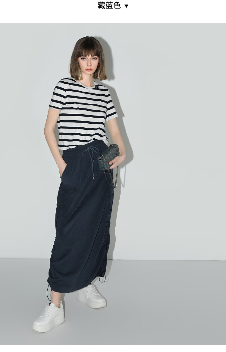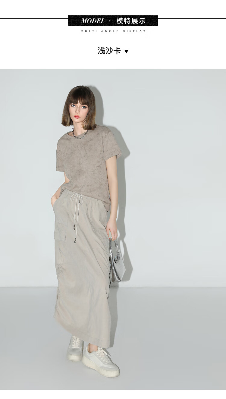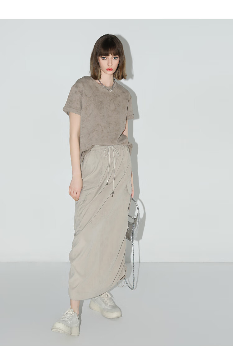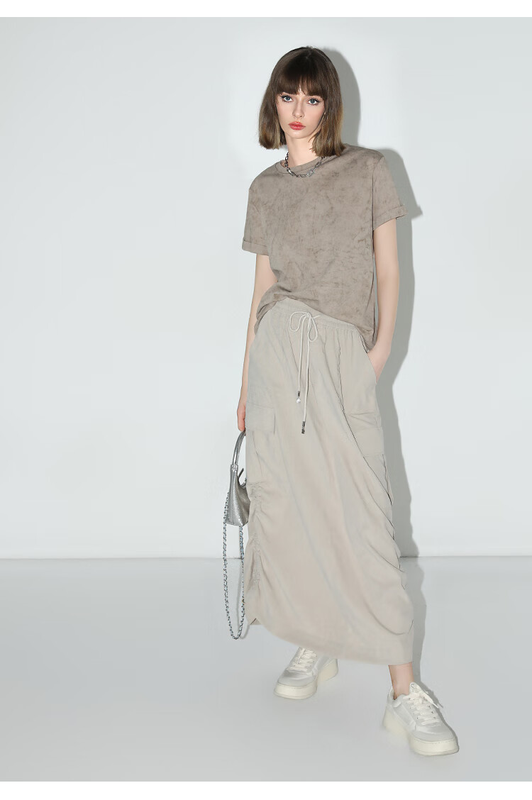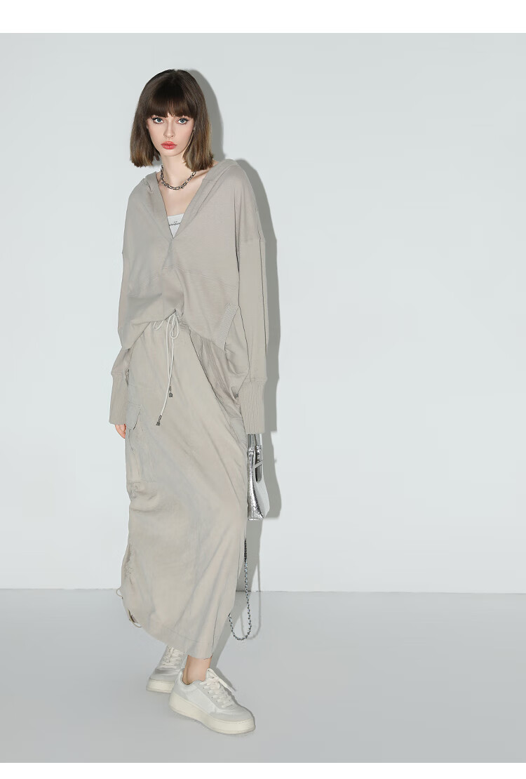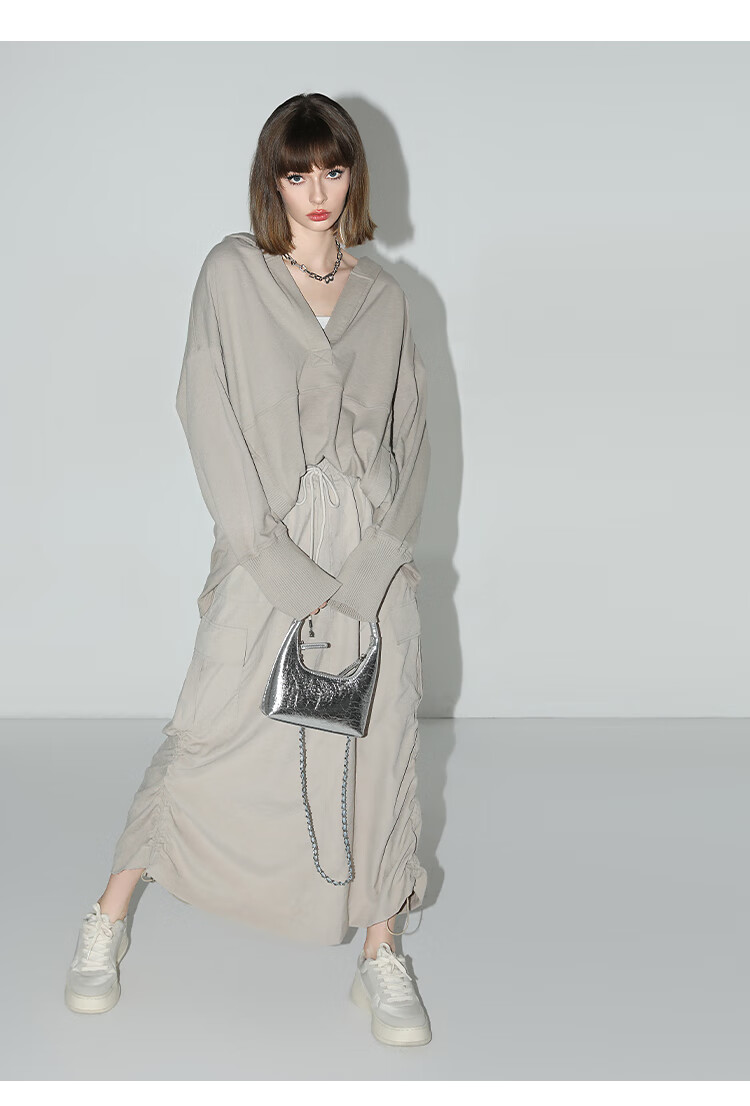 【专属秒杀】COCOBELLA设计感抽绳大口袋工装凤长裙宽松明线半身裙HS3066