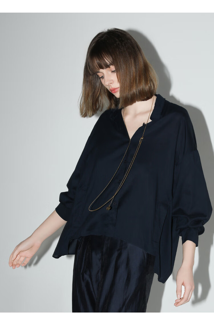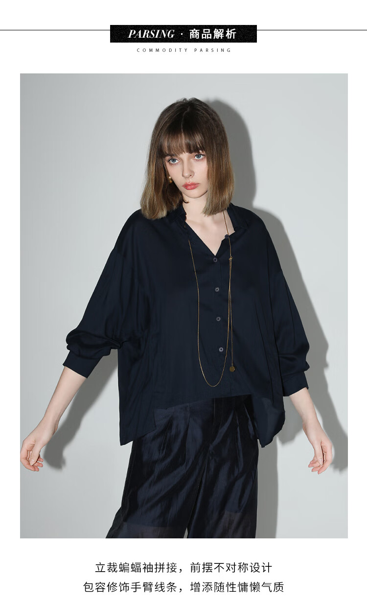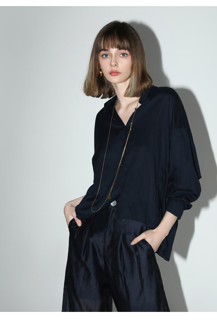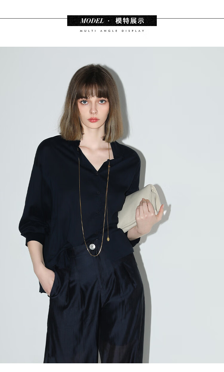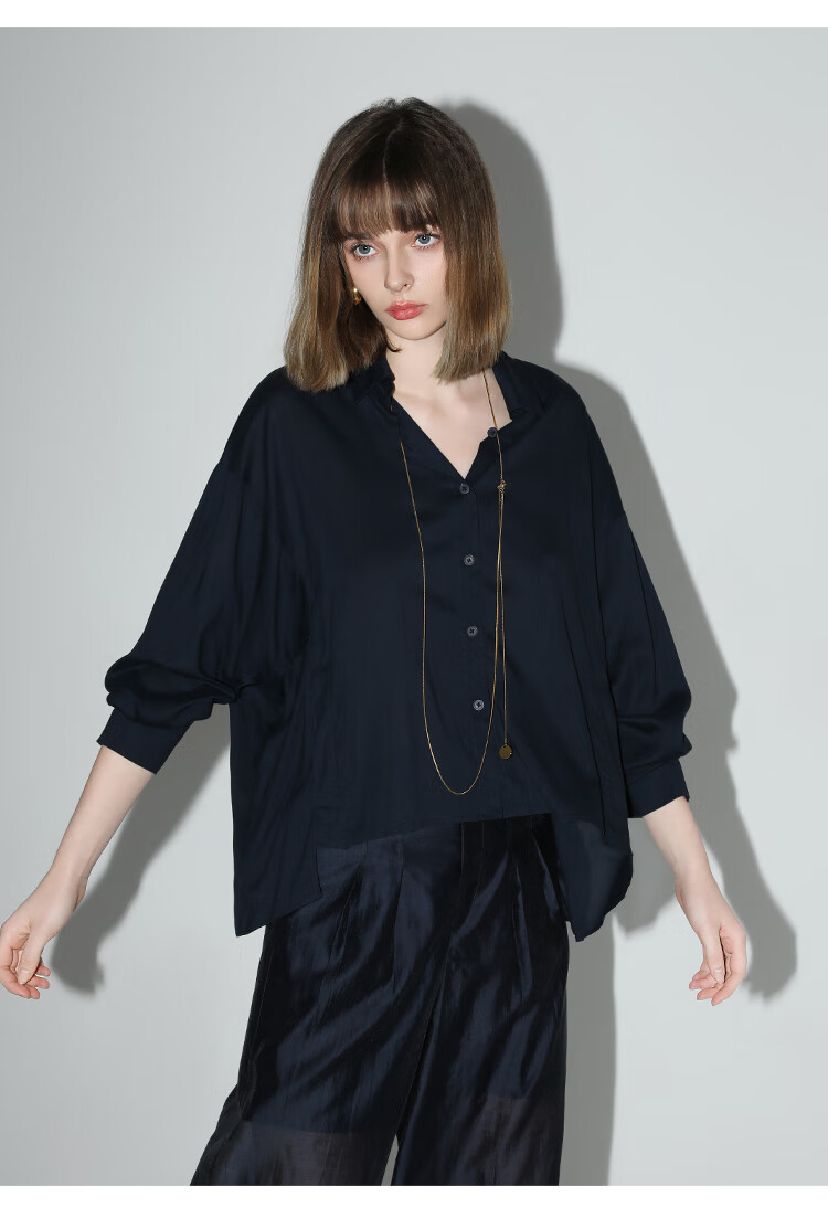 COCOBELLA莱赛尔宽松蝙蝠袖衬衫女优雅气质翻领衬衣SR916-2