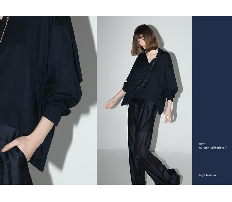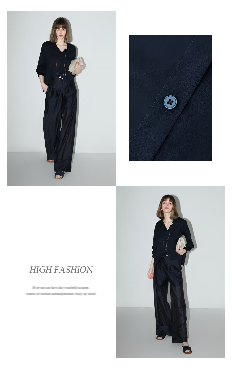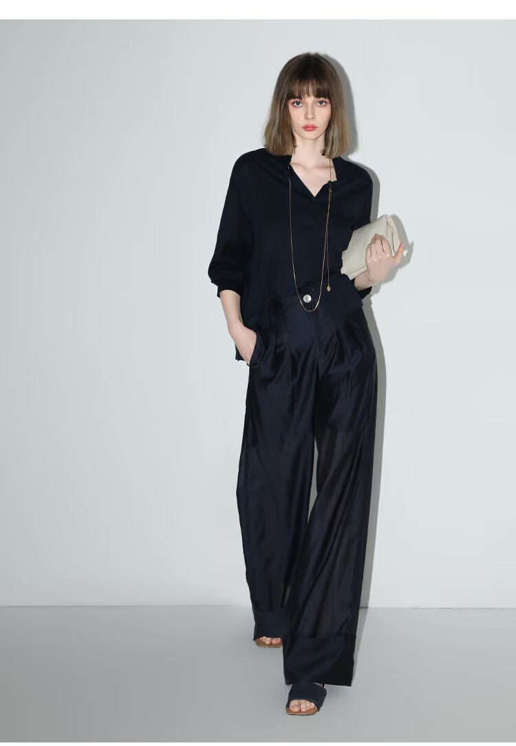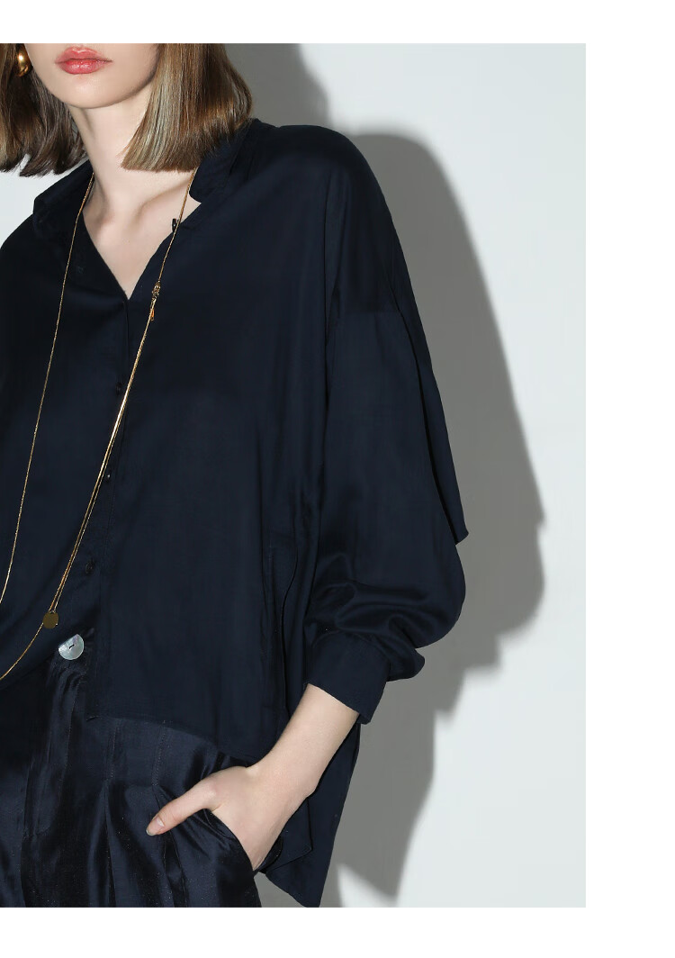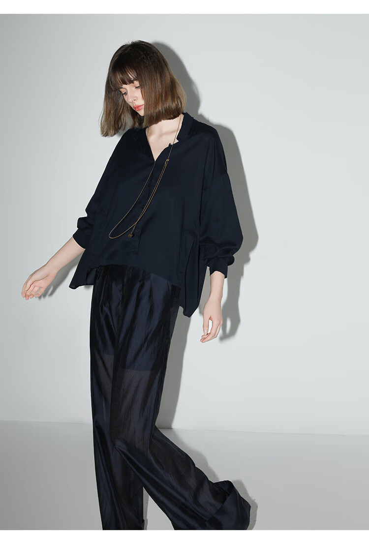 COCOBELLA莱赛尔宽松蝙蝠袖衬衫女优雅气质翻领衬衣SR916-2