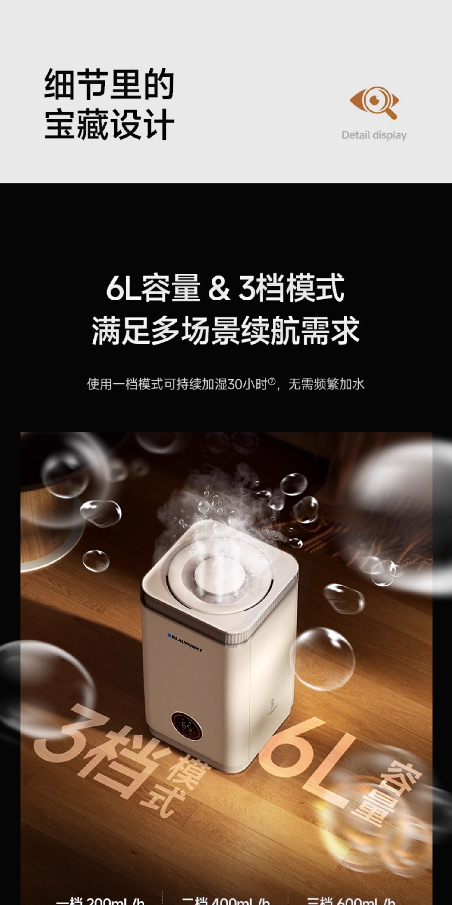 德国蓝宝无雾加湿器家用卧室轻音上加水孕妇婴儿S10PRO