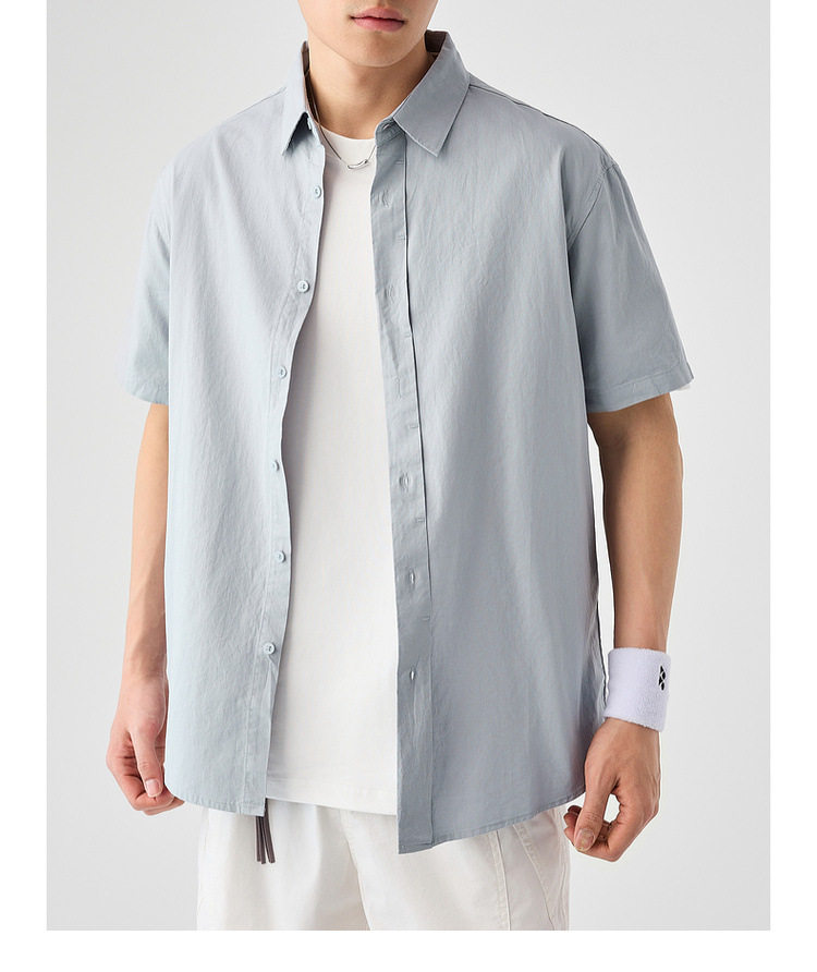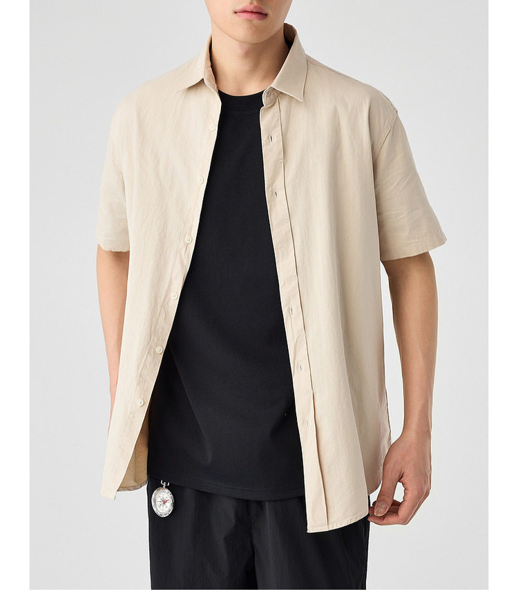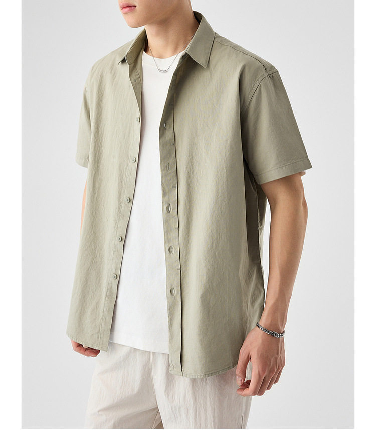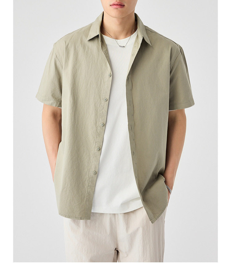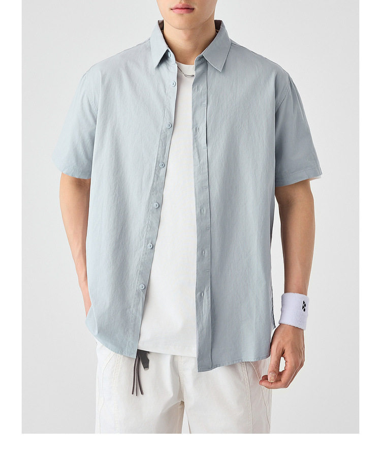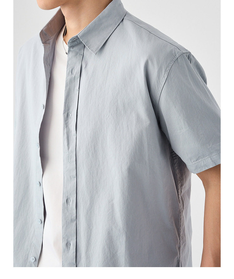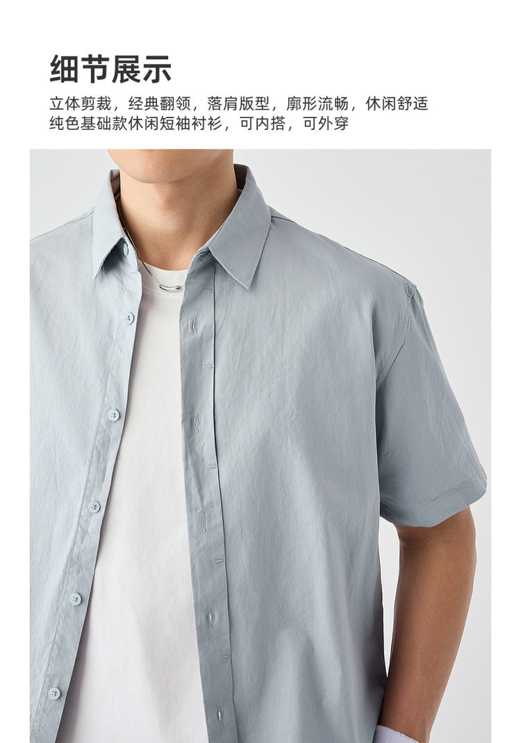 墨麦客男装纯色全棉短袖衬衫男2026夏季新款洗水棉男士衬衣50318.