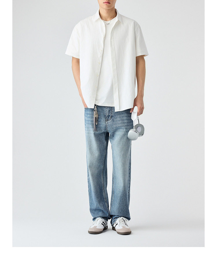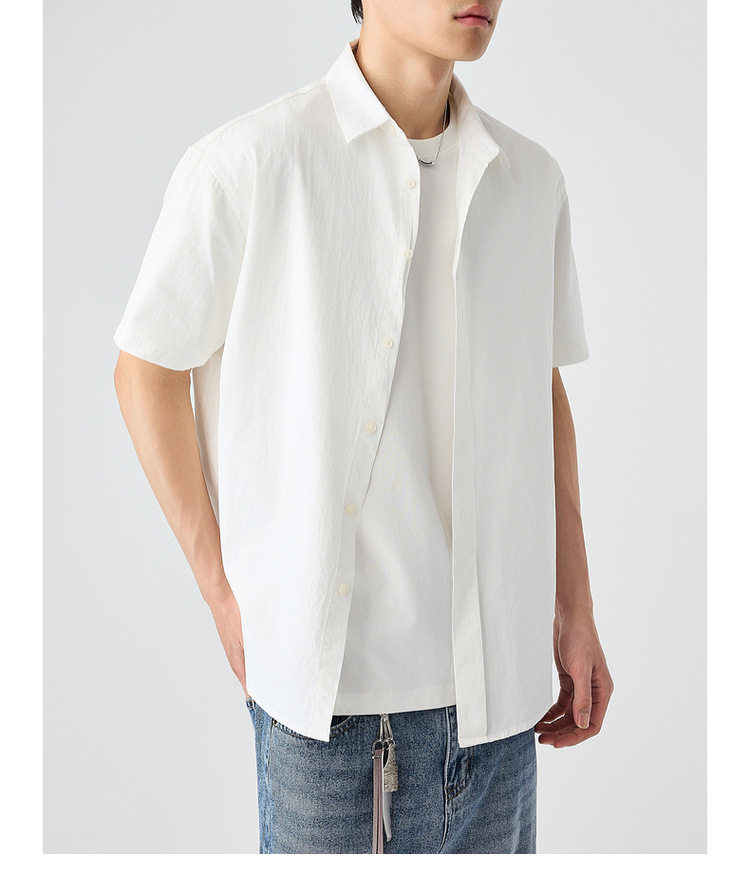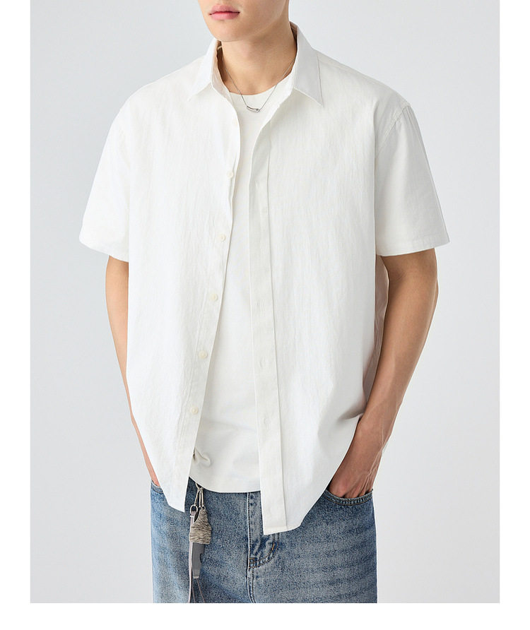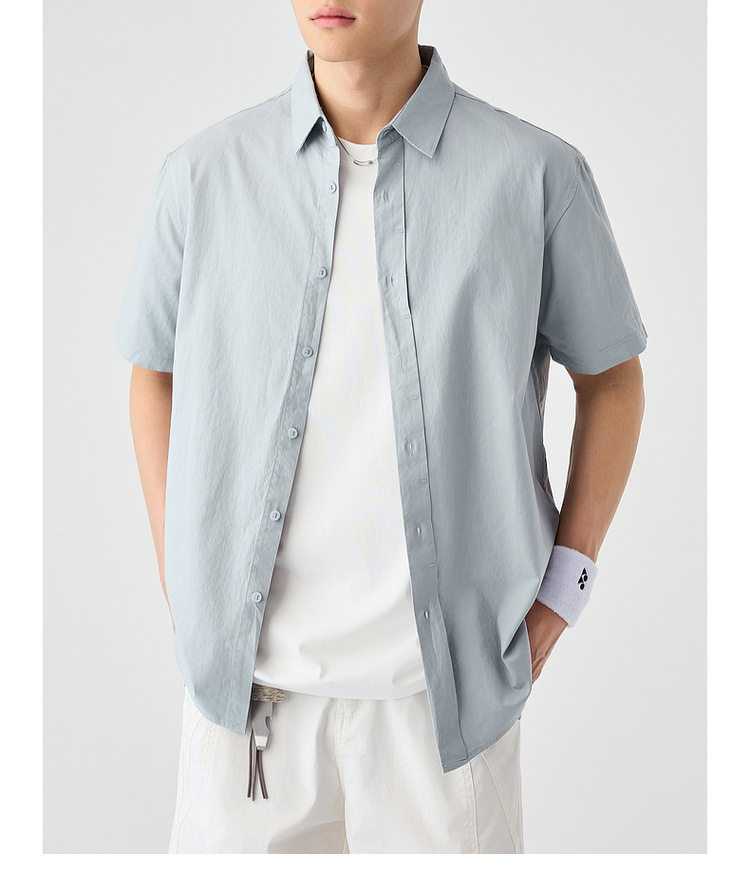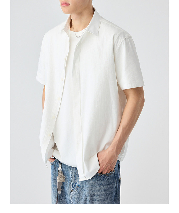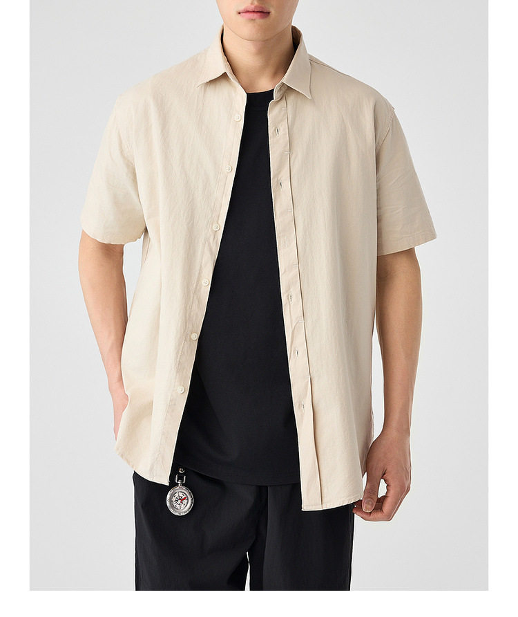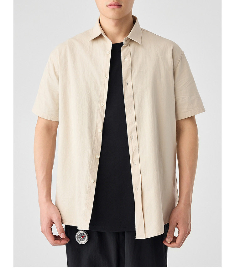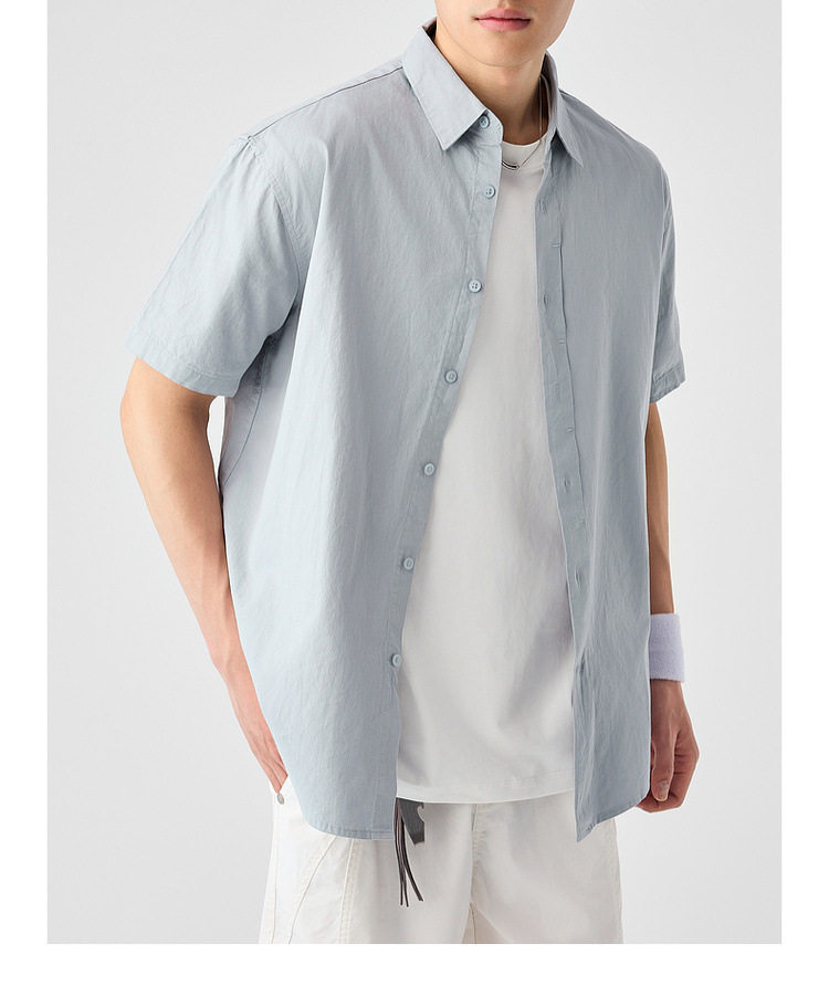 墨麦客男装纯色全棉短袖衬衫男2026夏季新款洗水棉男士衬衣50318.