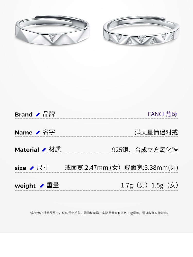 【满天星对戒】Fanci范琦银饰轻奢情侣对戒 下单赠精美礼盒 顺丰空运+运费险