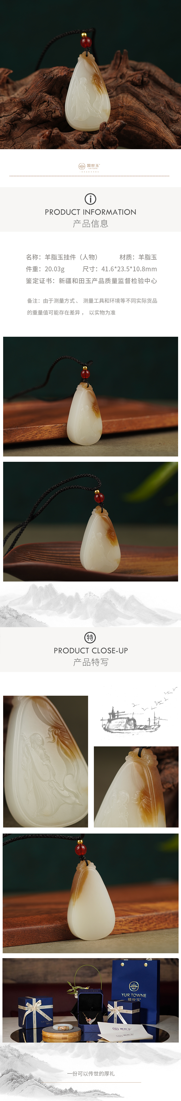 新疆国玉盟世玉和田玉羊脂玉挂件(昭君出塞)【带证书·顺丰物流】