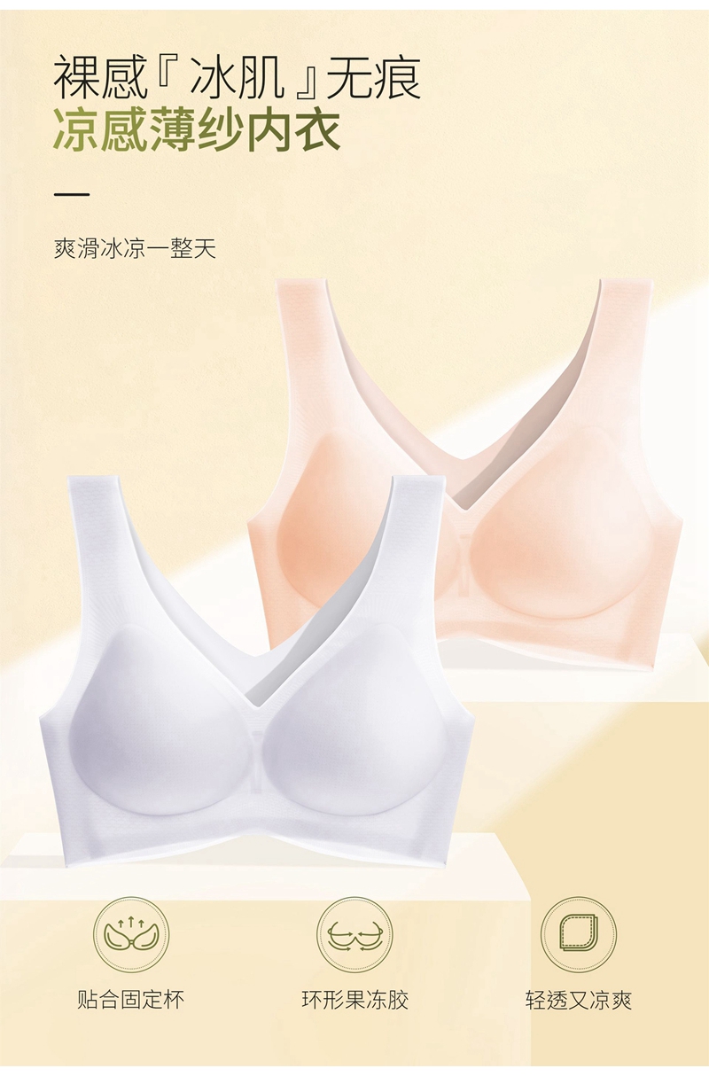 裸感冰肌 无痕凉感轻薄透气水滴型半固定杯垫文胸