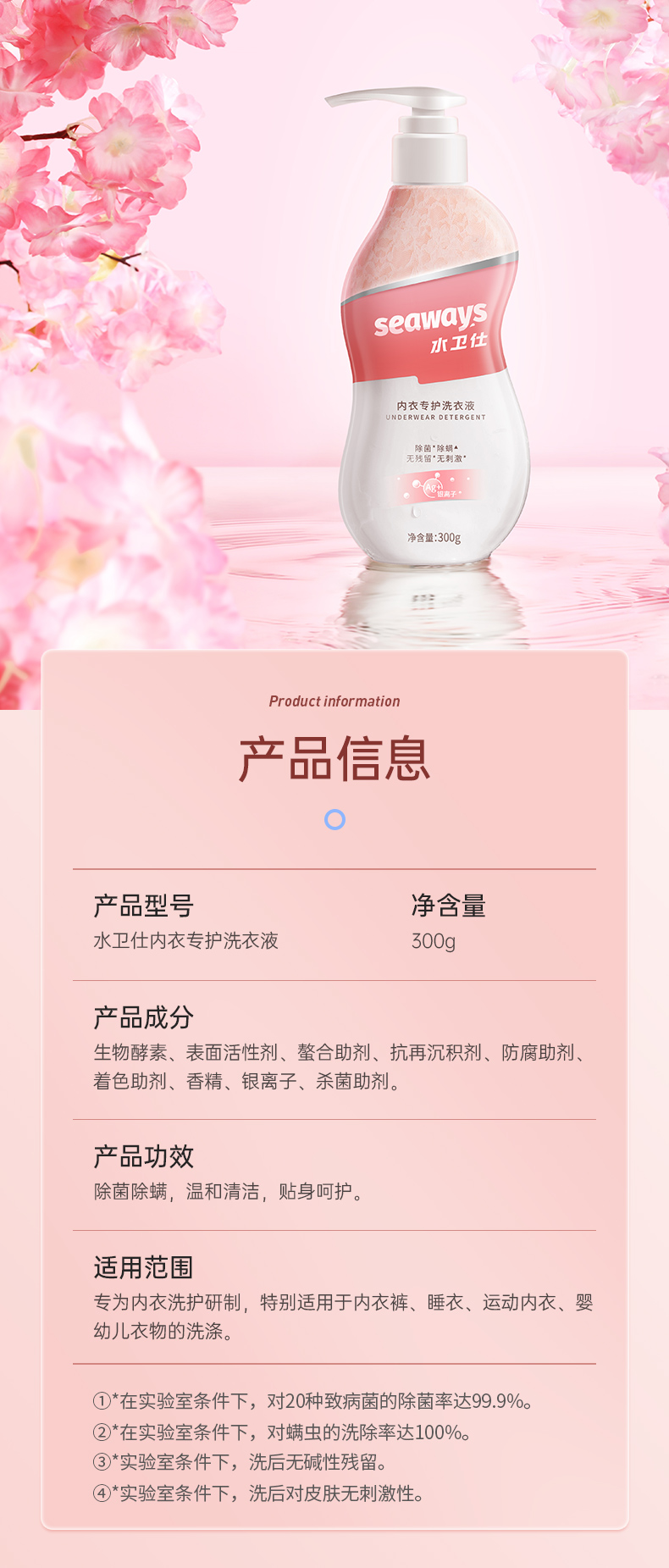 水卫仕丨内衣洗衣液 300g 柔软衣物 温和亲肤