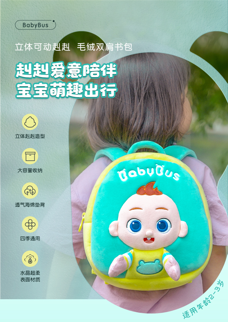 宝宝巴士背包毛绒双肩包1-3岁 赳赳毛绒双肩背包 赳赳书包