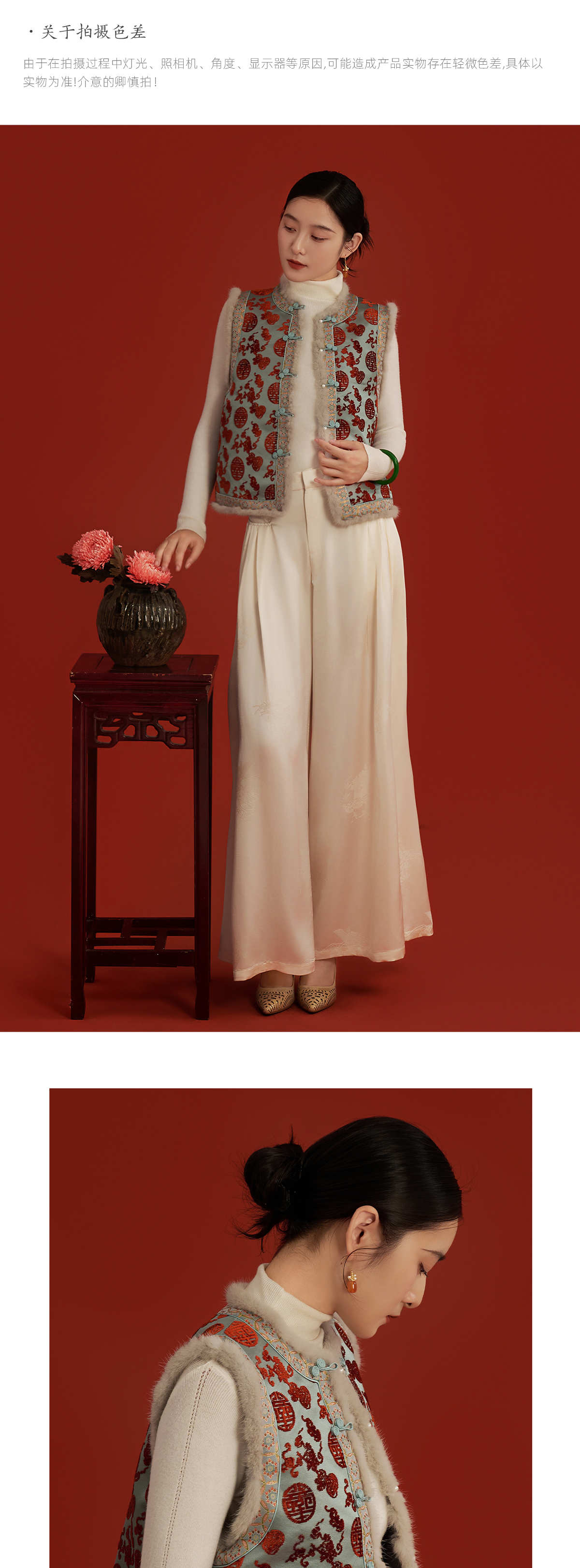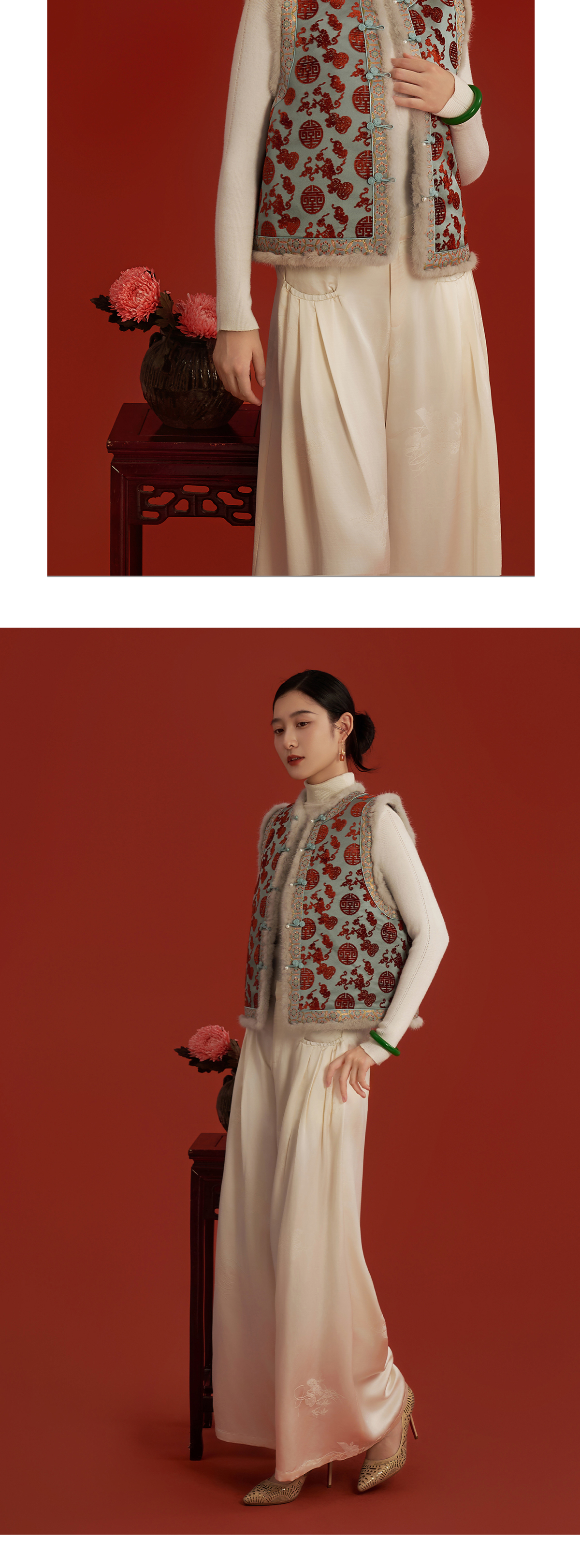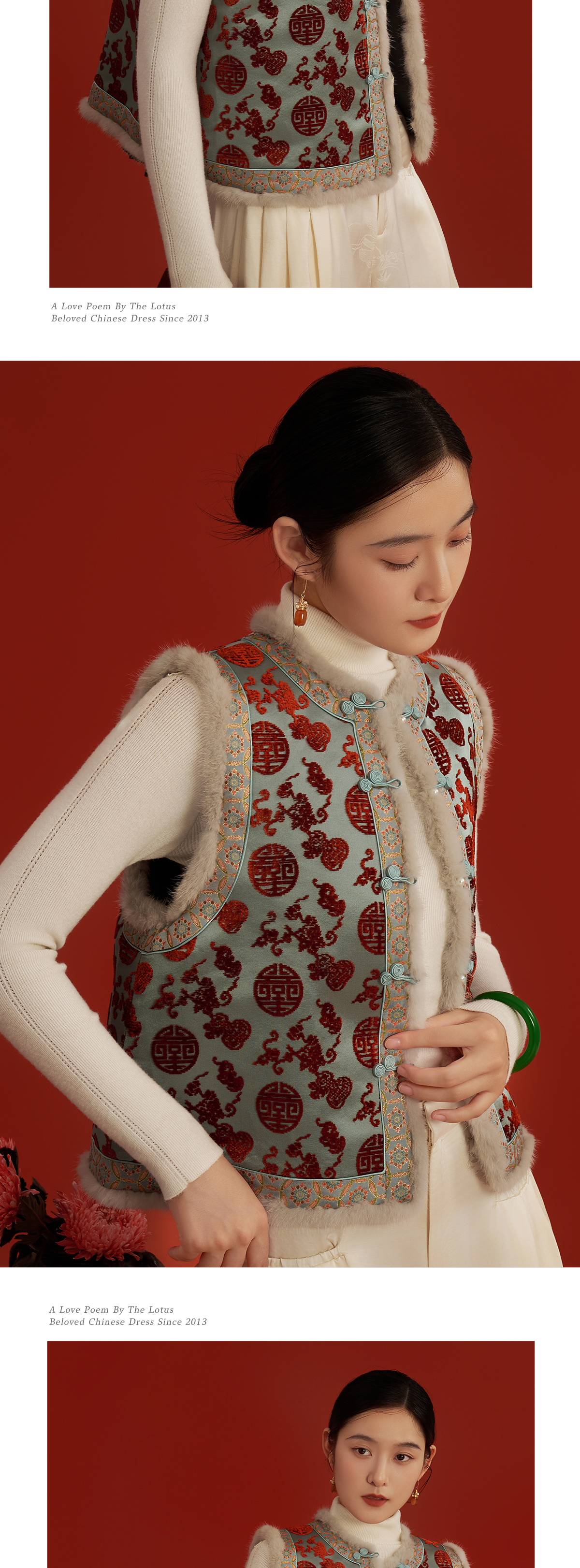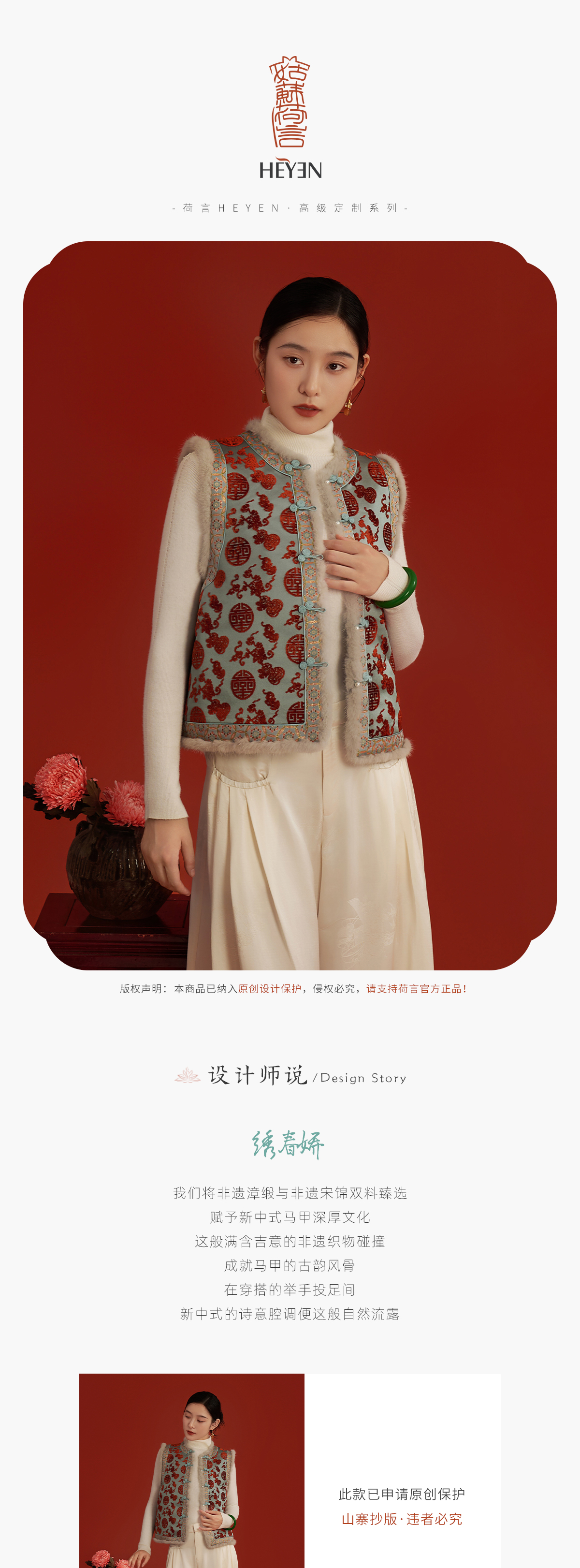 荷言HEYEN 绣春娇 寿字葫芦纹真丝非遗漳缎新中式夹棉马甲拼接非遗宋锦