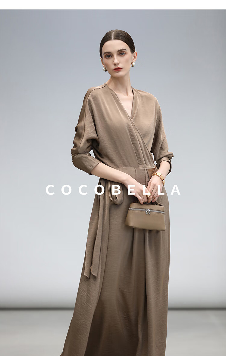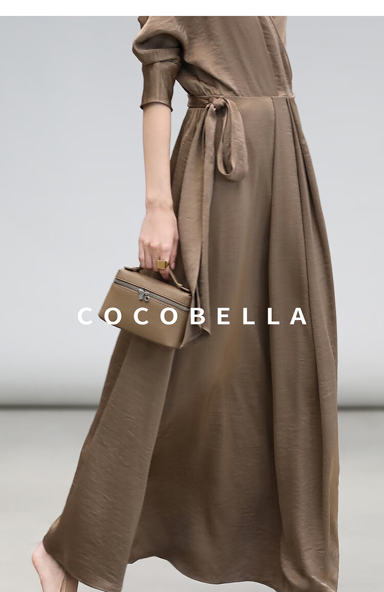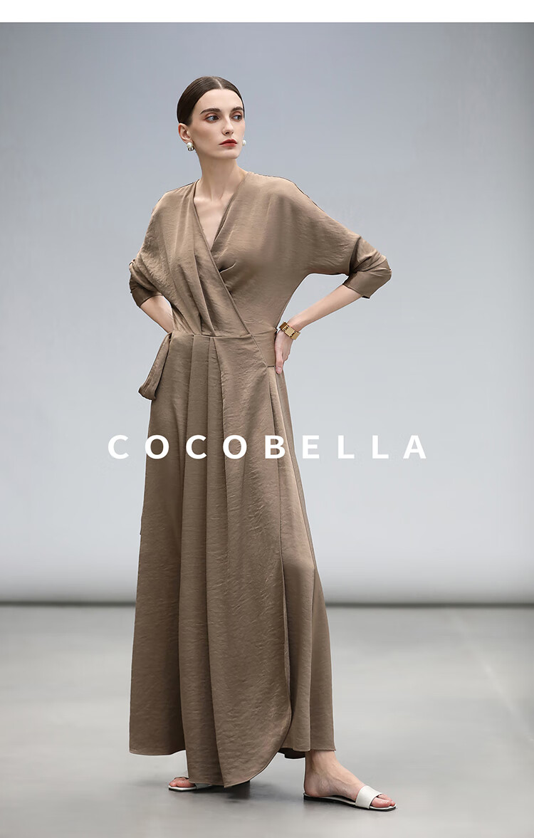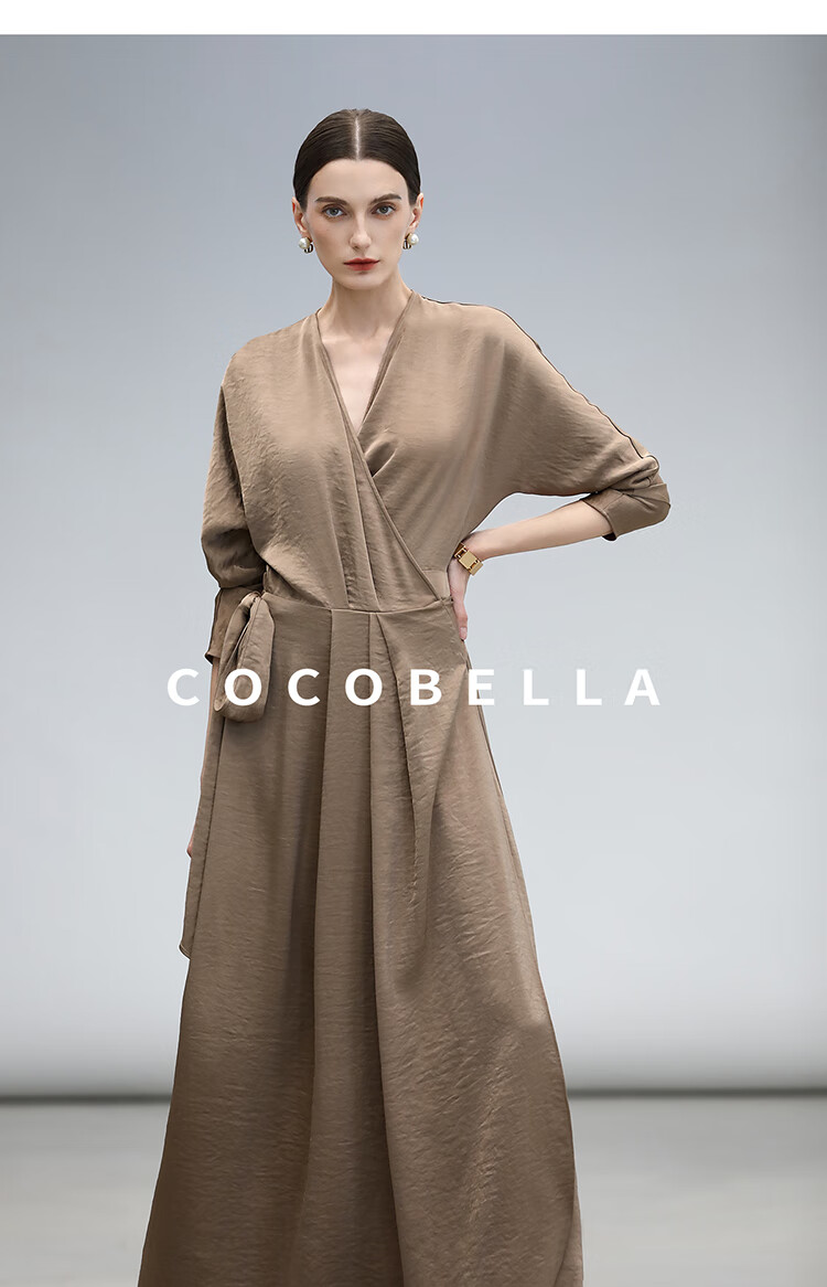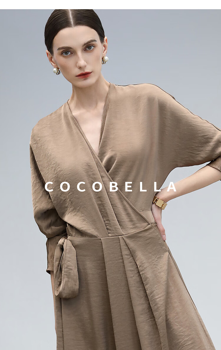 COCOBELLA围裹式丝光缎面连衣裙春夏轻奢风法式茶歇裙FR3010