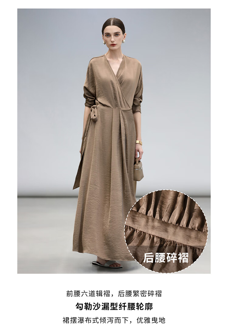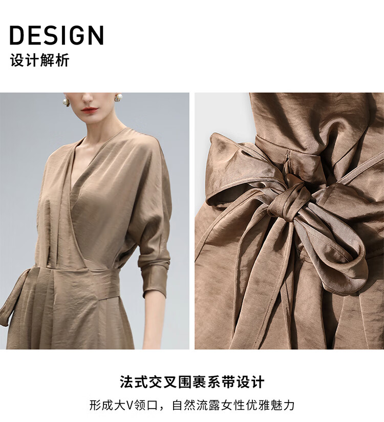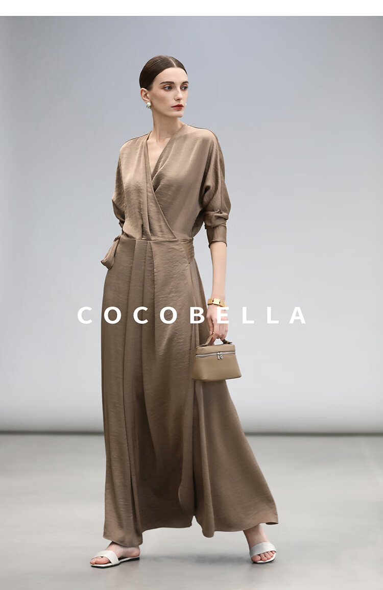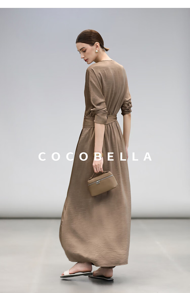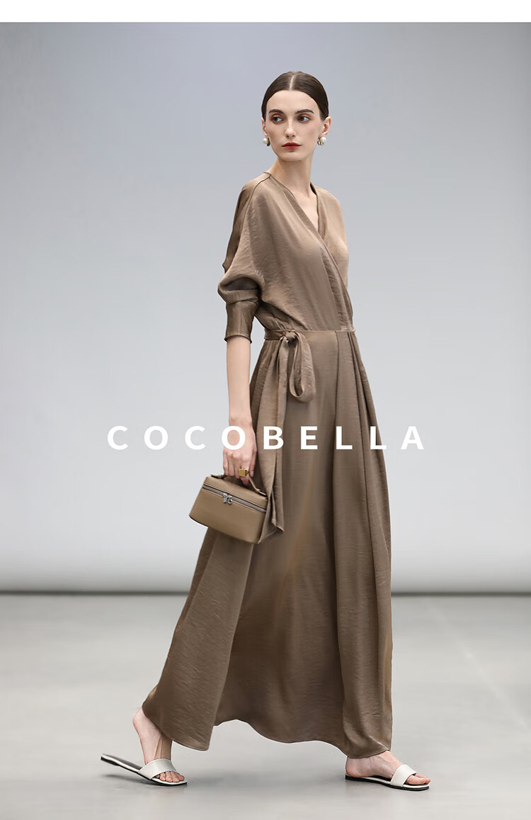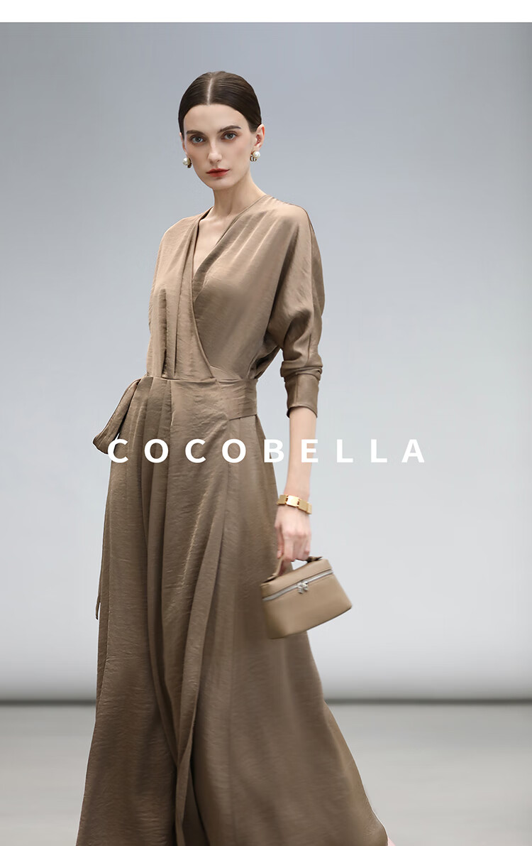 COCOBELLA围裹式丝光缎面连衣裙春夏轻奢风法式茶歇裙FR3010