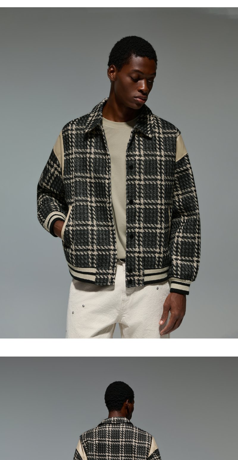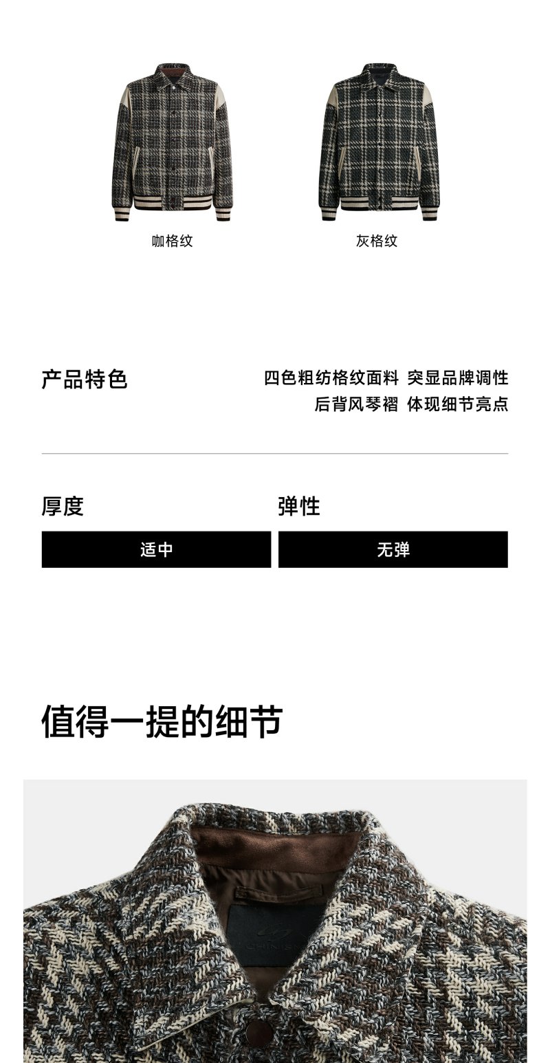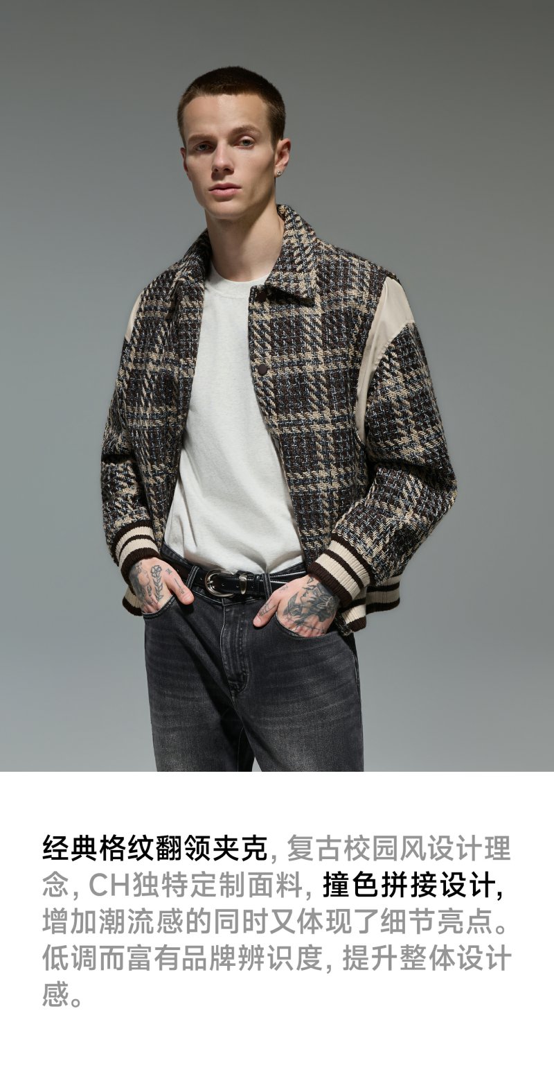 CHINISM赤尘 复古格纹小香风外套男春秋拼接肌理感男士翻领夹克