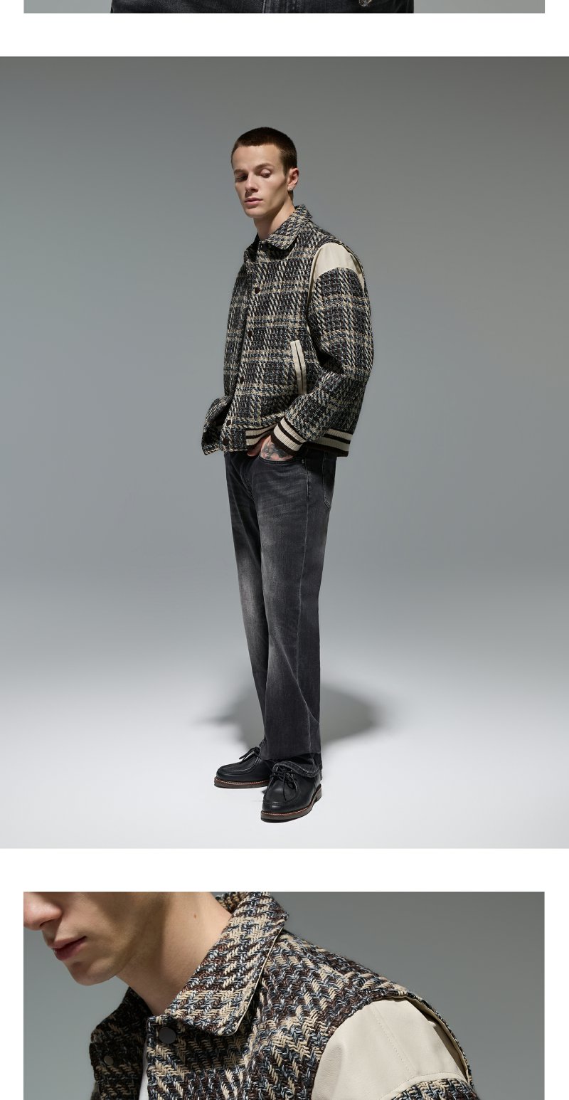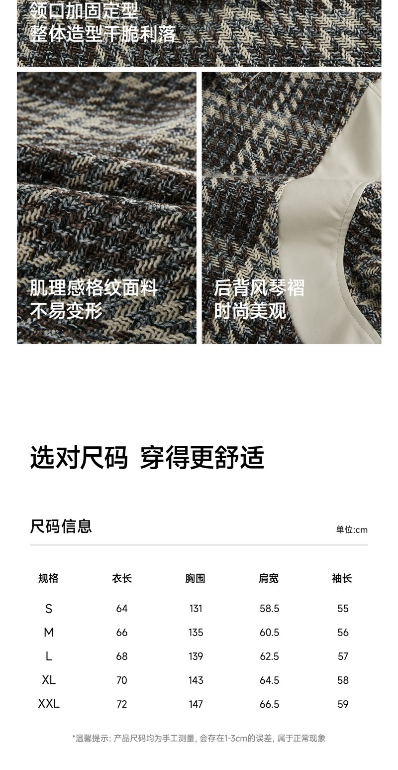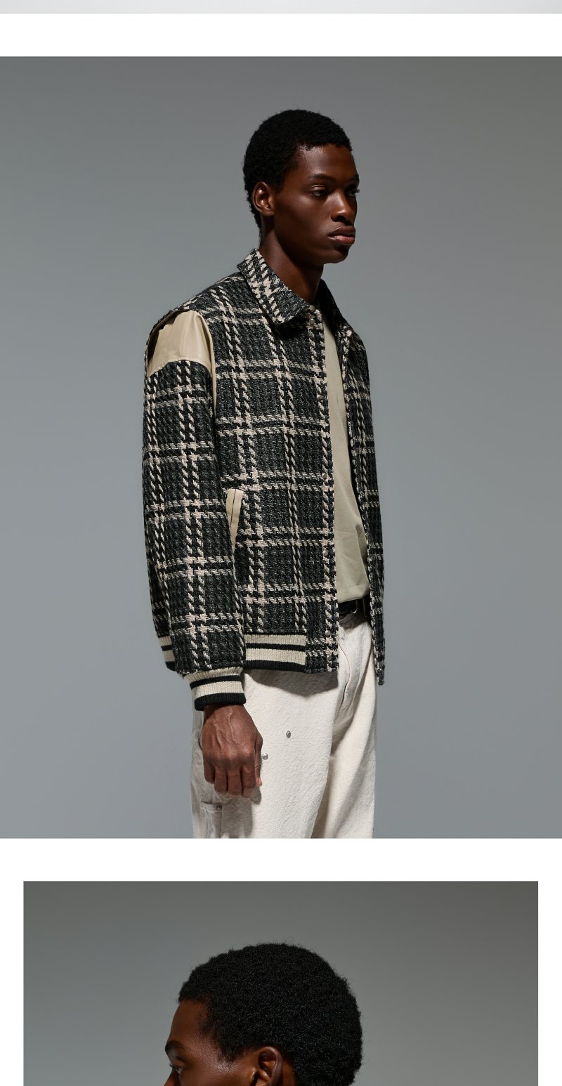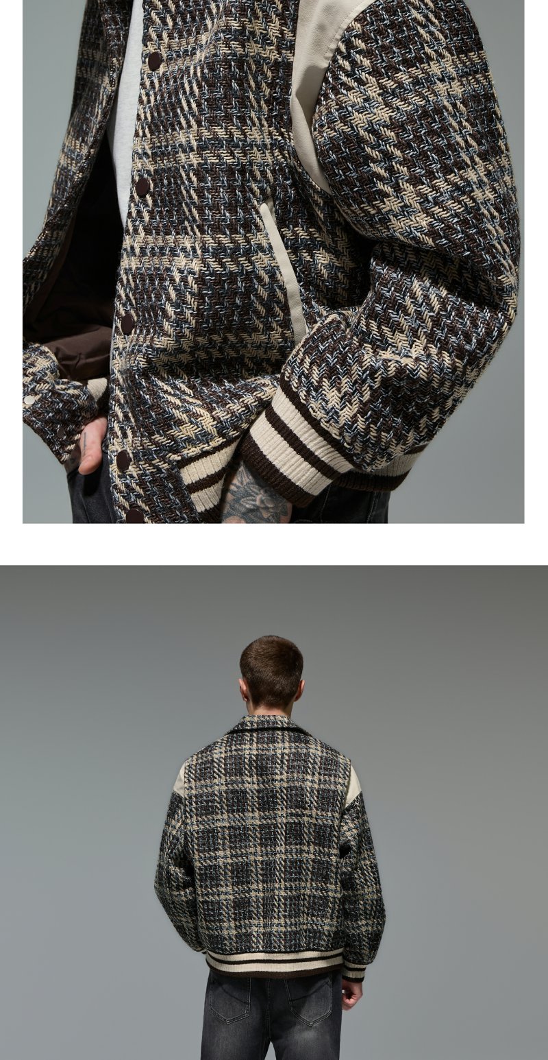 CHINISM赤尘 复古格纹小香风外套男春秋拼接肌理感男士翻领夹克
