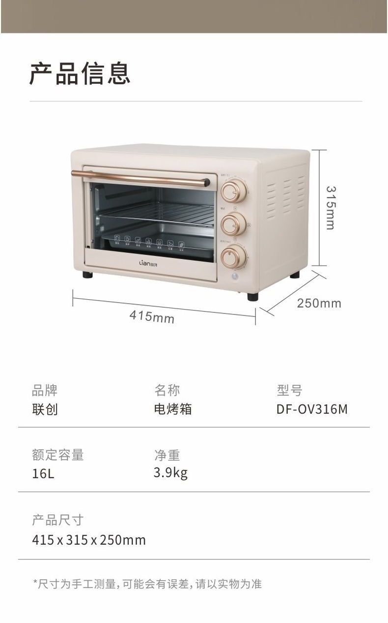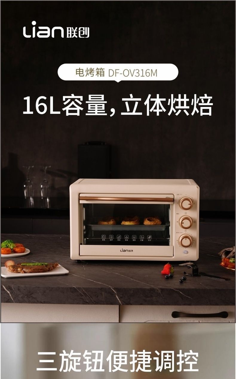 联创 电烤箱 DF-OV316M 独立控温家用烘焙小型电烤炉