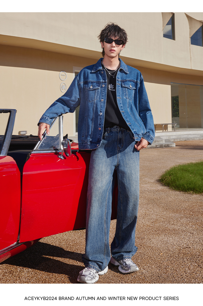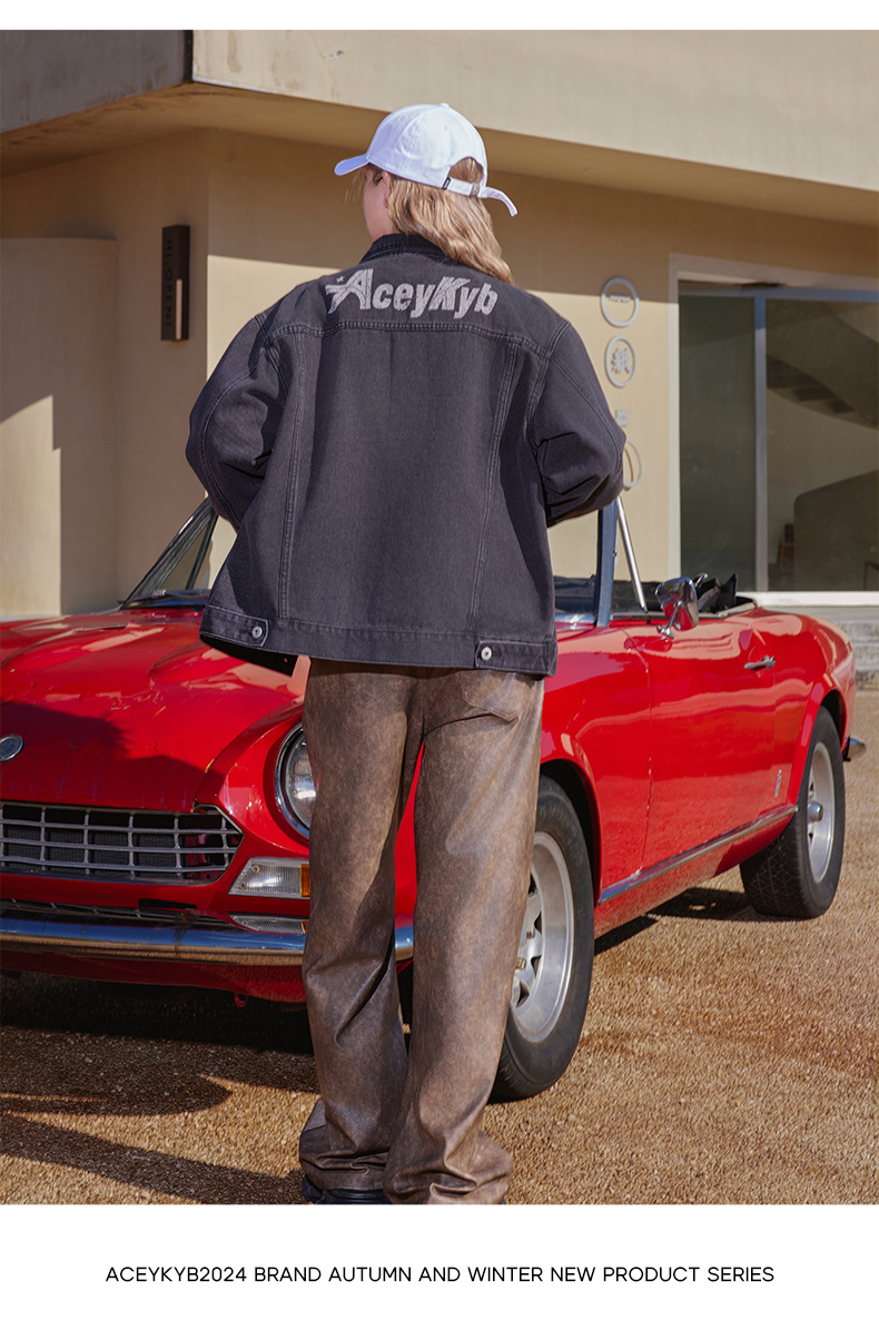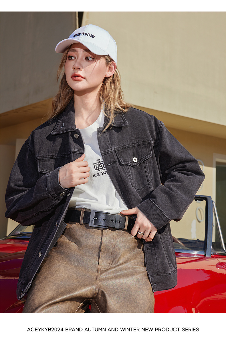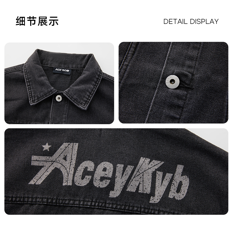 ACEYKYB黄子韬夹克秋季新款复古高街潮流休闲外套纯色宽松百搭牛仔衣