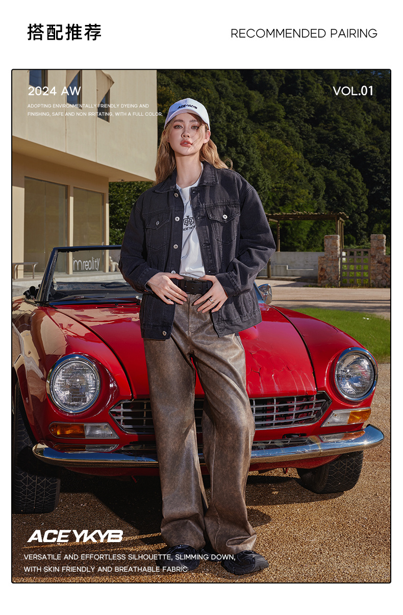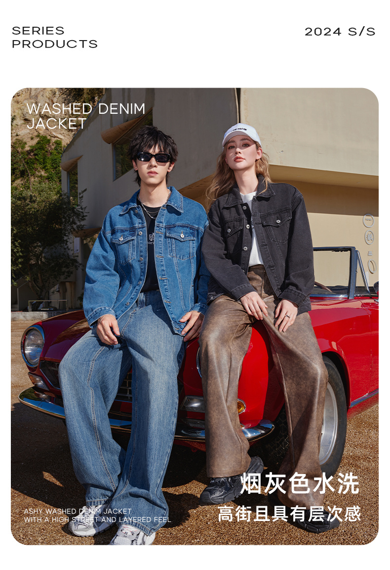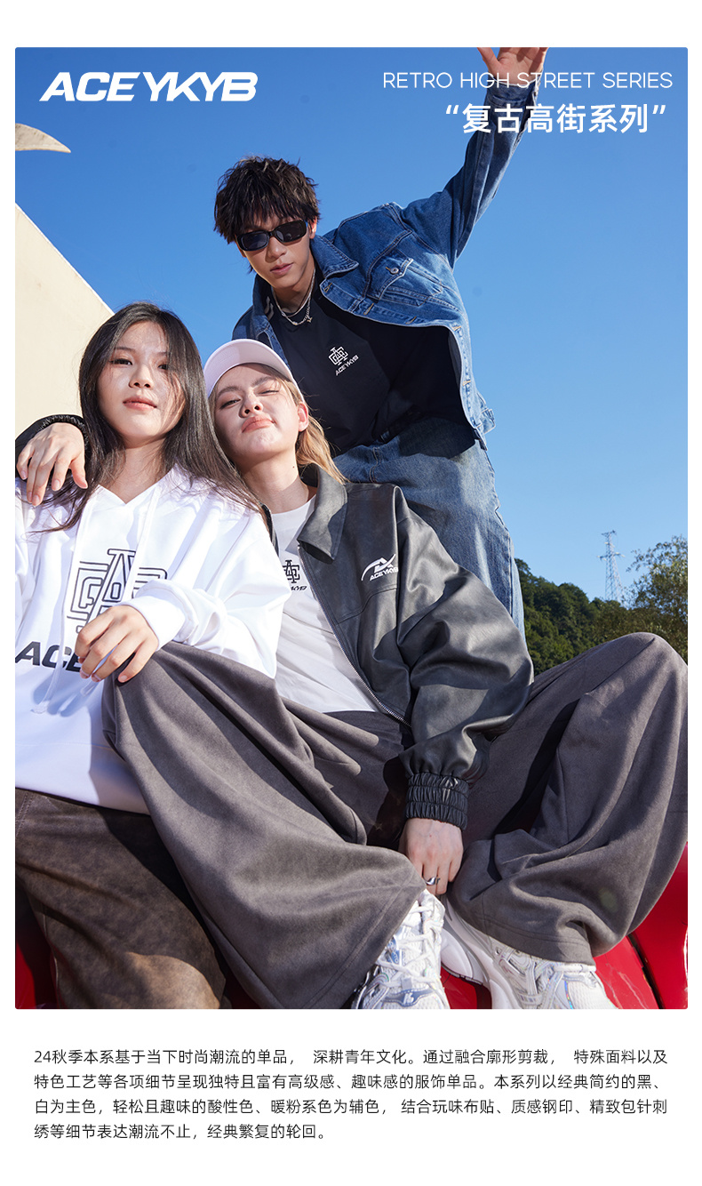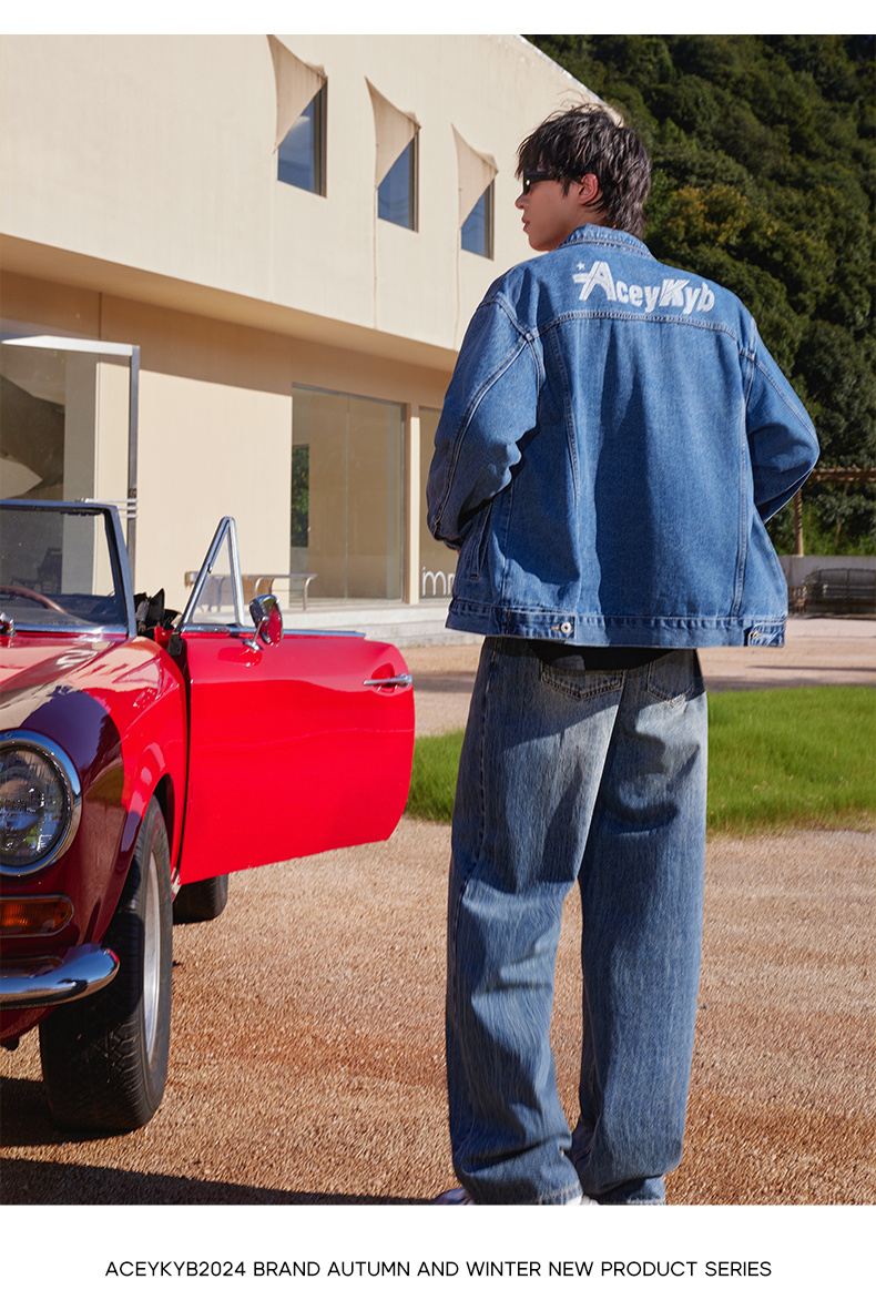 ACEYKYB黄子韬夹克秋季新款复古高街潮流休闲外套纯色宽松百搭牛仔衣