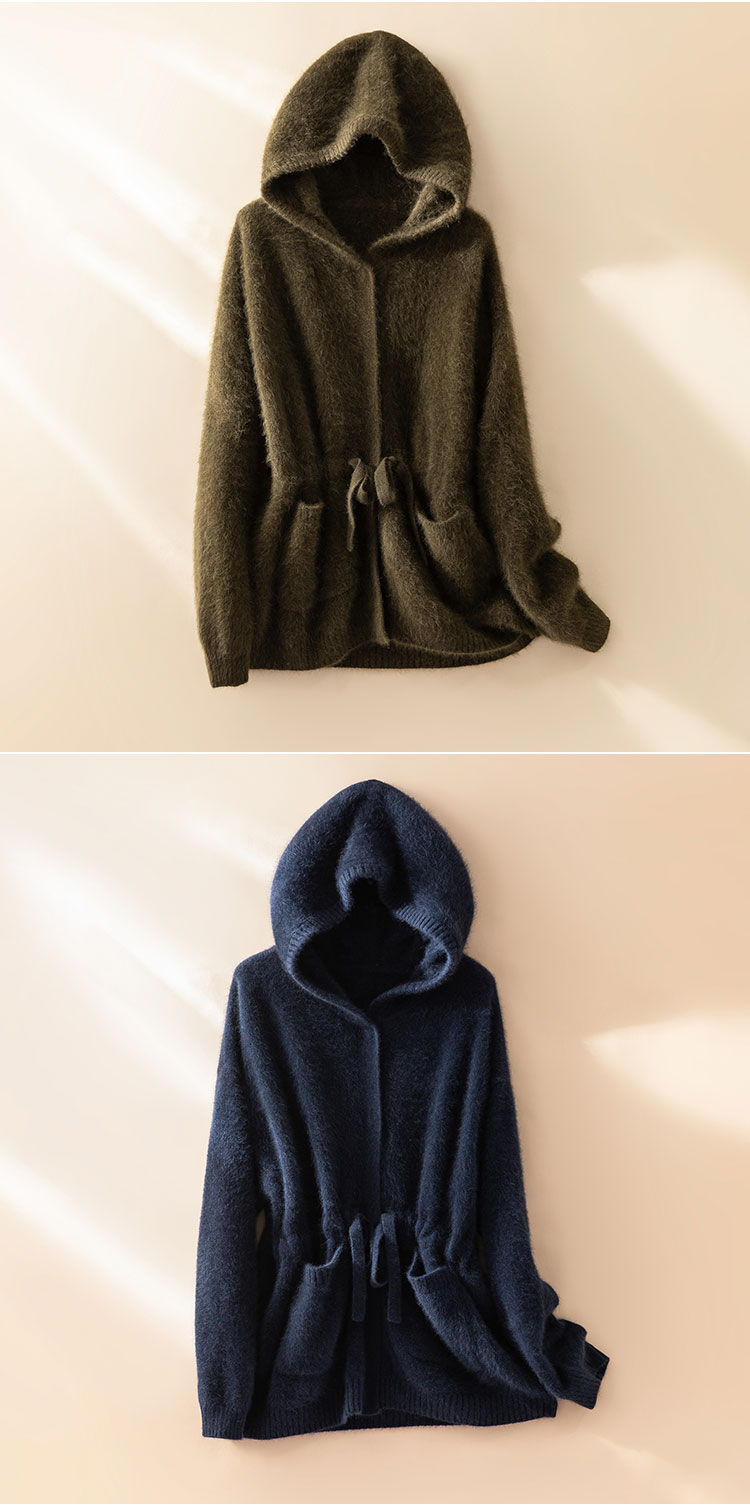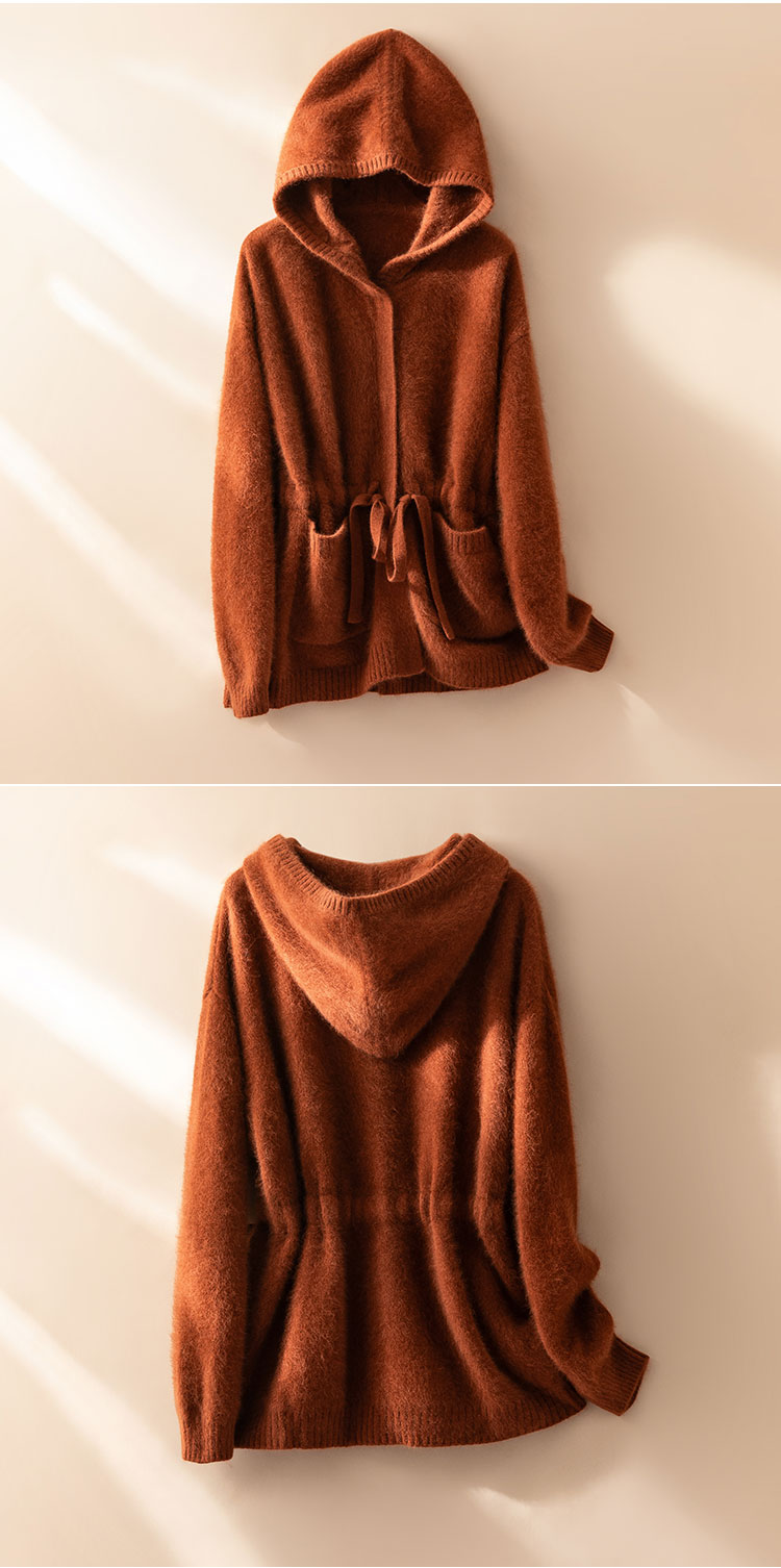 北美小动物系列~复古皮草感抽绳收腰连帽加厚开衫外套女XDW260514