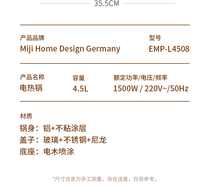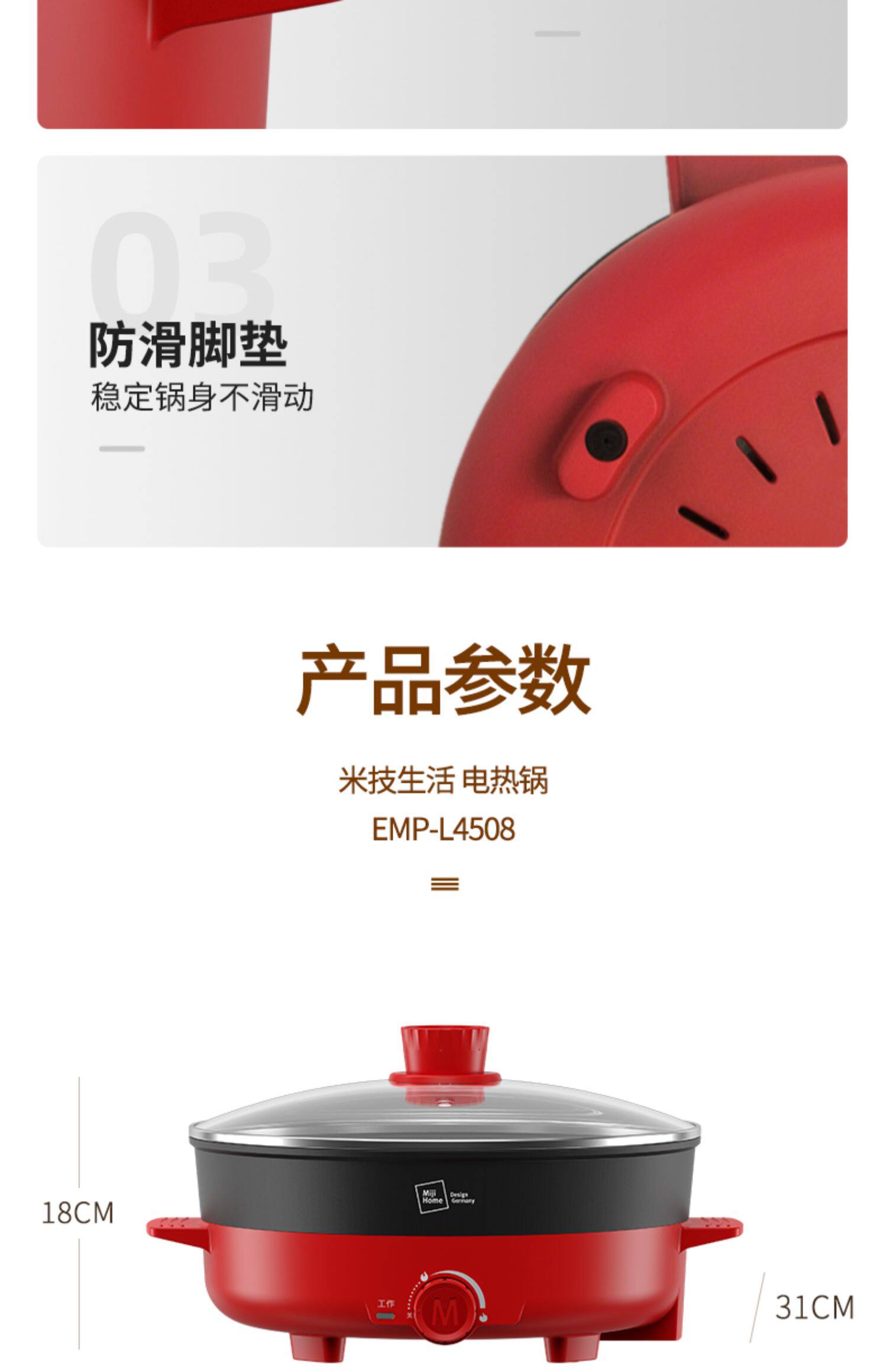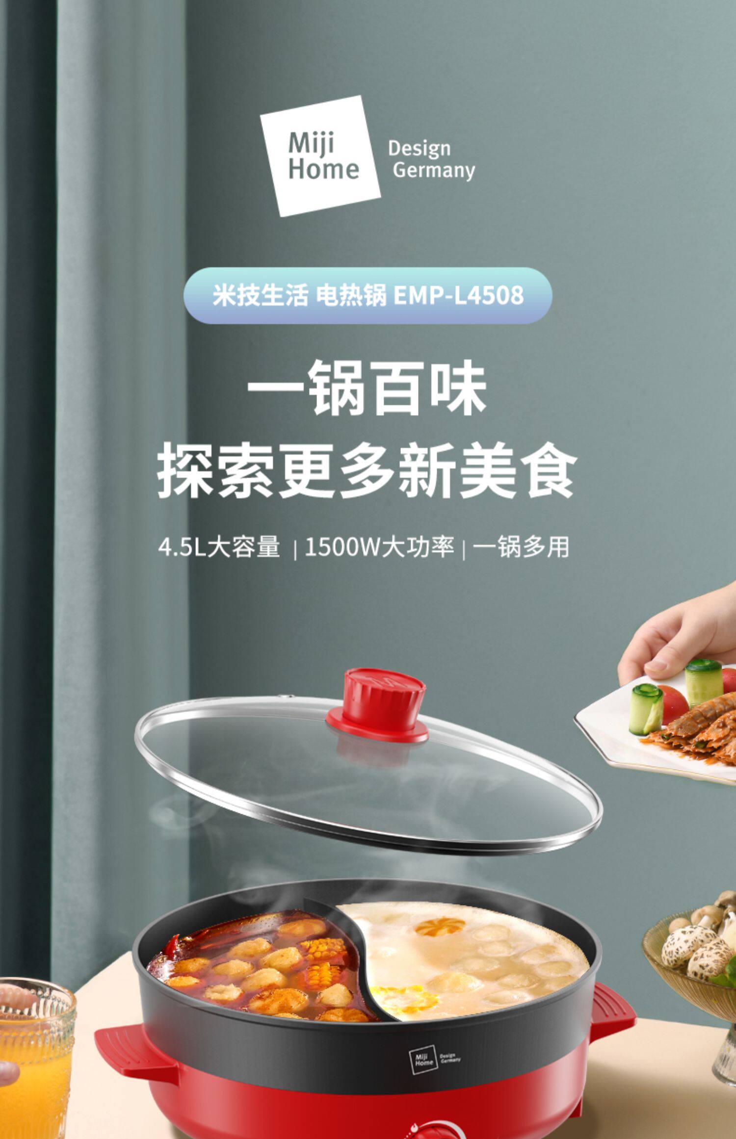 4.5L米技电热锅EMP-L4508 一锅多用 不易粘易清洁