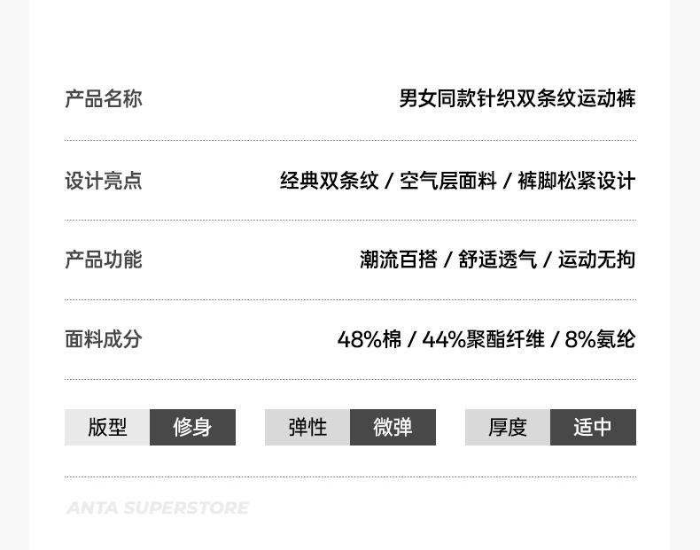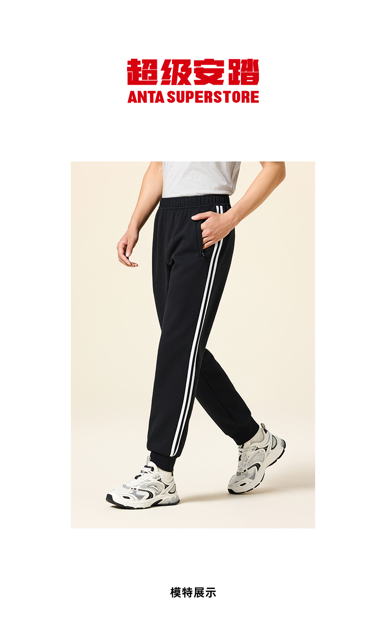超级安踏运动裤男女同款秋季双条纹复古空气层舒适休闲长裤子172538301U