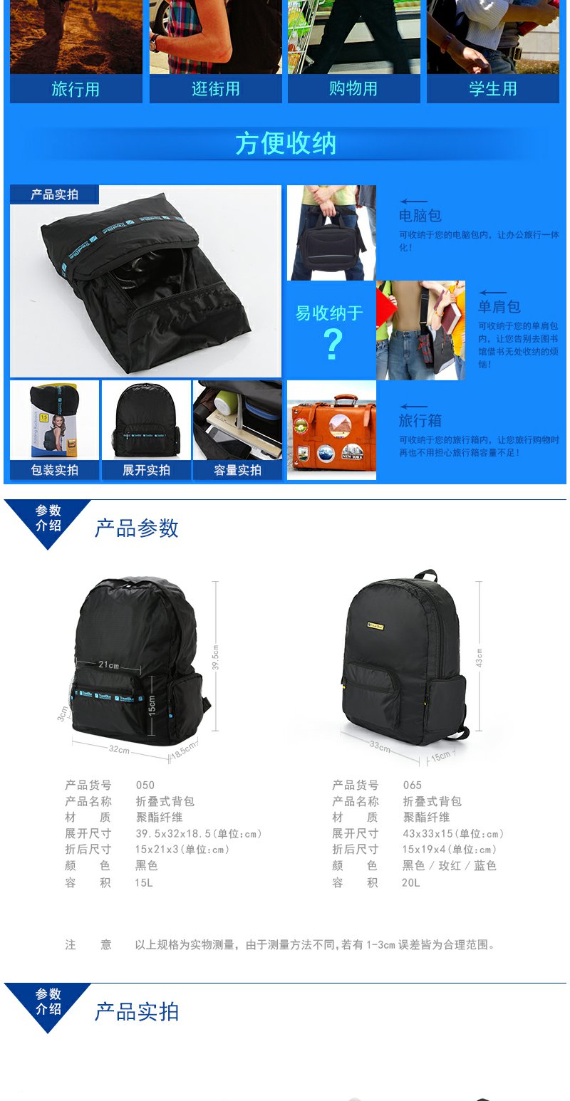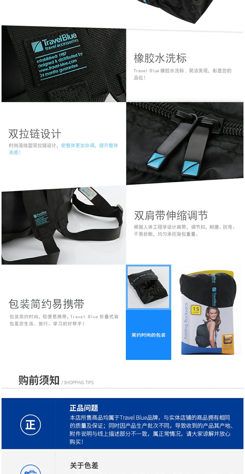 蓝旅(TRAVEL BLUE) 折叠式背包 轻便折叠双肩背包 050