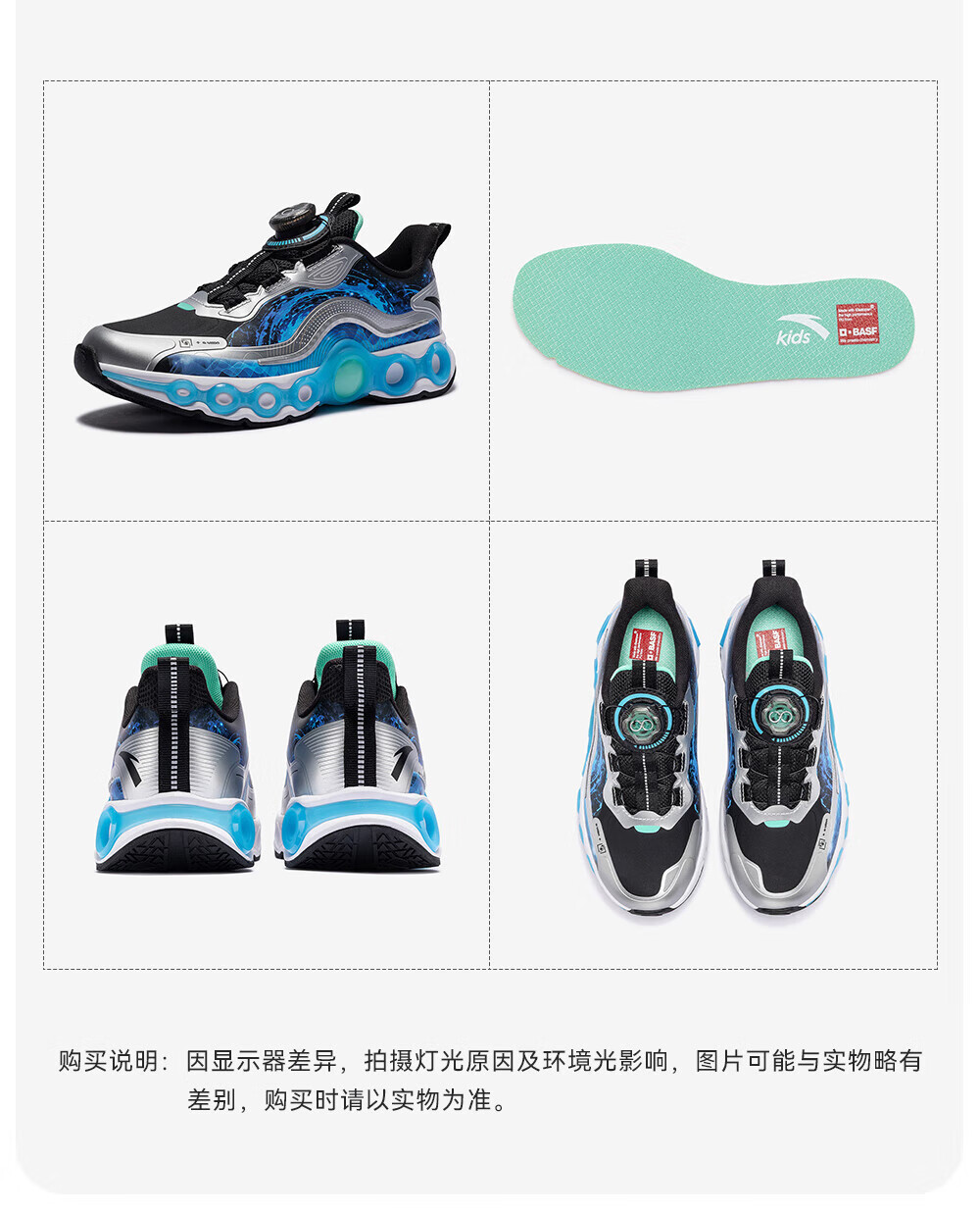 安踏儿童运动鞋男大童能量环11跑步鞋25年冬季革面旋钮扣312545588N