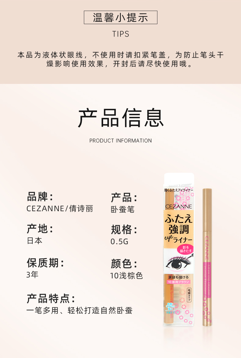 【保税仓】Cezanne倩诗丽泪袋眼线笔10# 0.5g/支