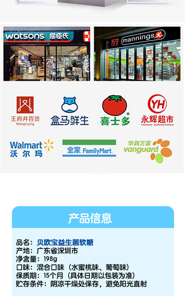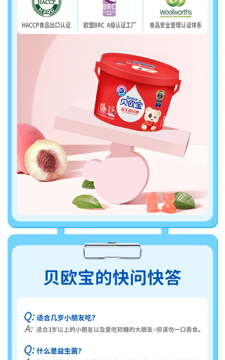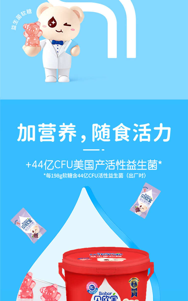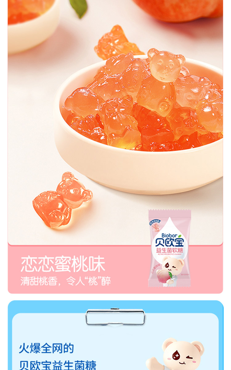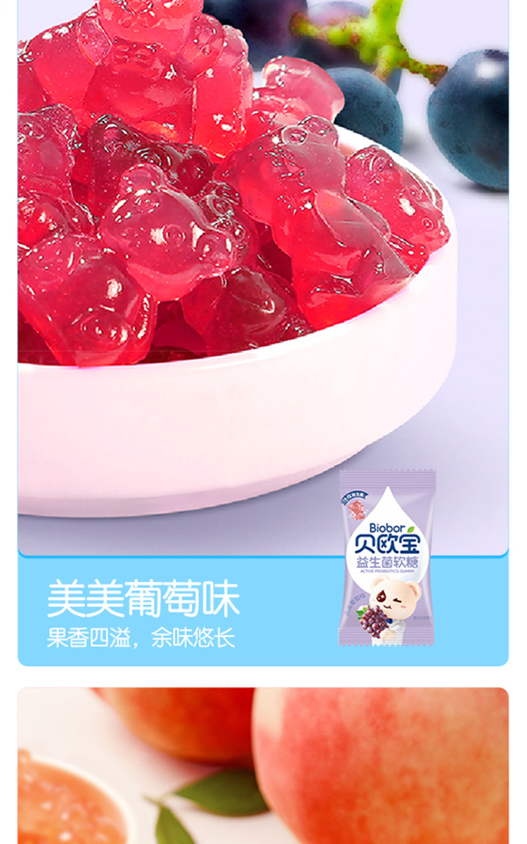 贝欧宝 活性益生菌软糖(水蜜桃味+葡萄味)(活菌型)198g
