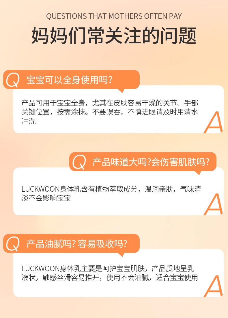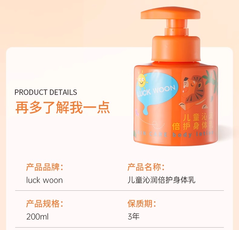 luckwoon儿童身体乳水润肌肤嫩滑柔润0-12岁