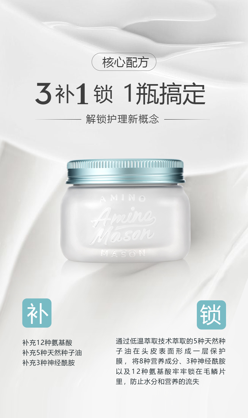【特卖】AminoMason 阿蜜浓梅森 植萃果油致透芯机发膜 210g【保质期:2026年6月 】
