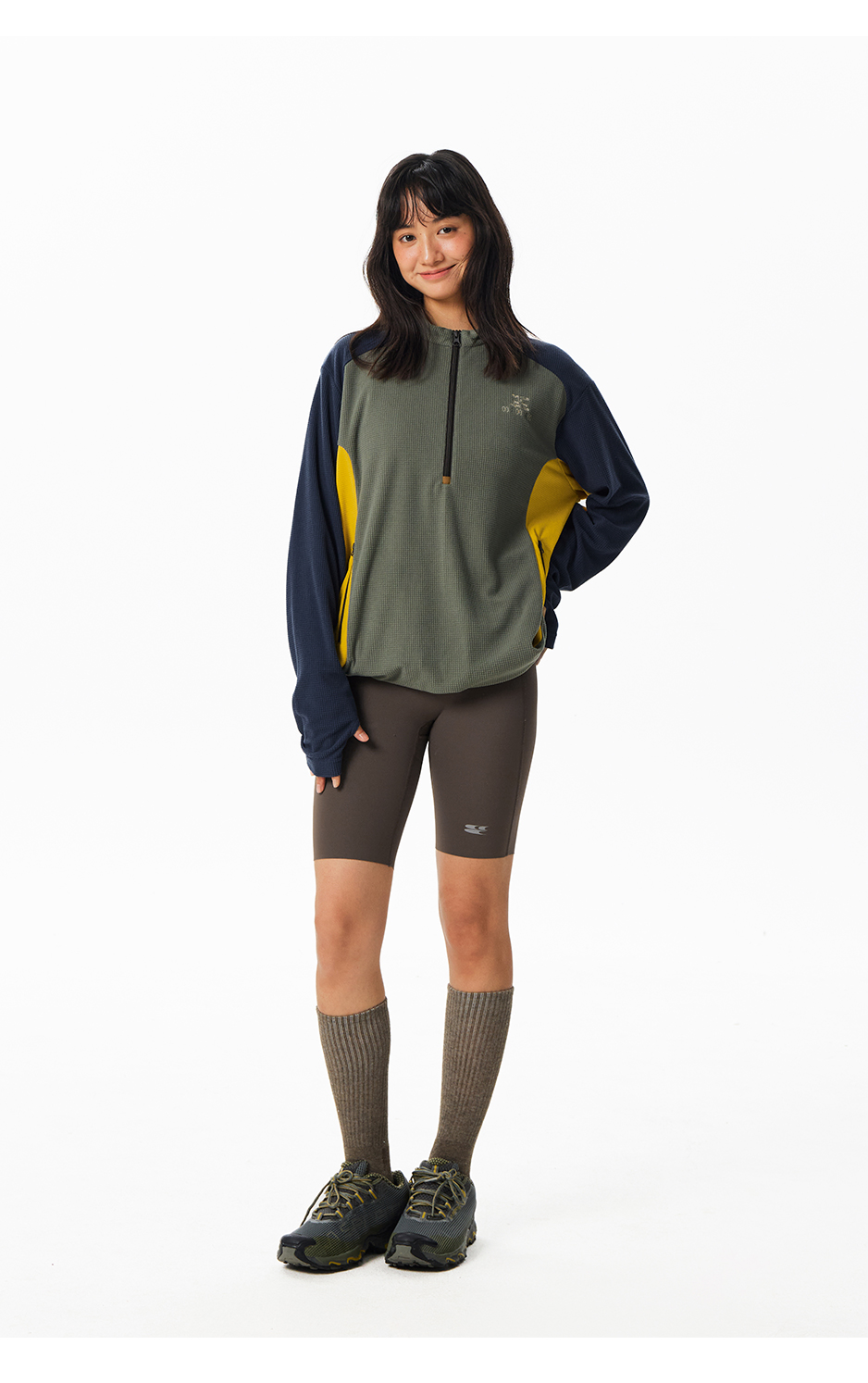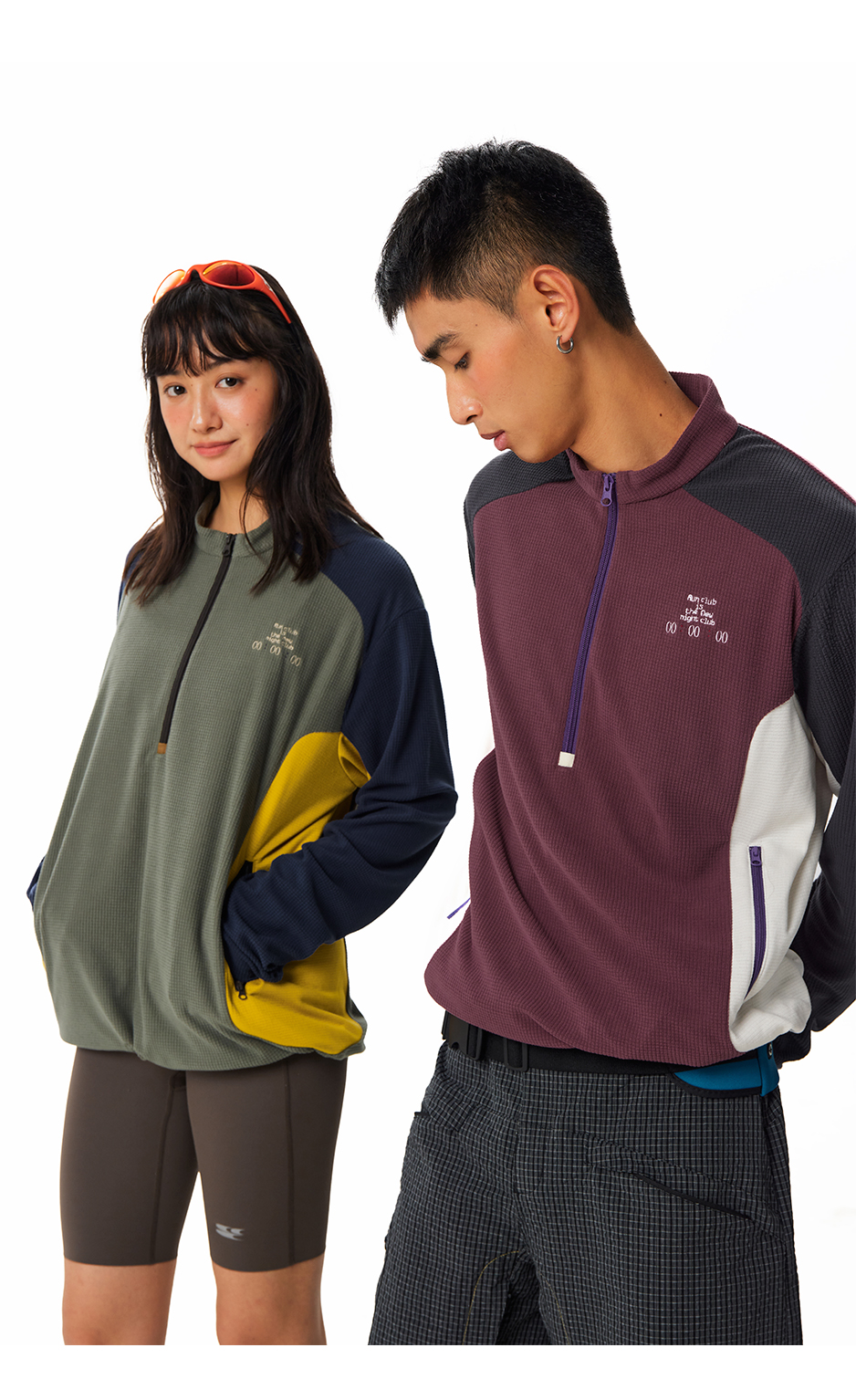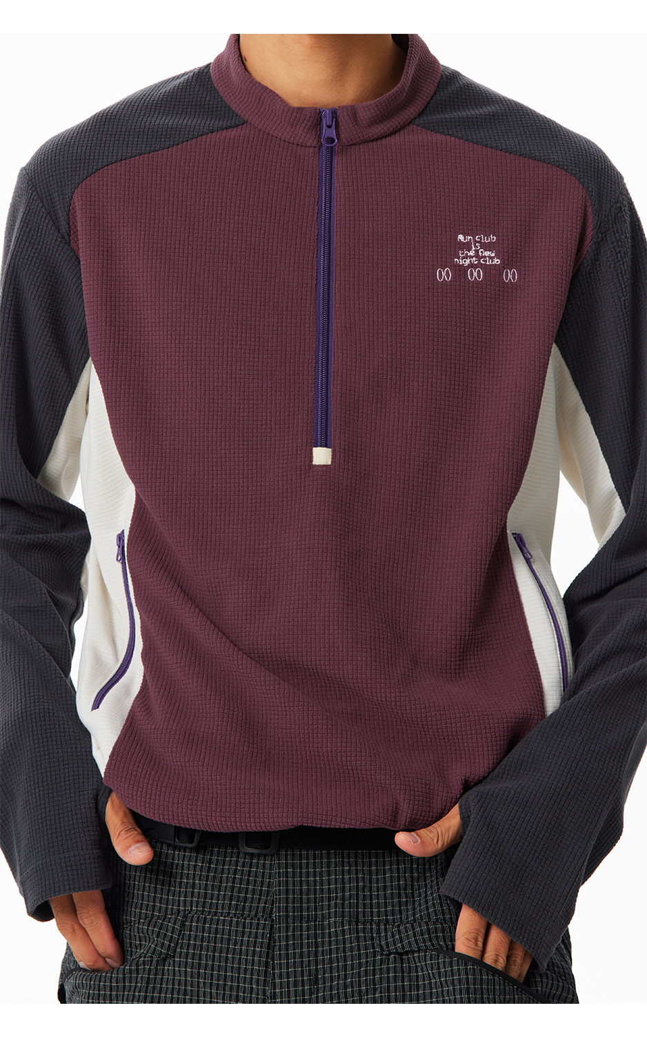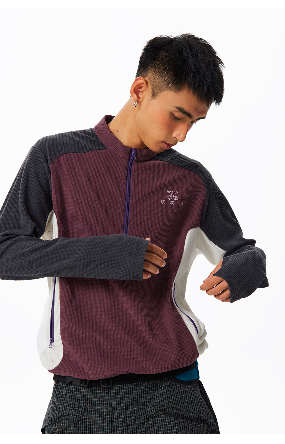 CryingCenter中性绒感华夫格半高领拉链户外运动罩衫运动卫衣长袖
