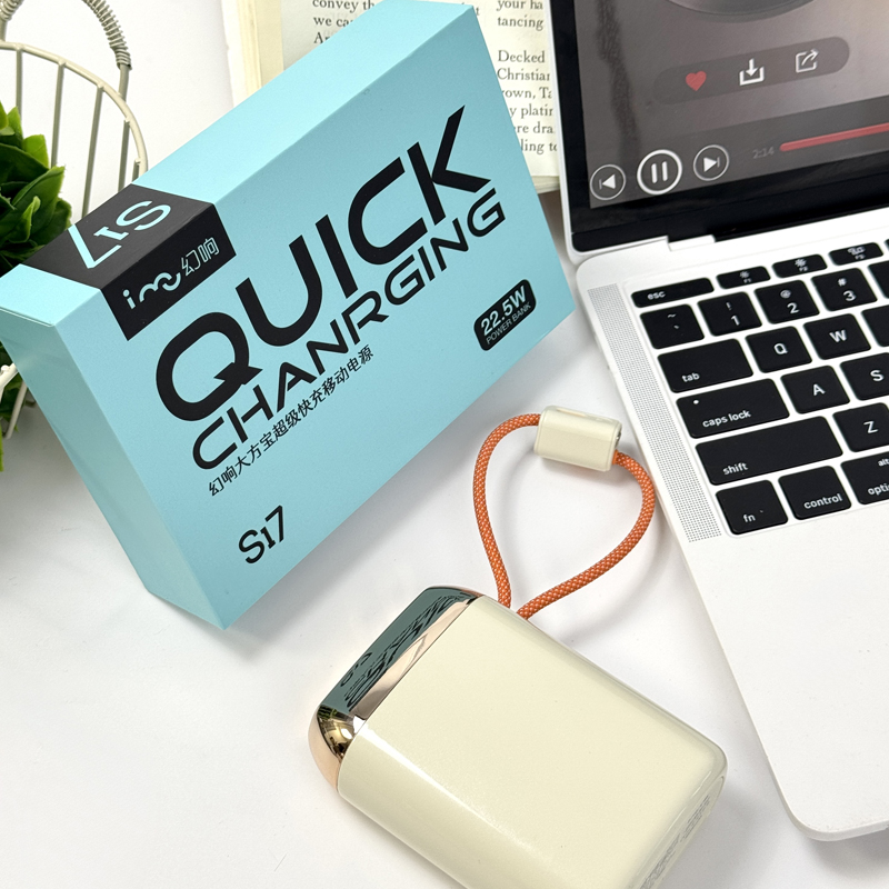 【新国标3c认证】幻响S16/S17大小方宝移动电源22.5w快充充电宝10000/20000毫安充电聚合物白色轻薄便携大容量适用于小米苹果双向快充