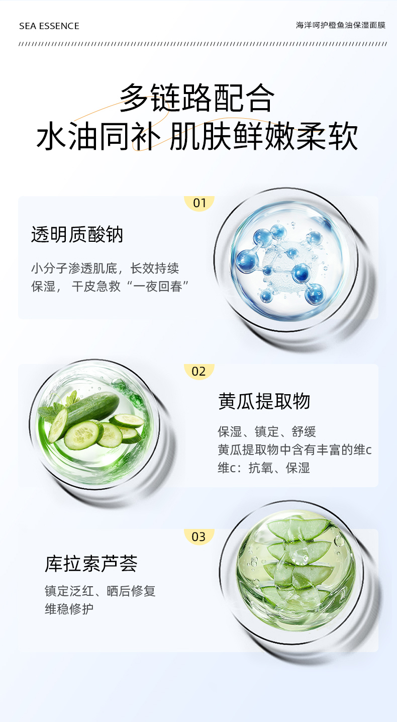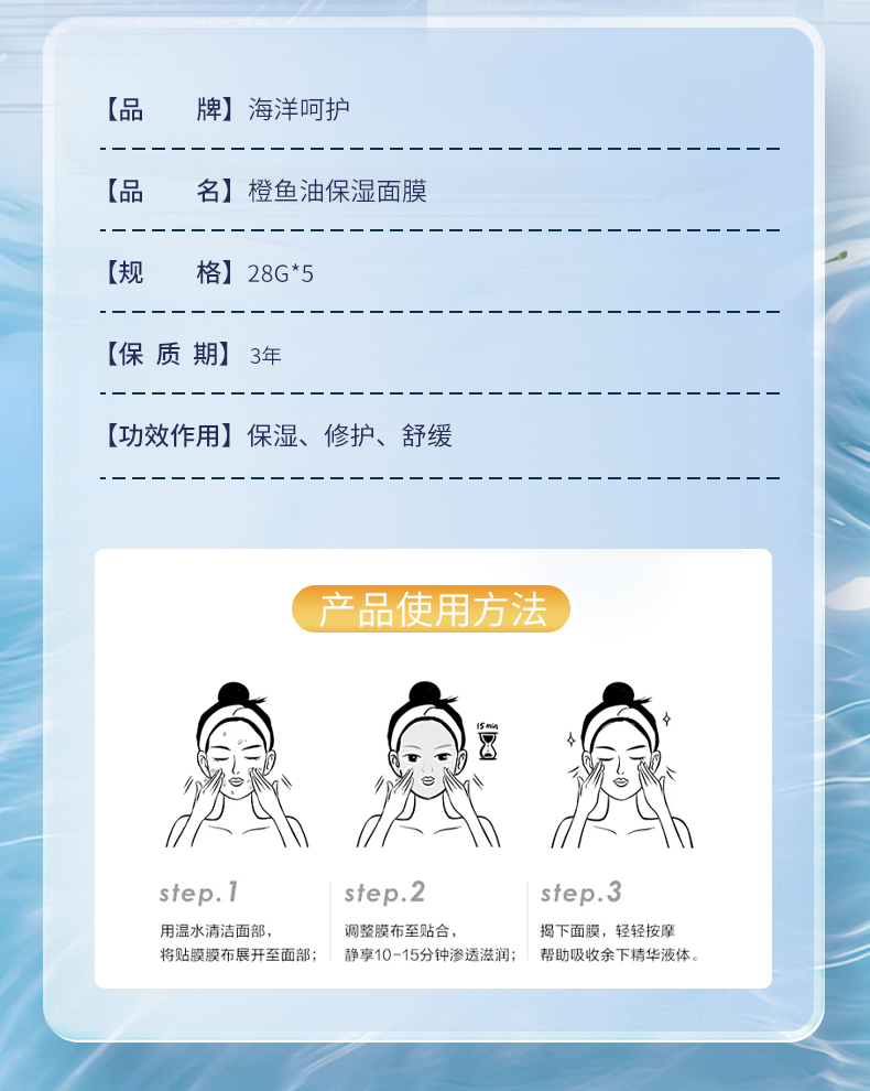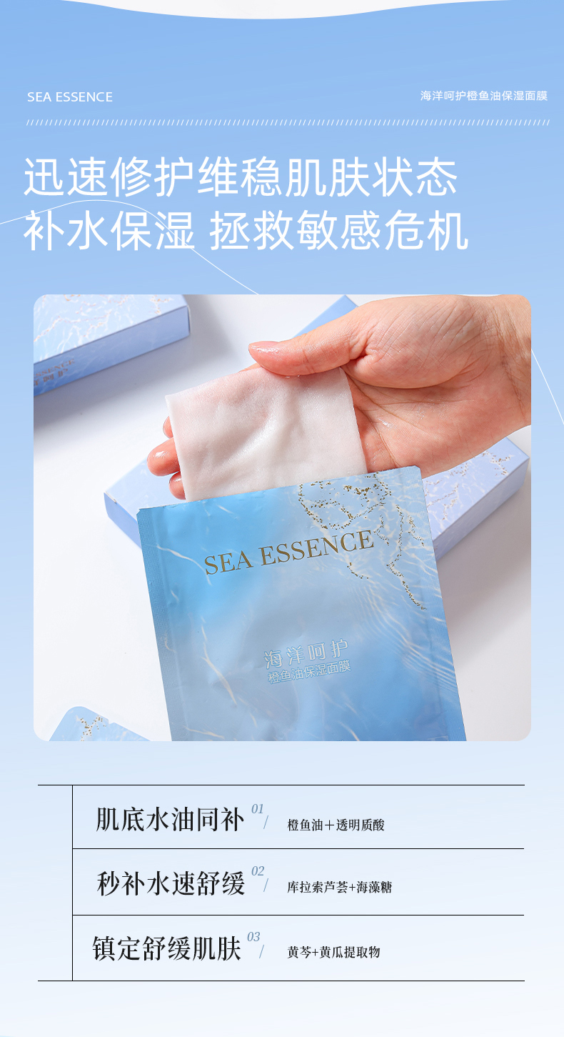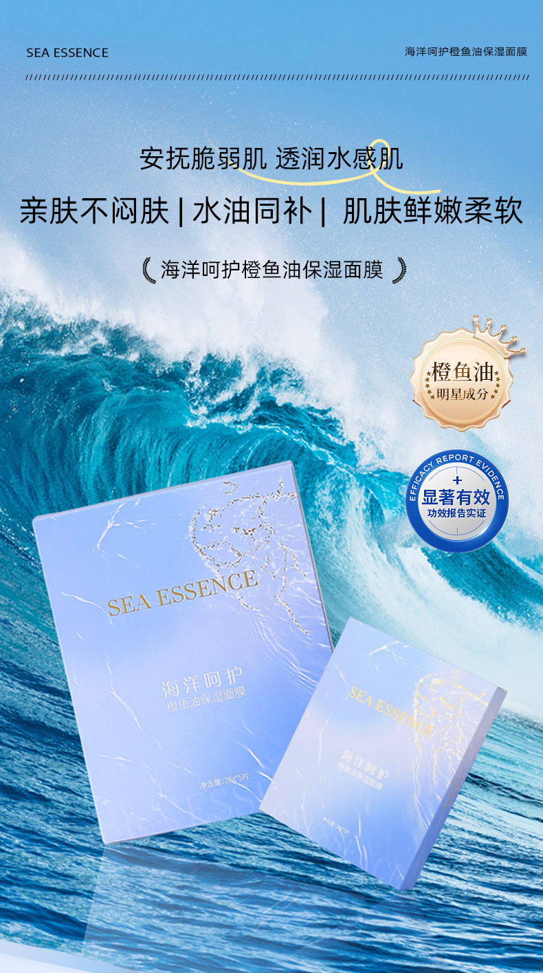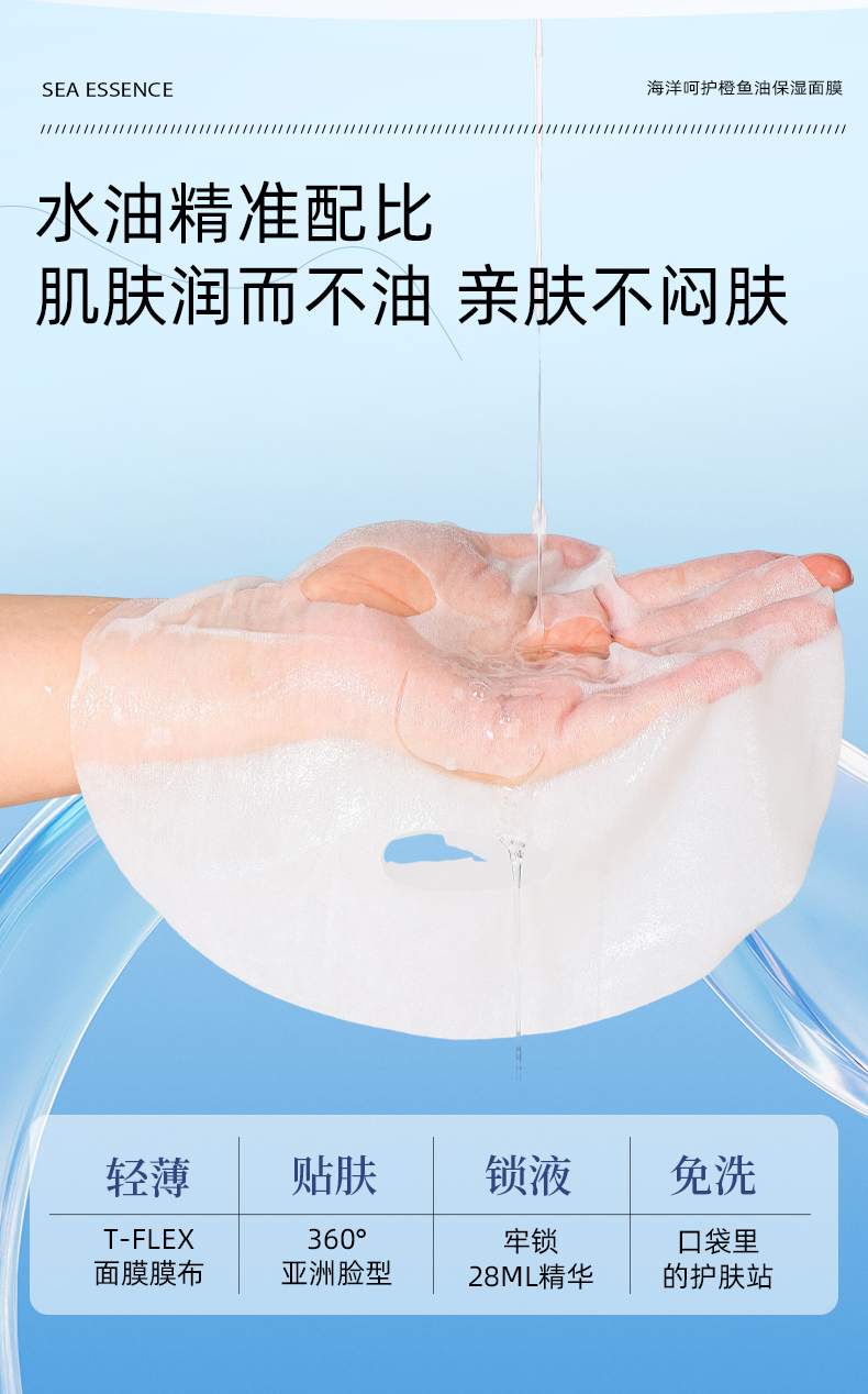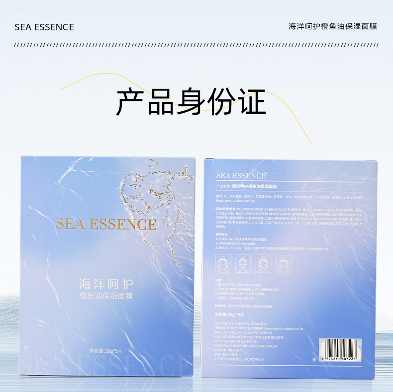SEA ESSENCE海洋呵护橙鱼油保湿面膜28g*5片/盒(每盒送1 单片)