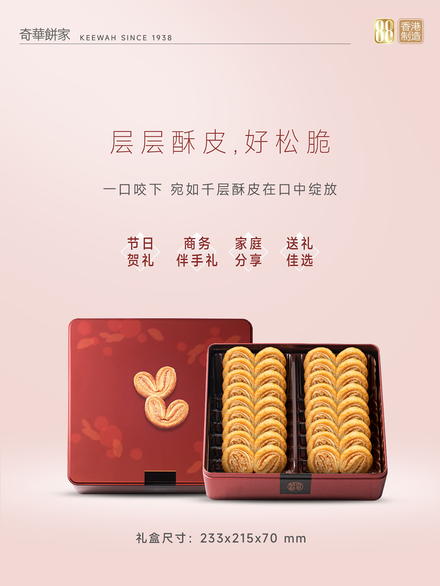 【蝴蝶酥礼盒】中国香港原装进口千层酥饼干零食小吃送礼优选