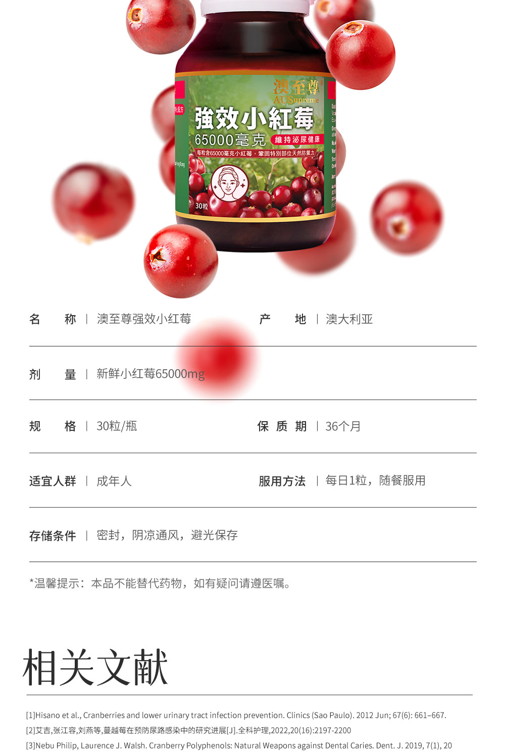 澳至尊小红莓越蔓莓胶囊30粒高浓度 保质期至2027-1-18