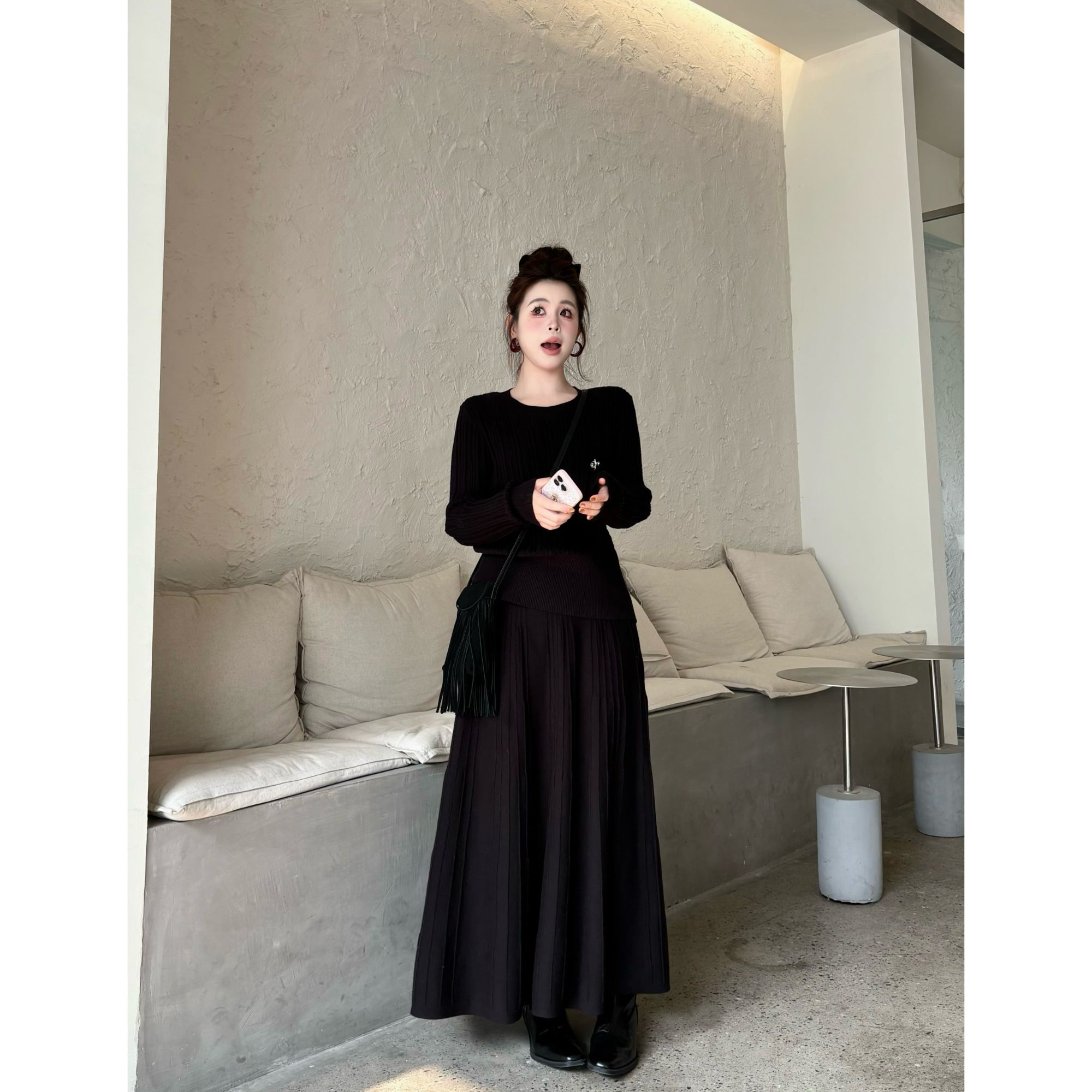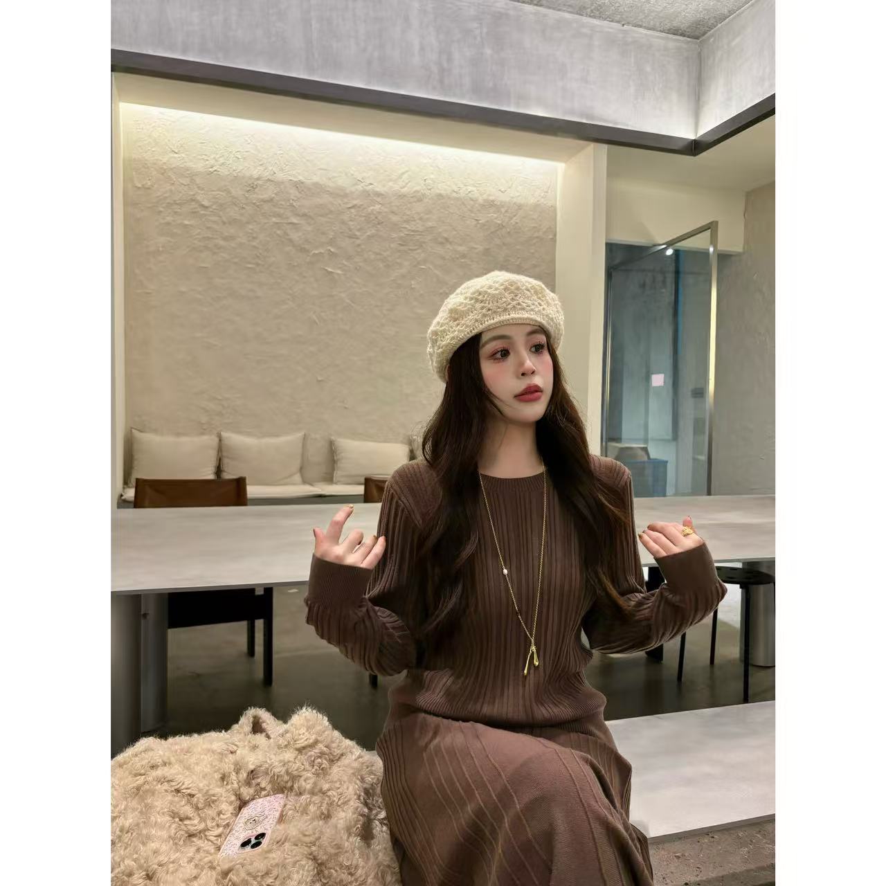 25AW上新 甜甜同款【慵懒纸片人】软糯毛衣针织上衣+大A版遮肉半身裙
