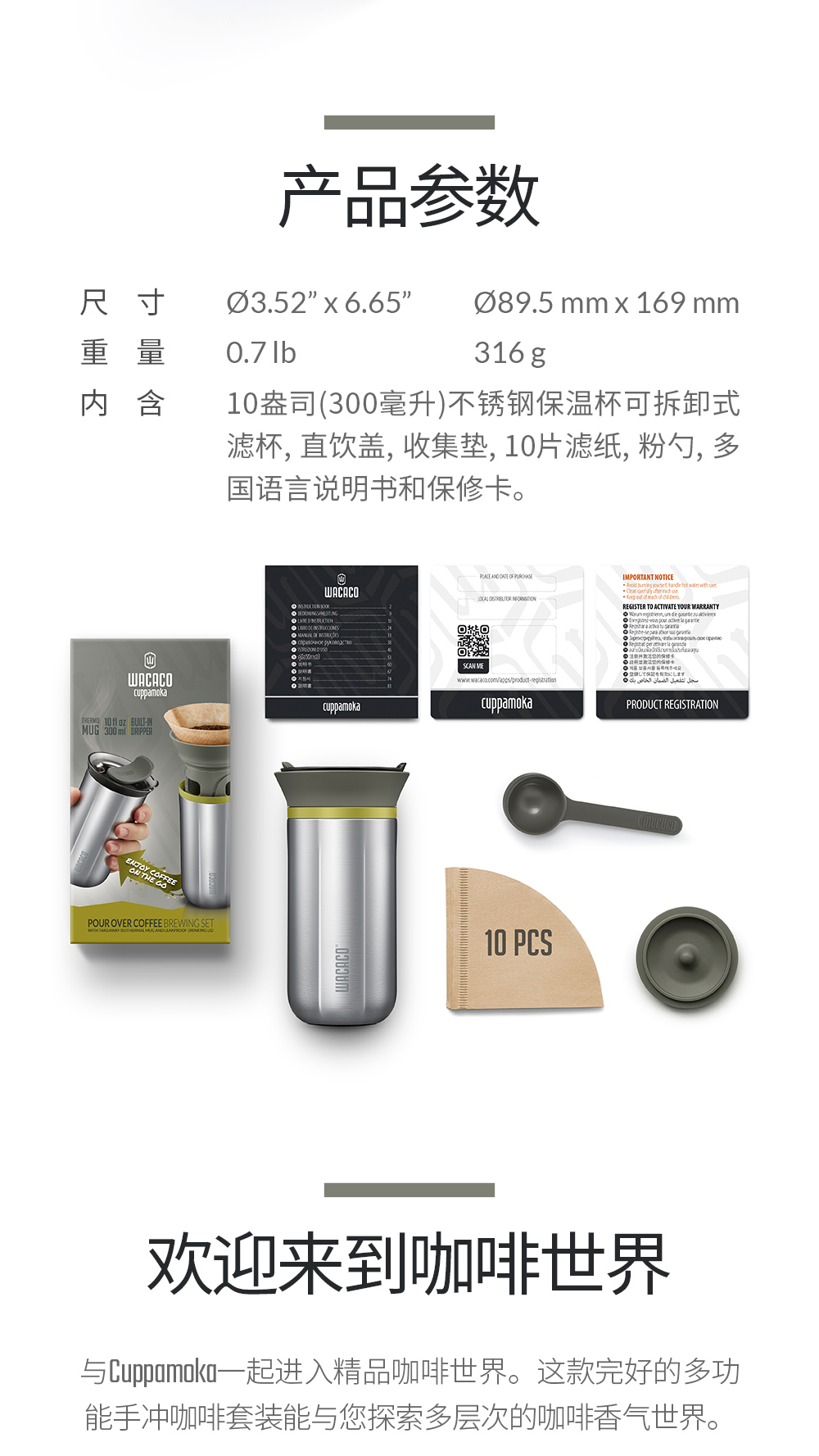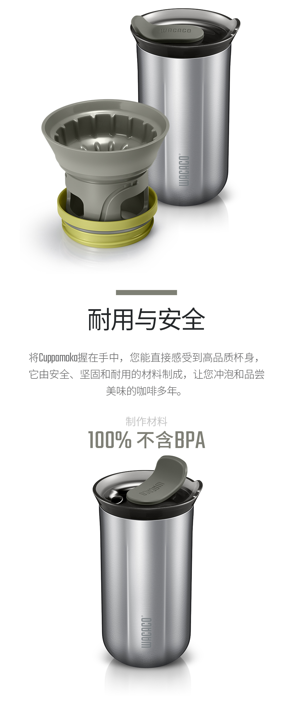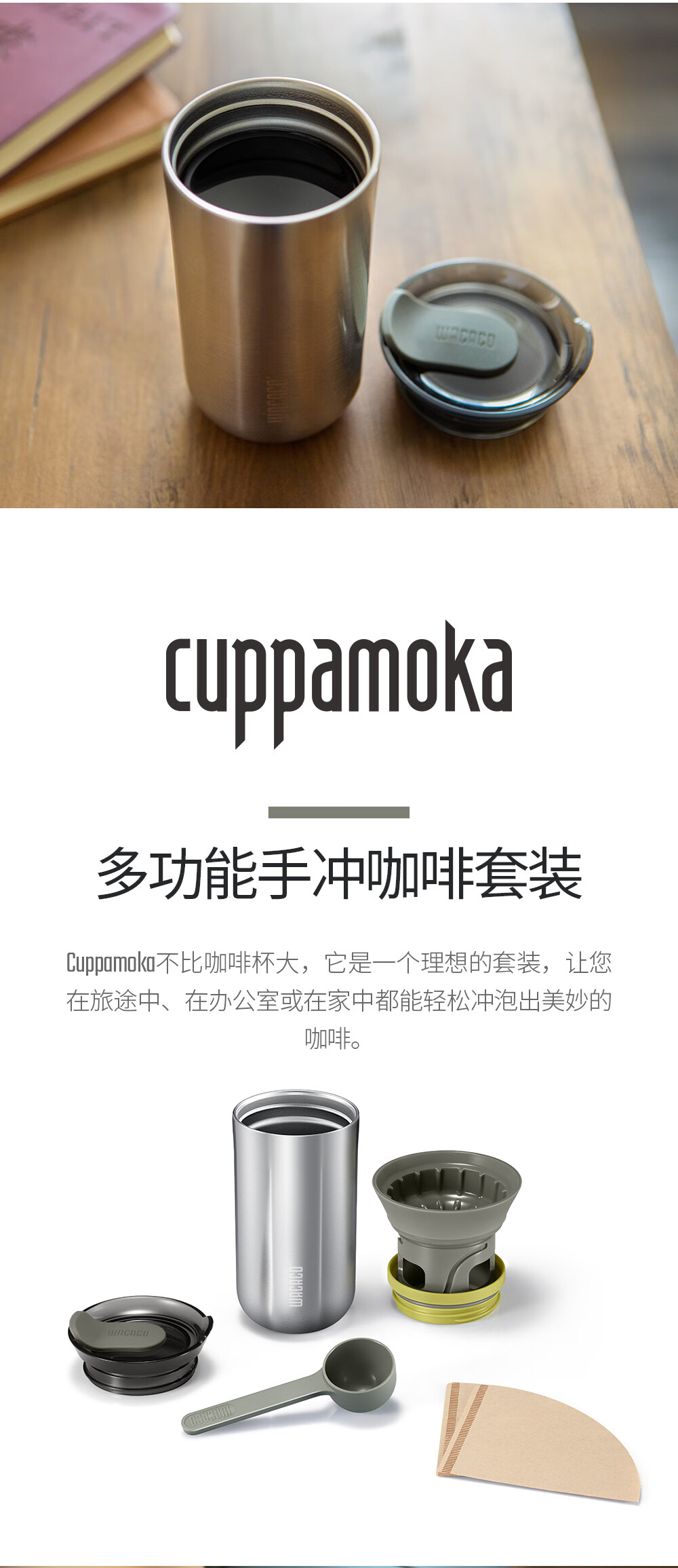 WACACO Cuppamoka 便携式手冲咖啡壶保温户外露营旅行家用滴漏式滤杯