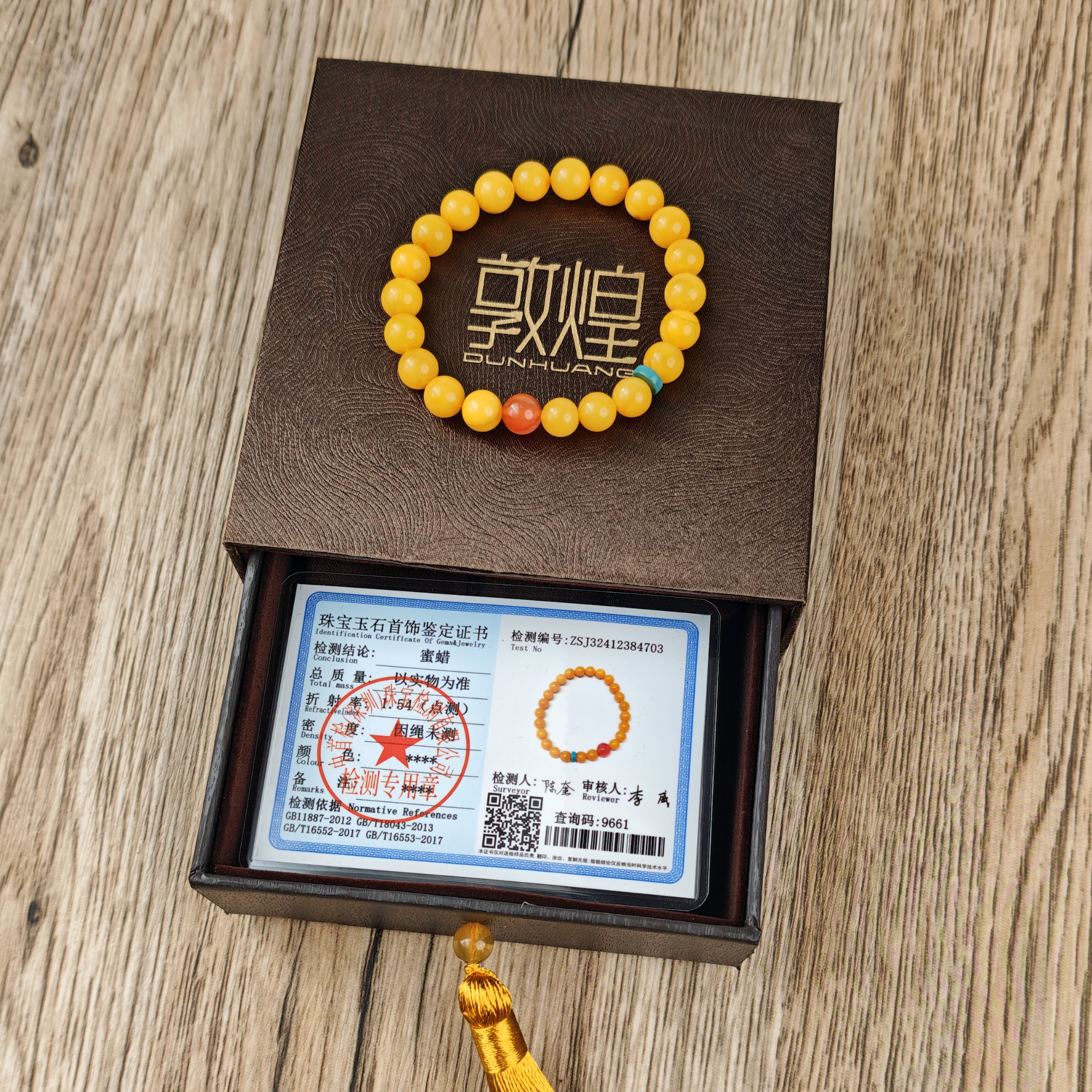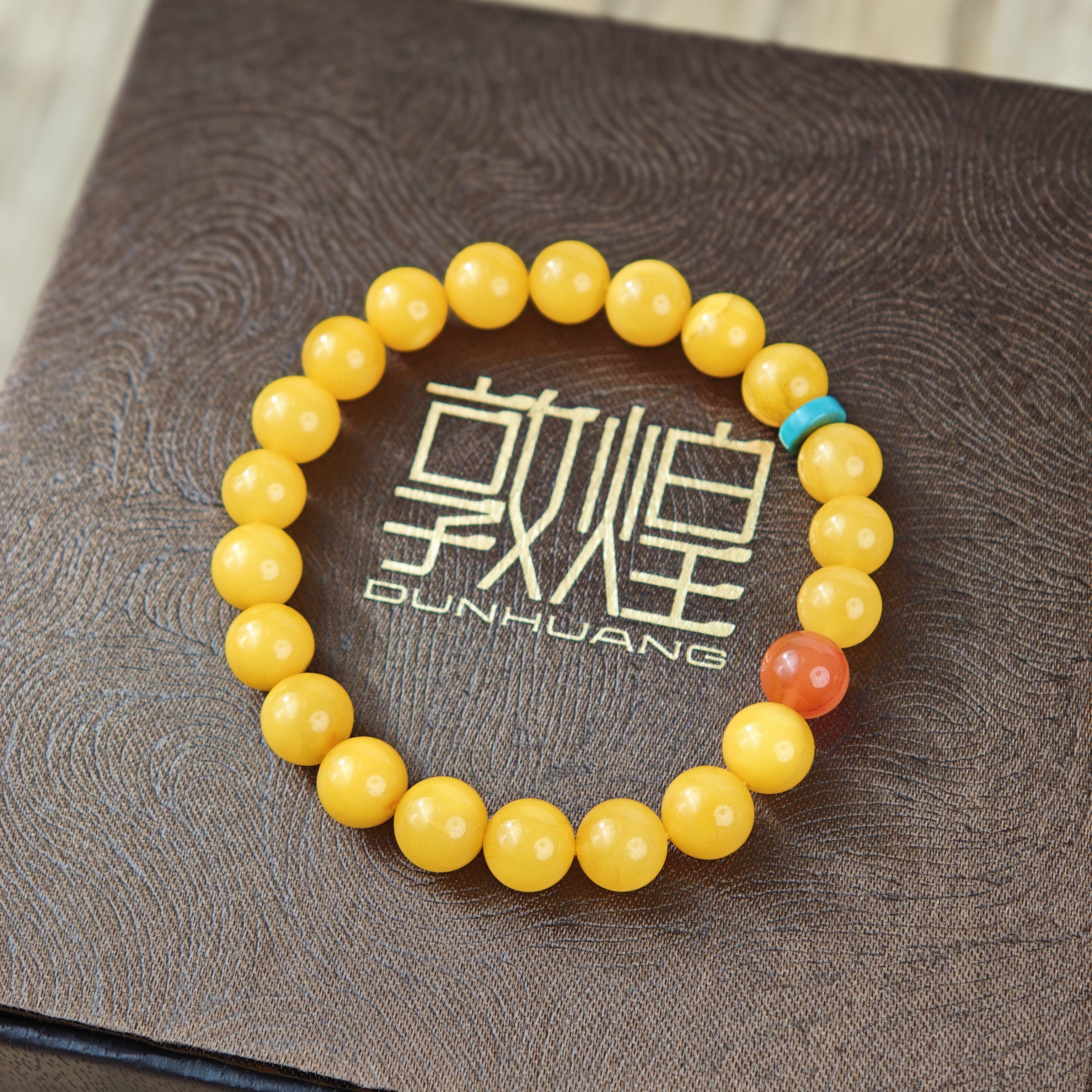 【尺寸】蜜蜡珠约8mm,南红珠约8mm,绿松配件约0.3mm,适合手围约14-16cm