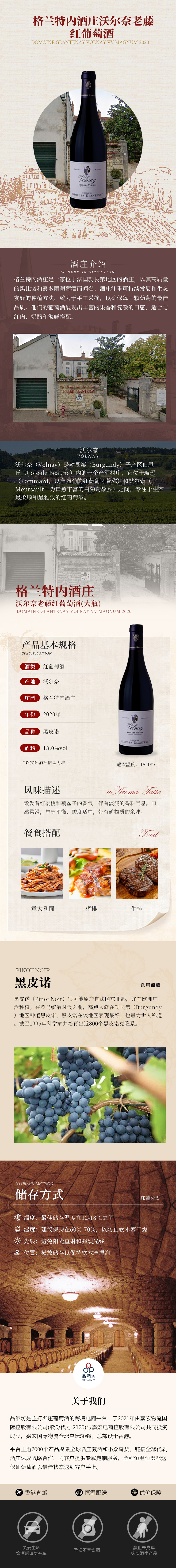 2020 Domaine Glantenay Volnay VV Magnum 格兰特内酒庄沃尔奈老藤红葡萄酒(大瓶)
