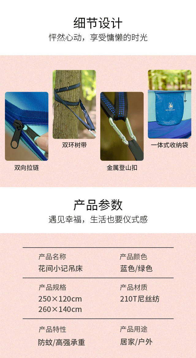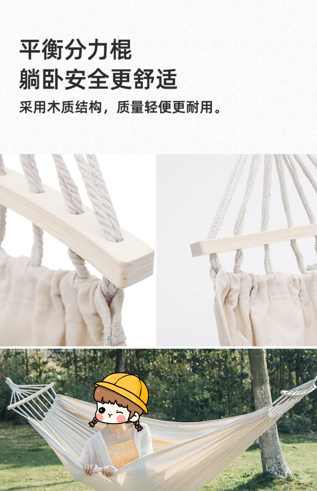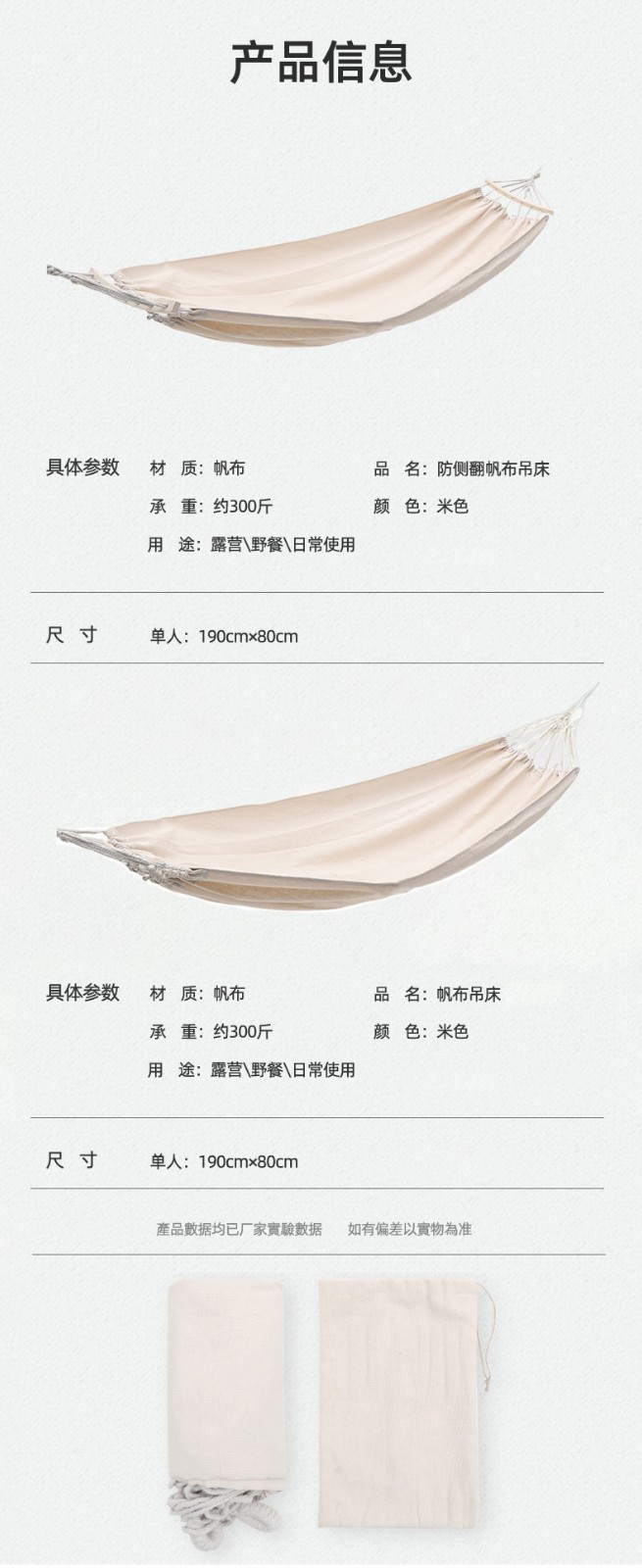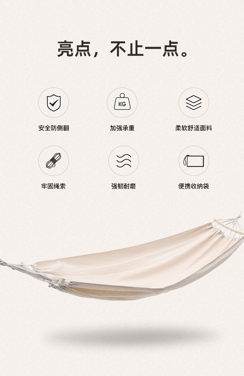 徽羚羊 便携防翻透气加厚帆布吊床 米白色 单人190*80CM HLY-07108