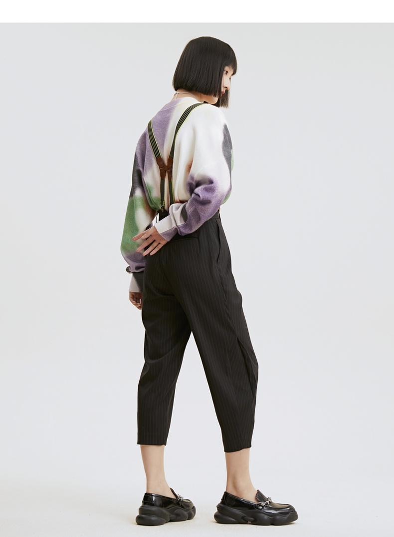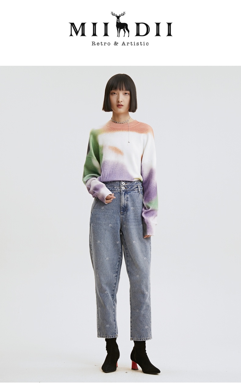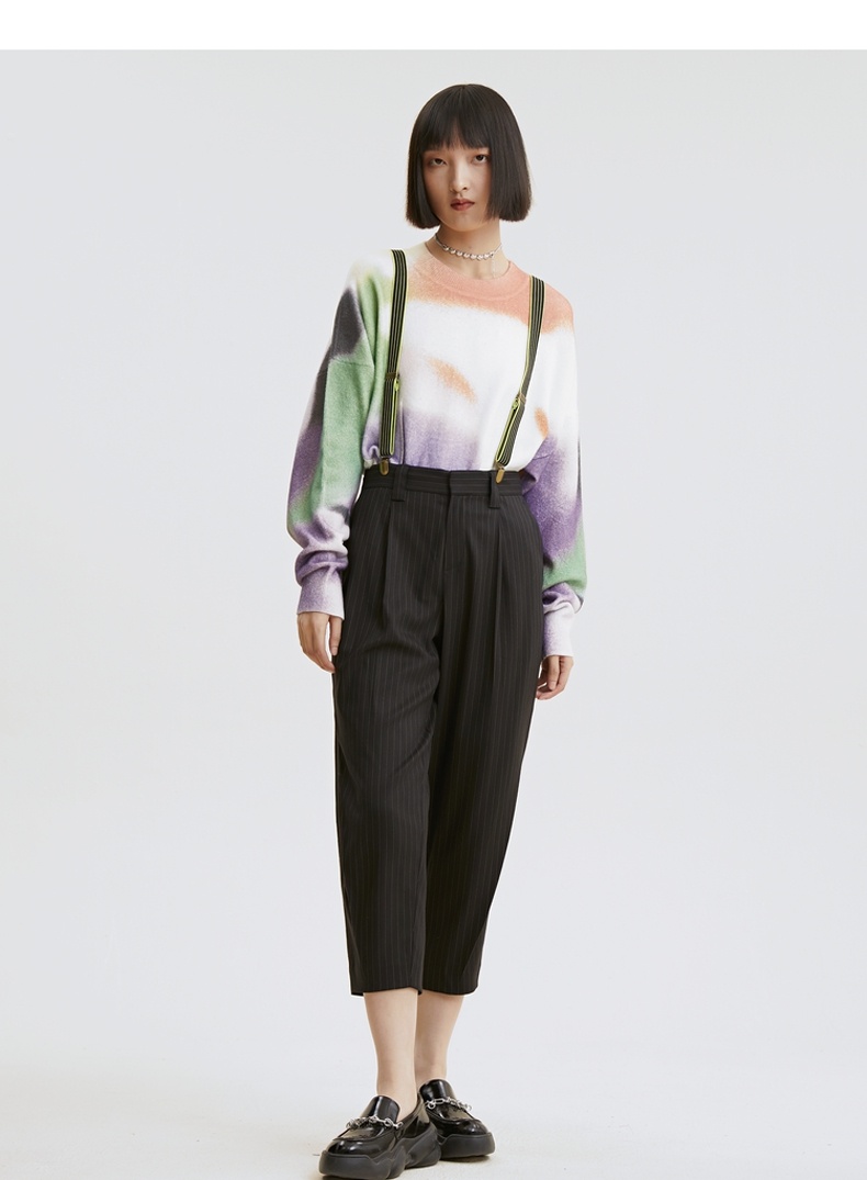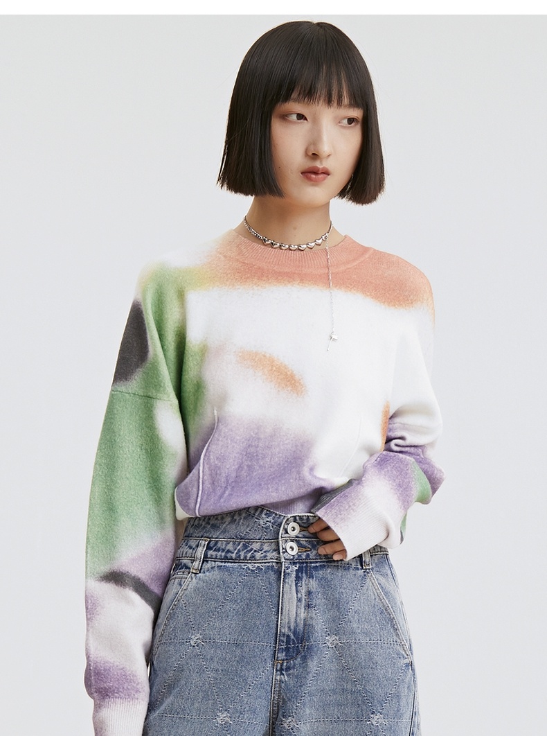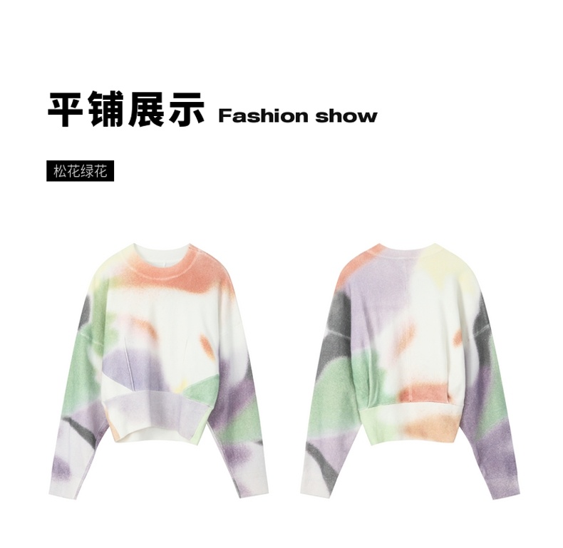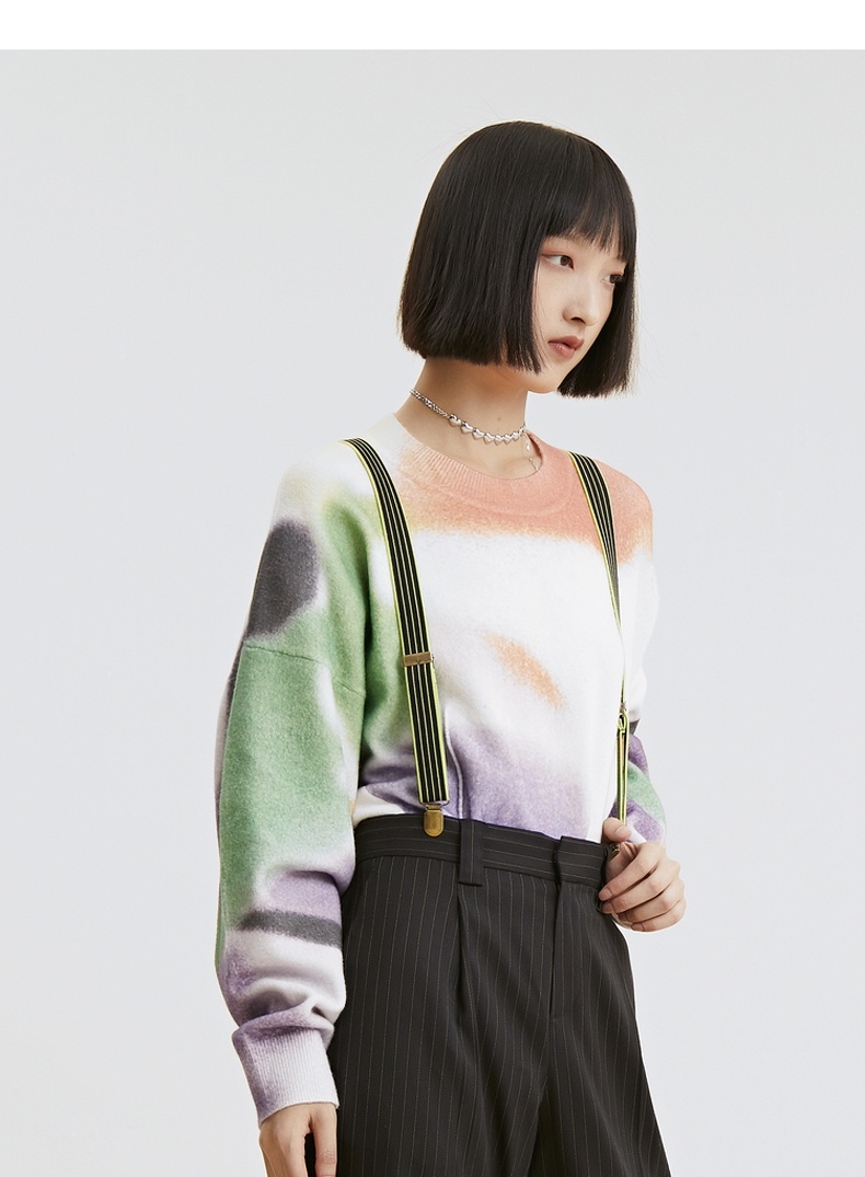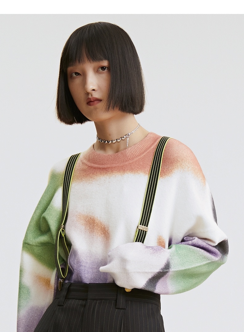 谜底2021秋季新款休闲宽松圆领落肩长袖套头针织衫女213MZ2004