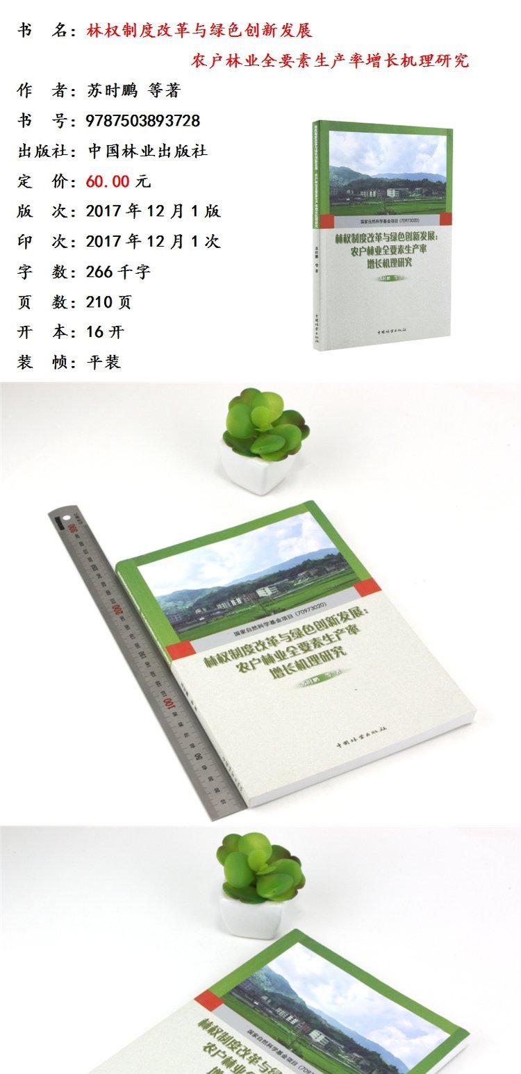 林权制度改革与绿色创新发展 农户林业全要素生产率增长机理研究 9372 中国林业出版社
