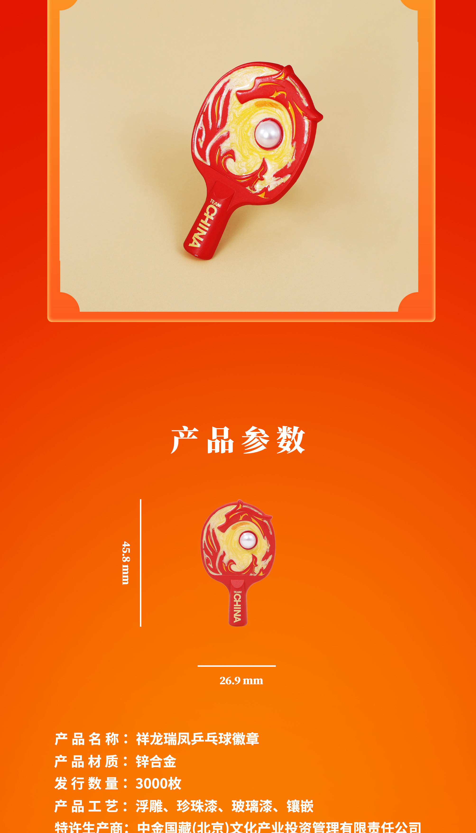 祥龙瑞凤乒乓球徽章