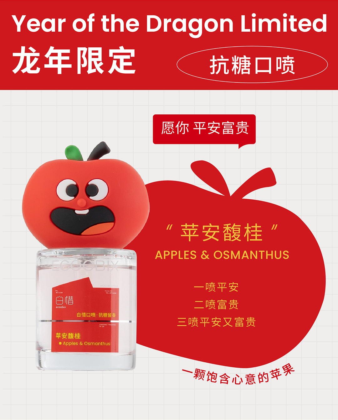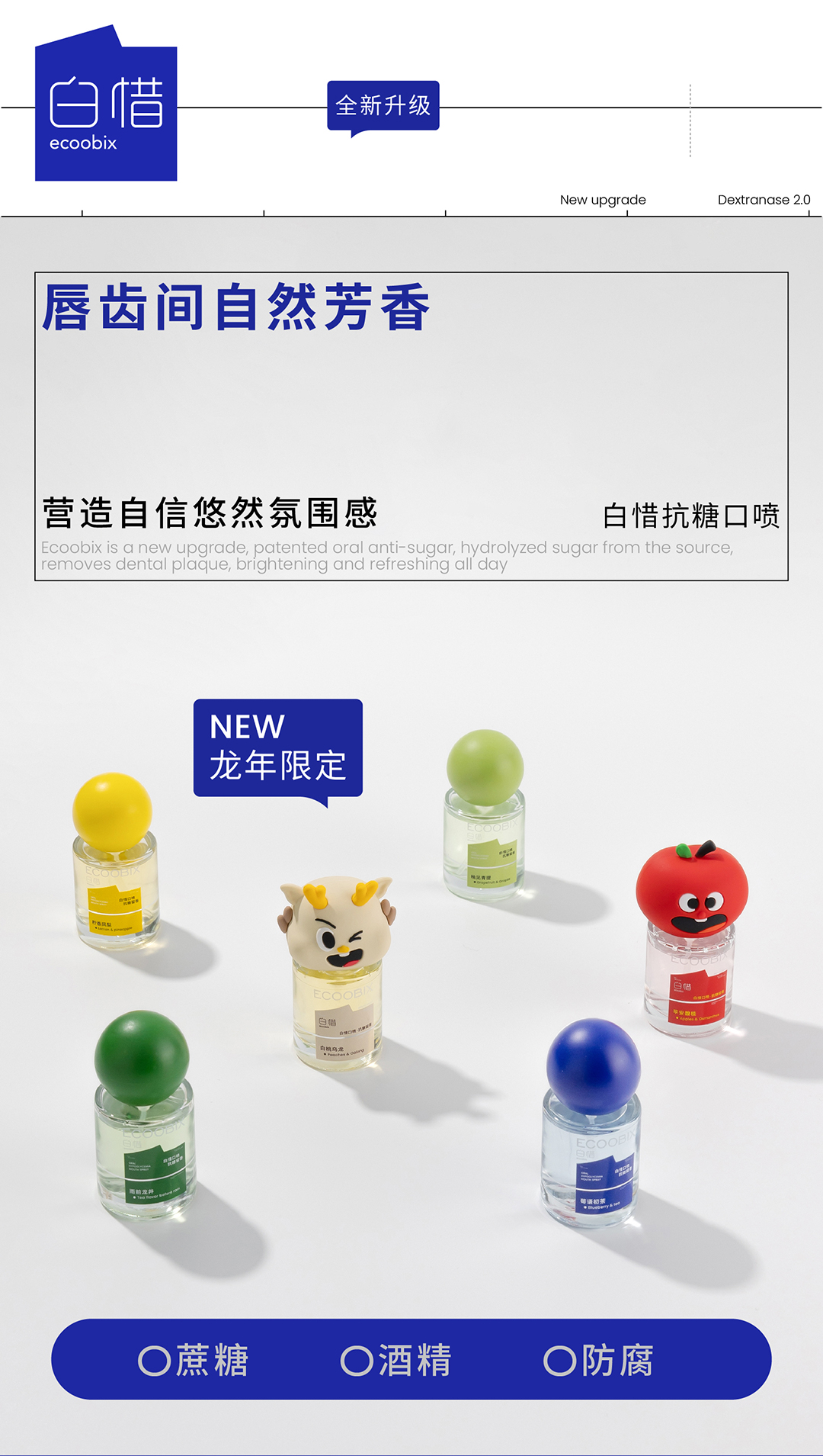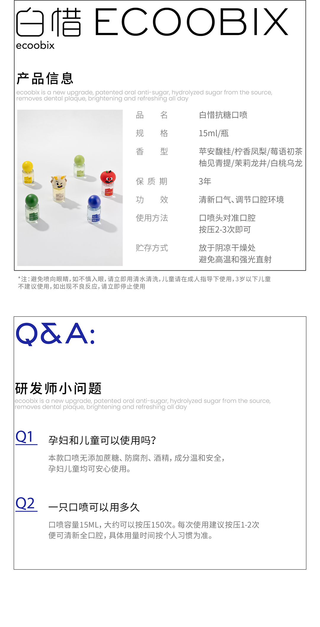 白惜口腔清新口喷15ml 【苹果/白桃/青提/龙井/凤梨/蓝莓】便携式