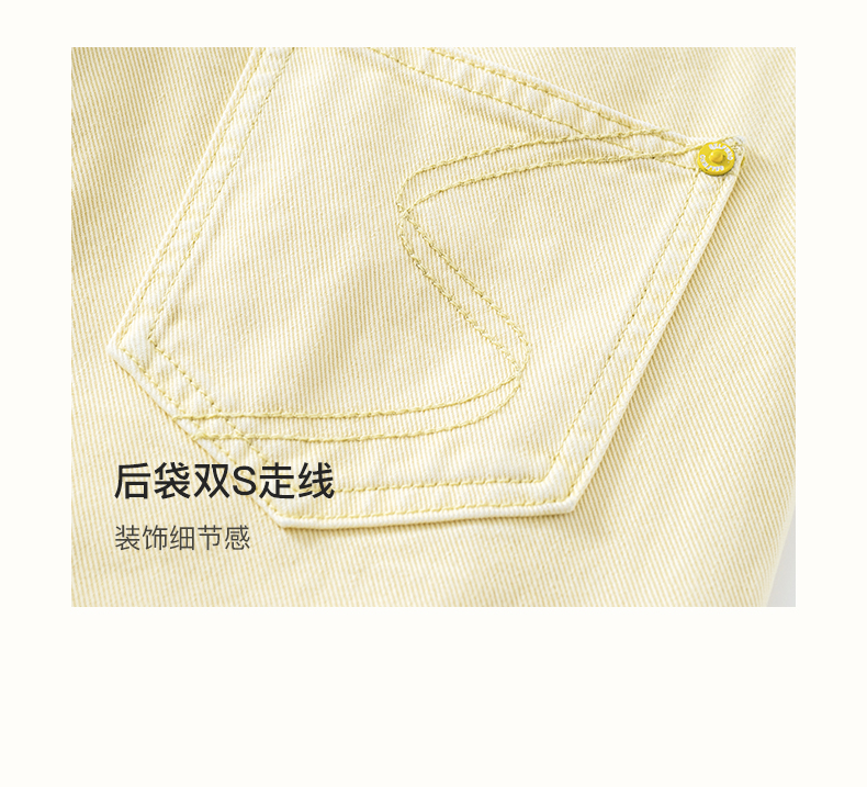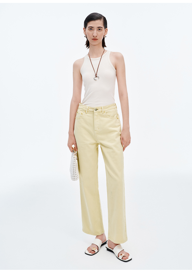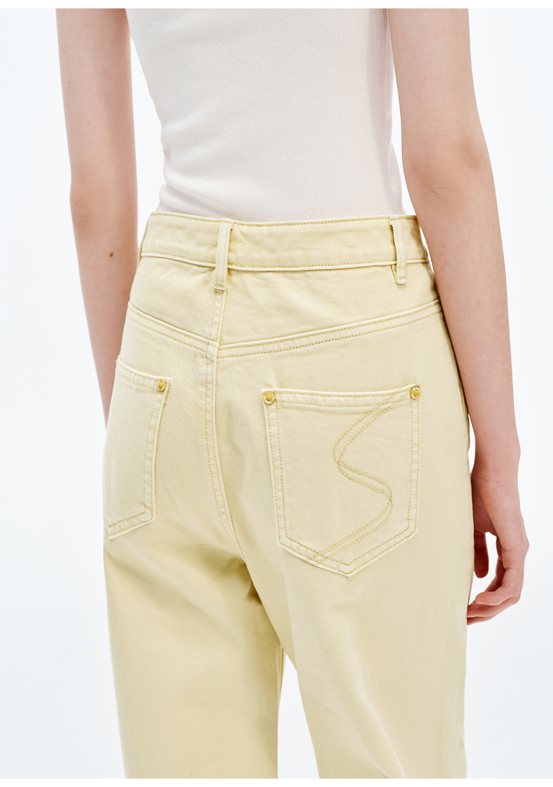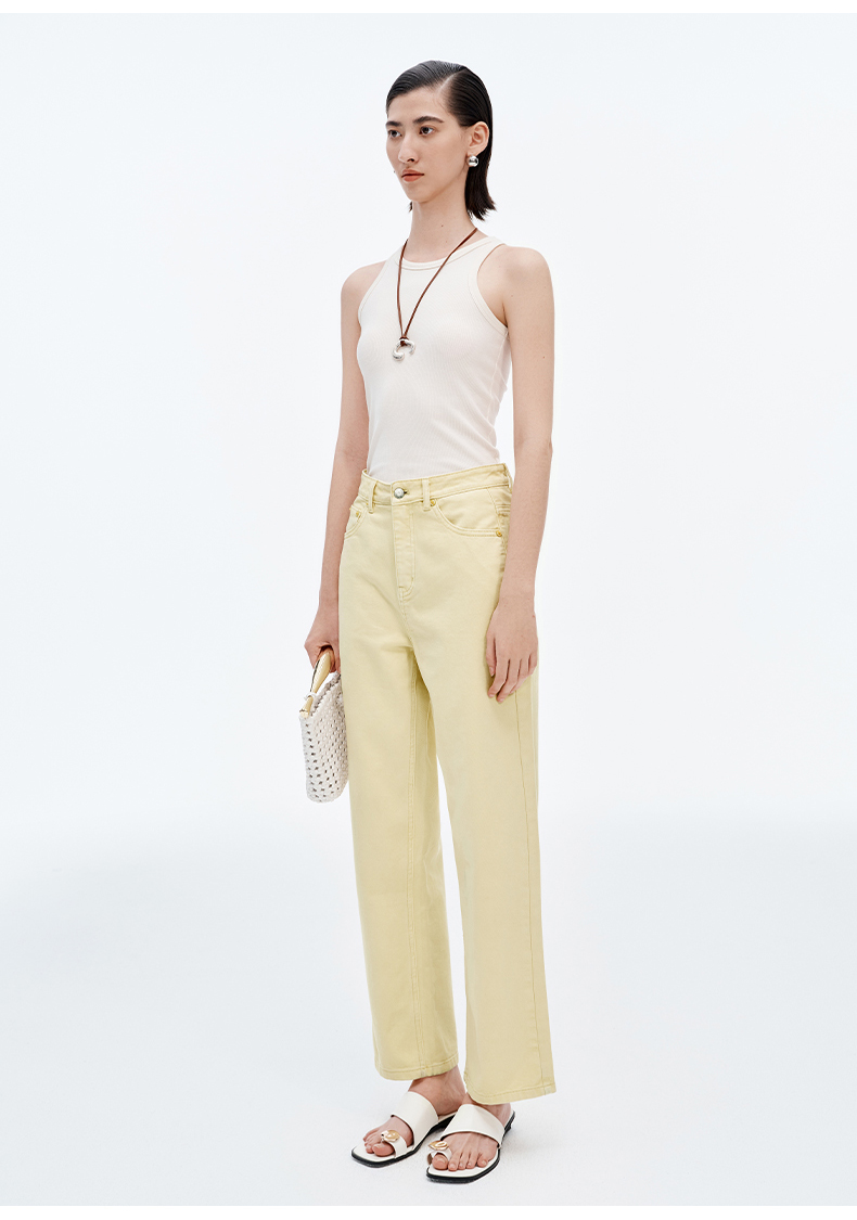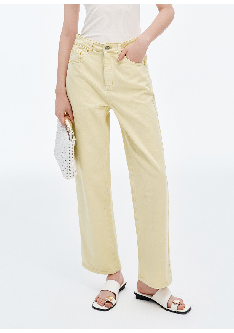 SELFWHO纯棉藤黄色水洗牛仔裤女2025夏新款时髦清新直筒九分裤